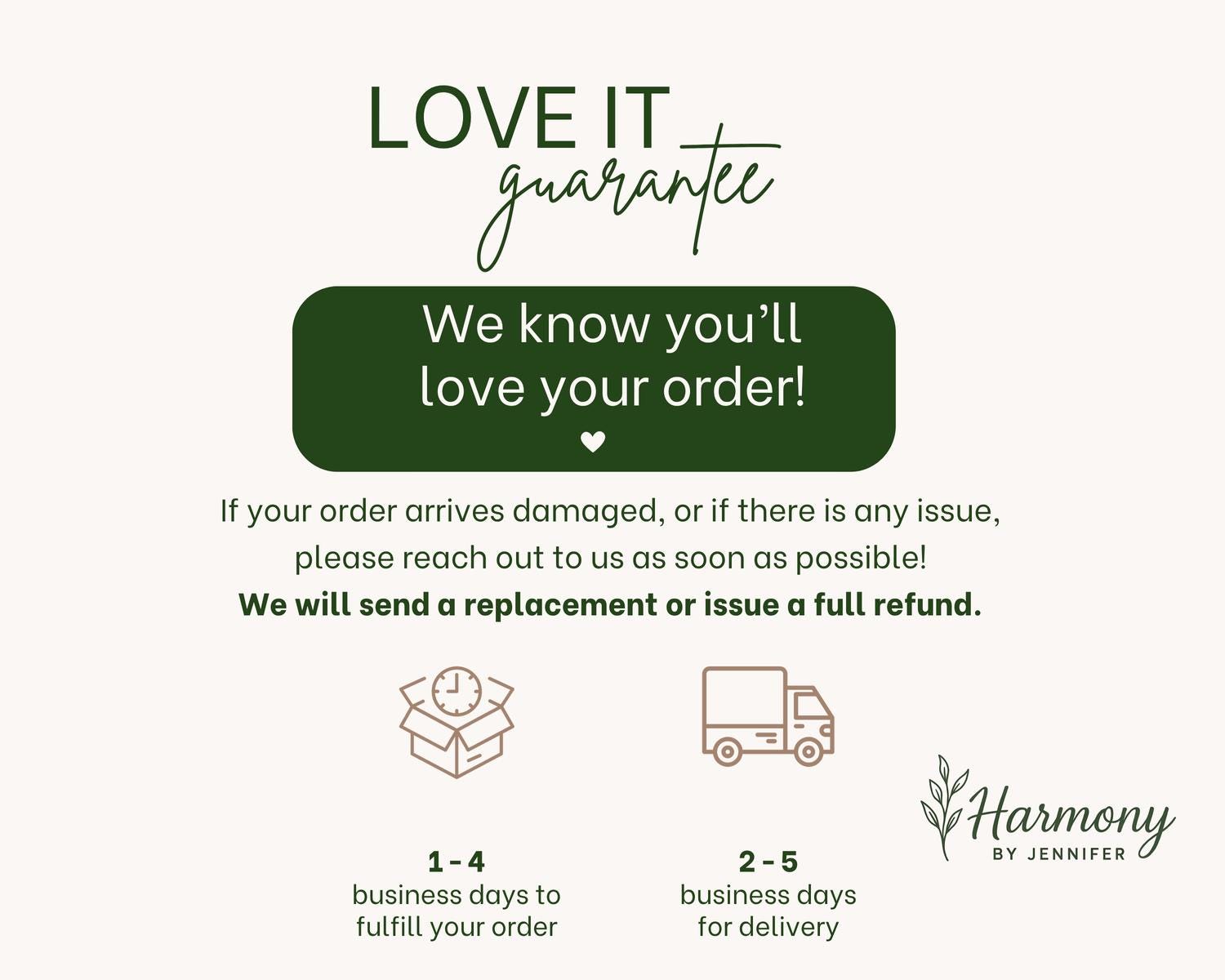 You agree that by purchasing an item from Harmony by Jennifer or otherwise interacting with Harmony by Jennifer, you have read, understood, and agree to be bound by all of the terms of this Privacy Policy. If you do not agree, you must leave Harmony by Jennifer immediately.
