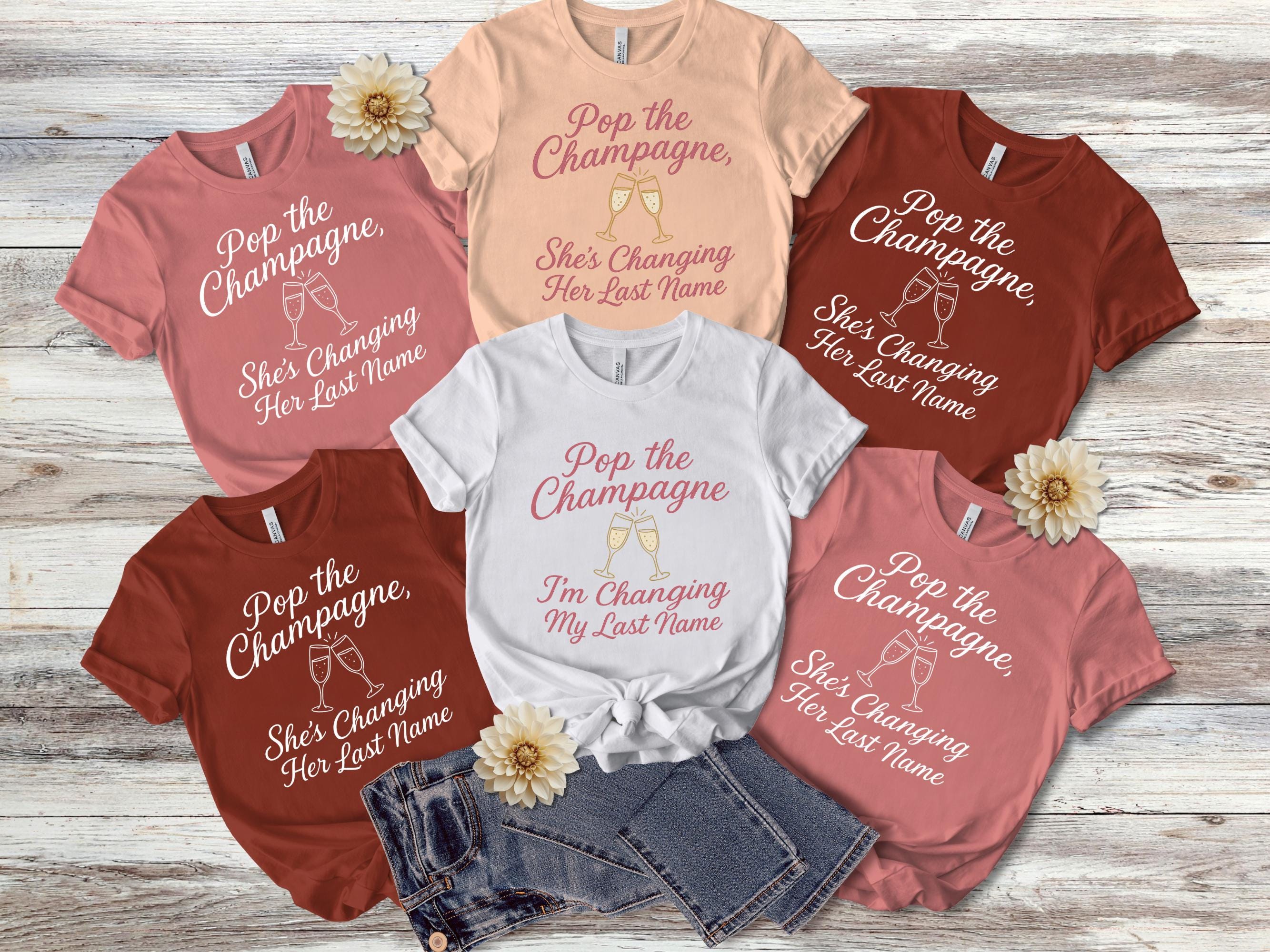 Matching Bridal Party Shirts, Pop the Champagne I'm Changing My Last Name T-Shirt | Bachelorette Bridal Tee, Matching Shirts