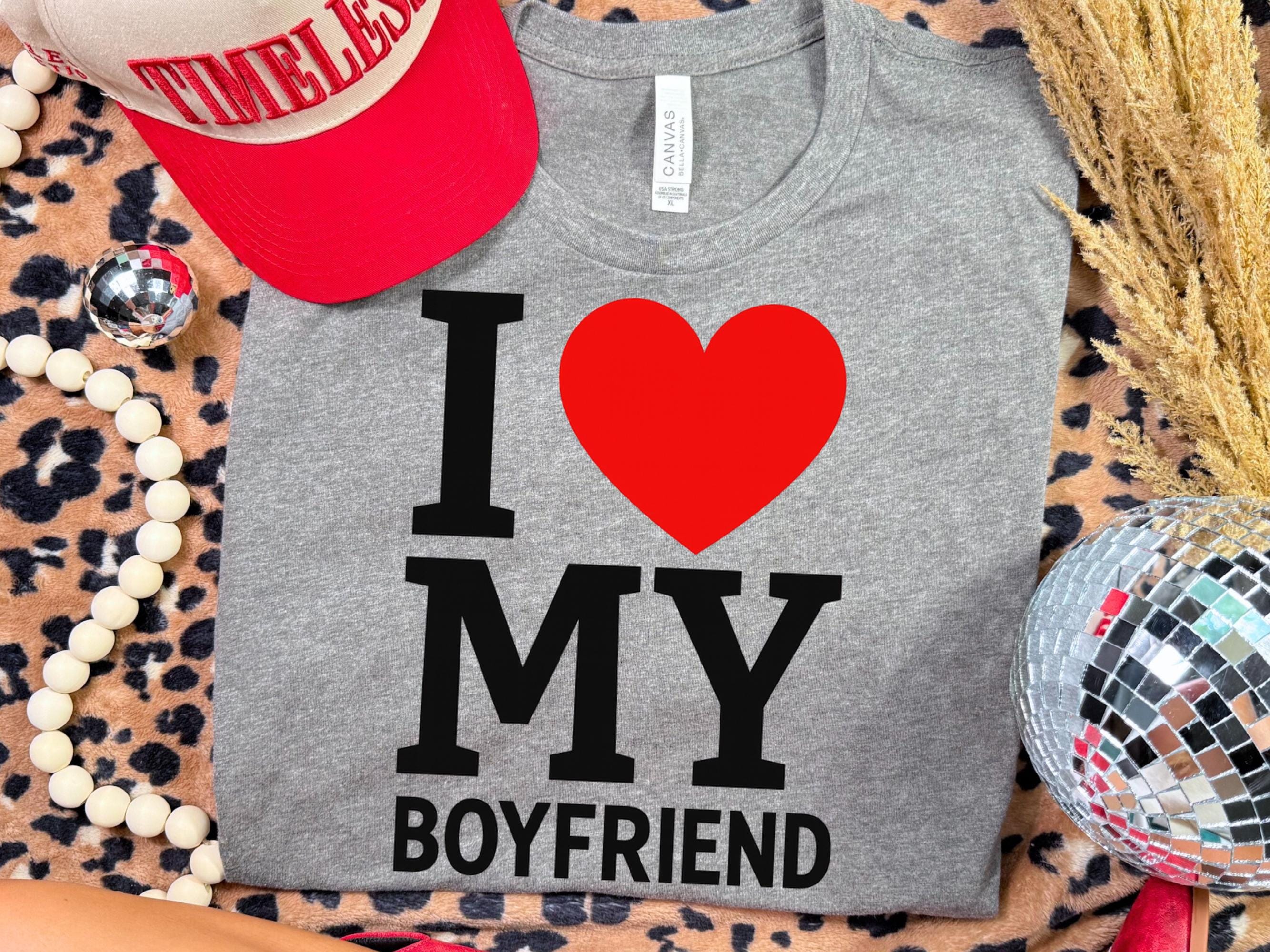 Celebrate your love and sense of humor with our adorable matching couples shirts, featuring the playful "I Love My Girlfriend" and "I Love My Boyfriend" designs on high-quality Bella Canvas tees. Perfect for showing affection in a fun, stylish way, these couple tees are ideal for Valentine's Day, Christmas gifts, or simply making your partner smile every day. Crafted from soft, durable Bella Canvas 3001 material, these novelty funny tees promise a comfortable fit whether you're out on a casual date, enjoying a cozy night in, or taking adorable couple photos.