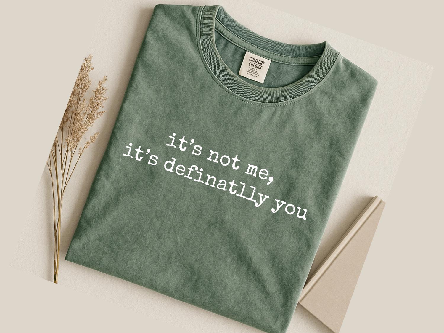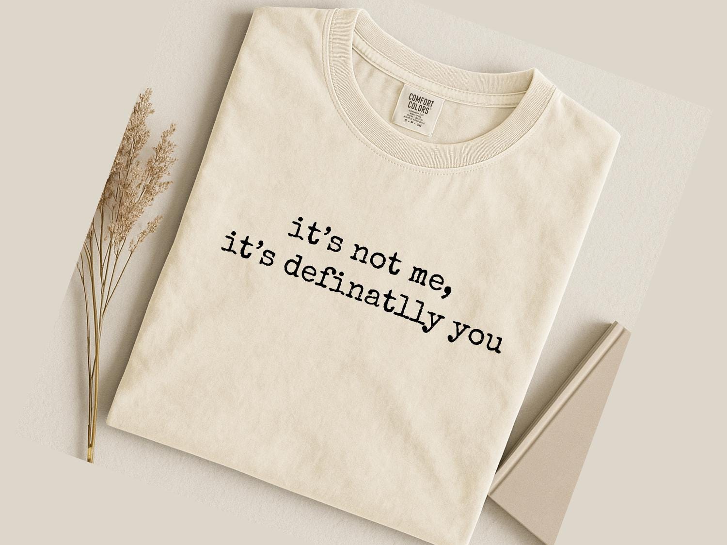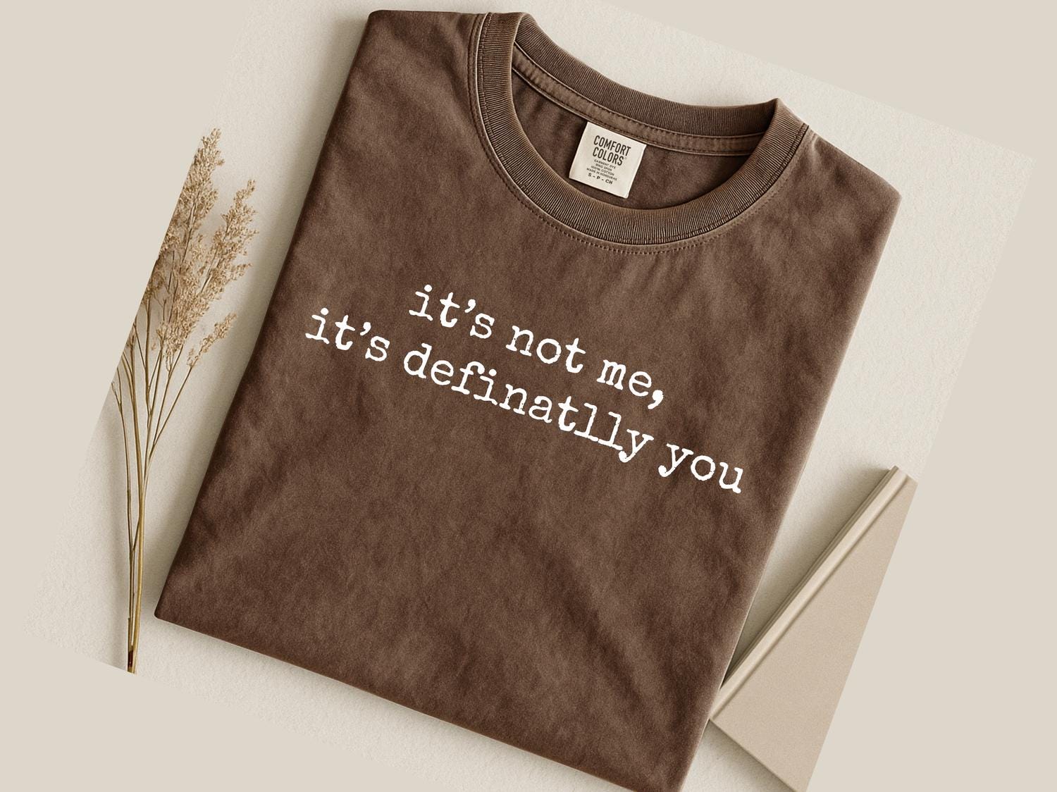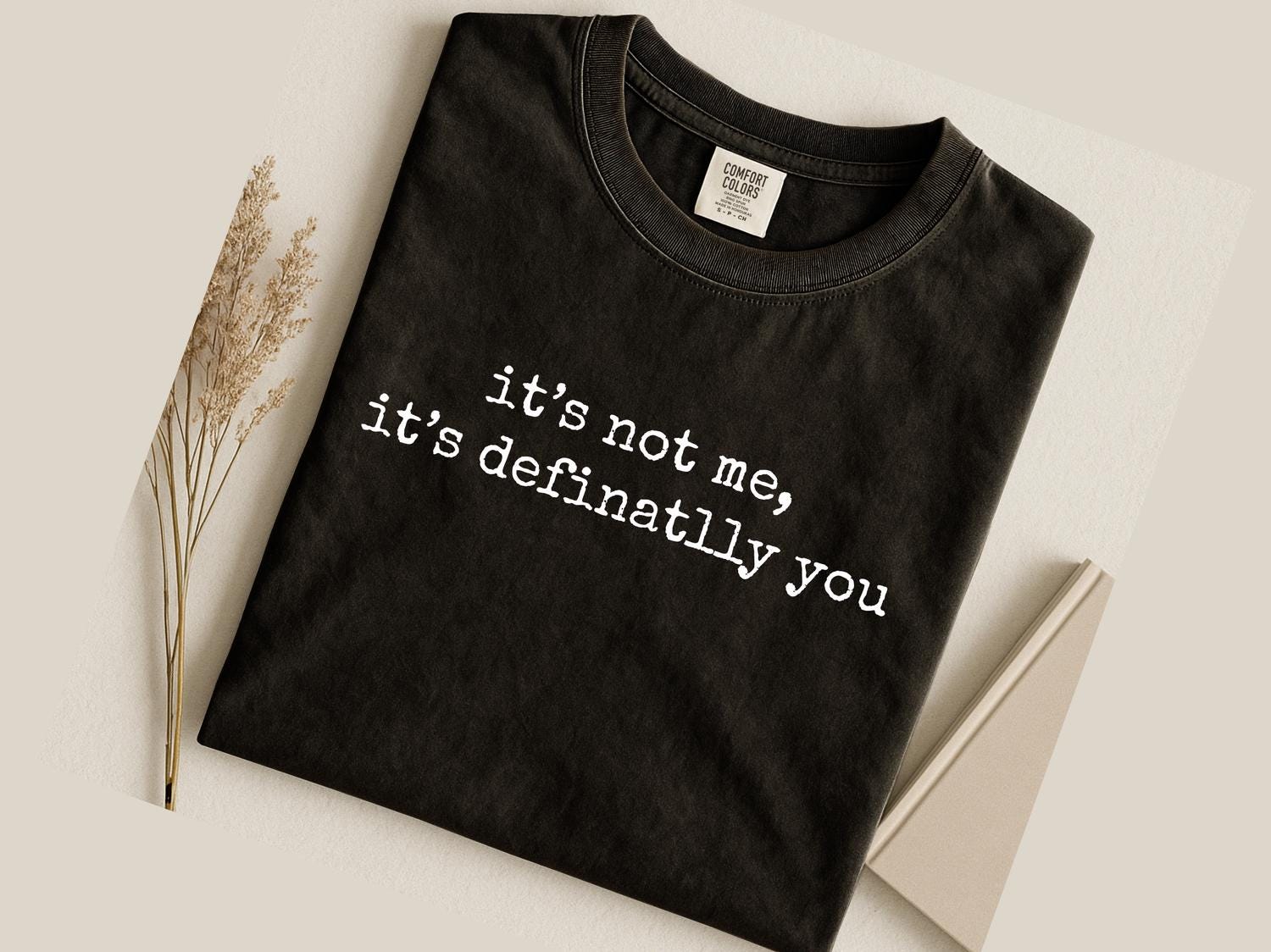 Express your sense of humor and support mental health awareness with our trendy Comfort Colors long sleeve tee, featuring the witty phrase "it's not me, it's definitely you." This funny mental health humor shirt is perfect for anyone who loves self-care humor, sarcasm, and a good laugh. Whether you're searching for a humorous gift for her, a casual addition to your wardrobe, or a conversation-starting piece, this sarcastic shirt is sure to turn heads and spark laughs.
