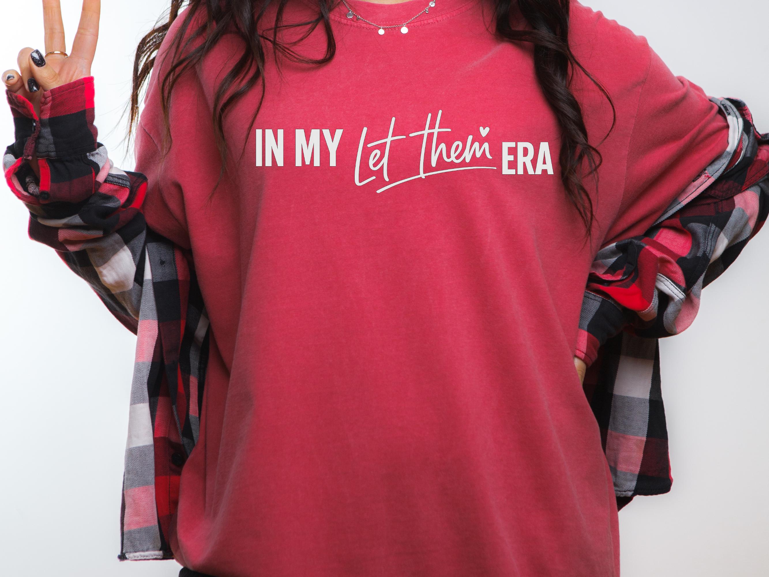 Express your personality, embrace your humor, and enjoy a wardrobe staple that’s both fun and functional. Whether you’re treating yourself or searching for a witty gift, this "In My Let Them Era" shirt is sure to bring smiles and laughs.