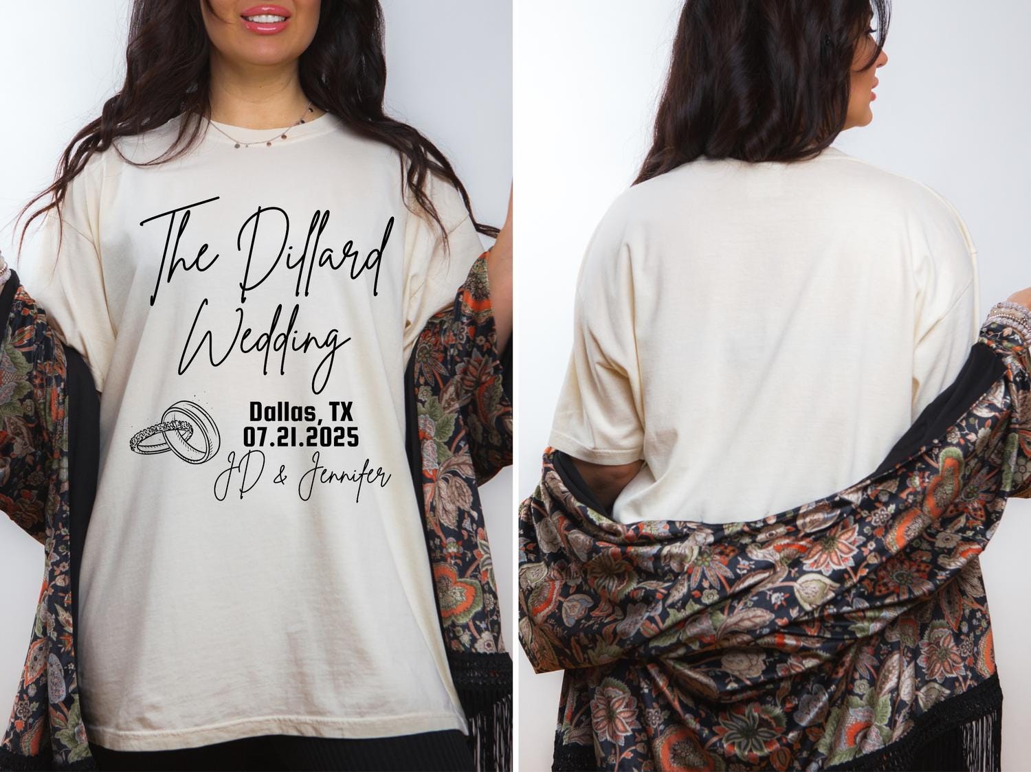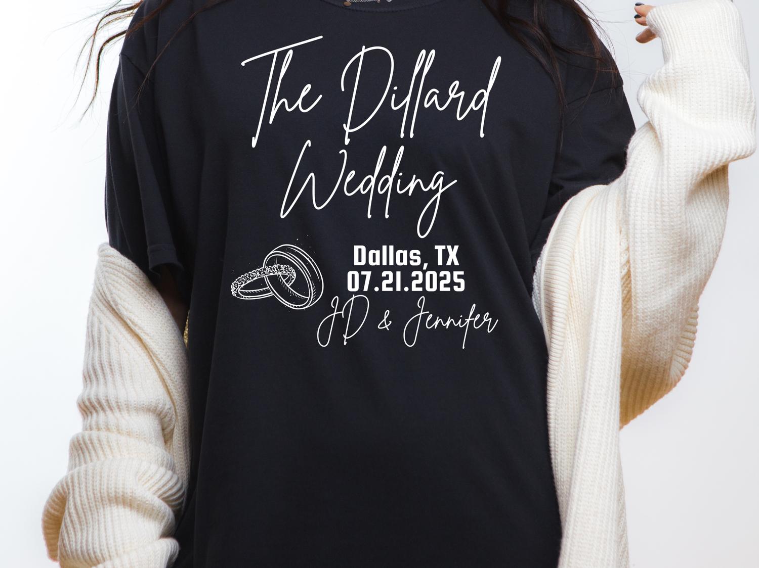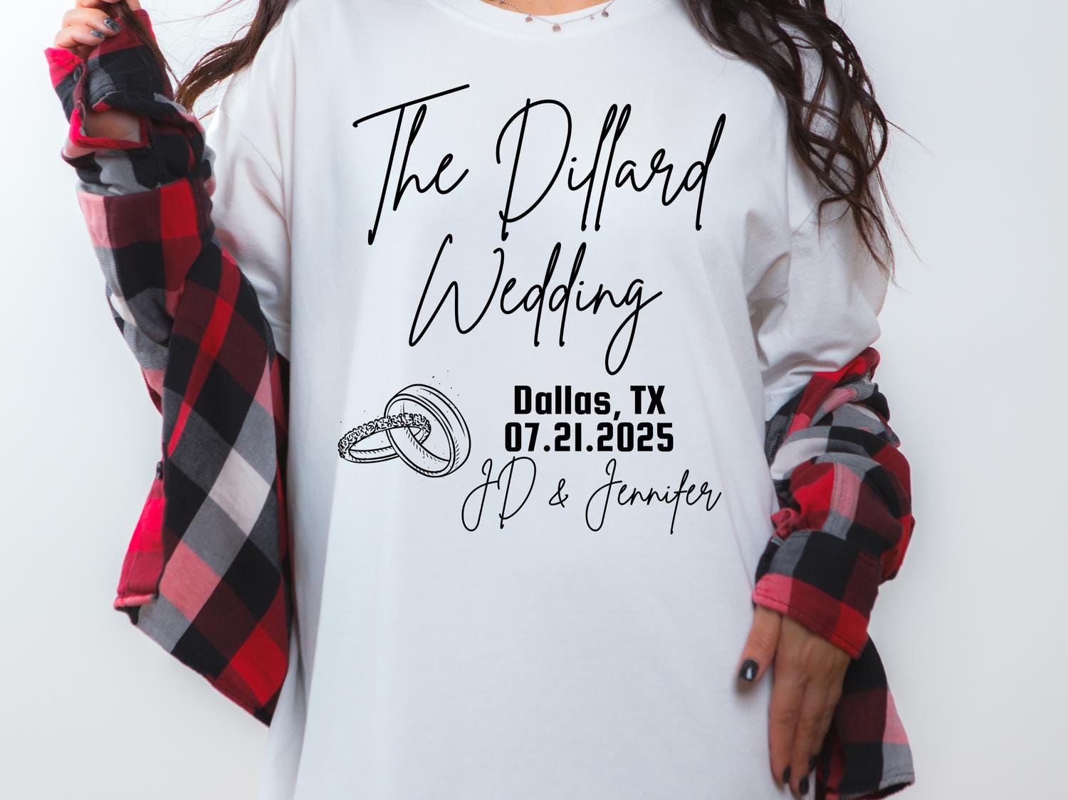 These matching T-shirts are not only a fantastic addition to your wedding celebration but also serve as memorable wedding favors for your guests. They make a popular, bestselling choice for wedding parties and guests alike. Create lasting memories with a personalized touch that celebrates your love story in a fun and stylish way. Perfect for capturing those joyful moments, these wedding custom shirts will become keepsakes of your special day.