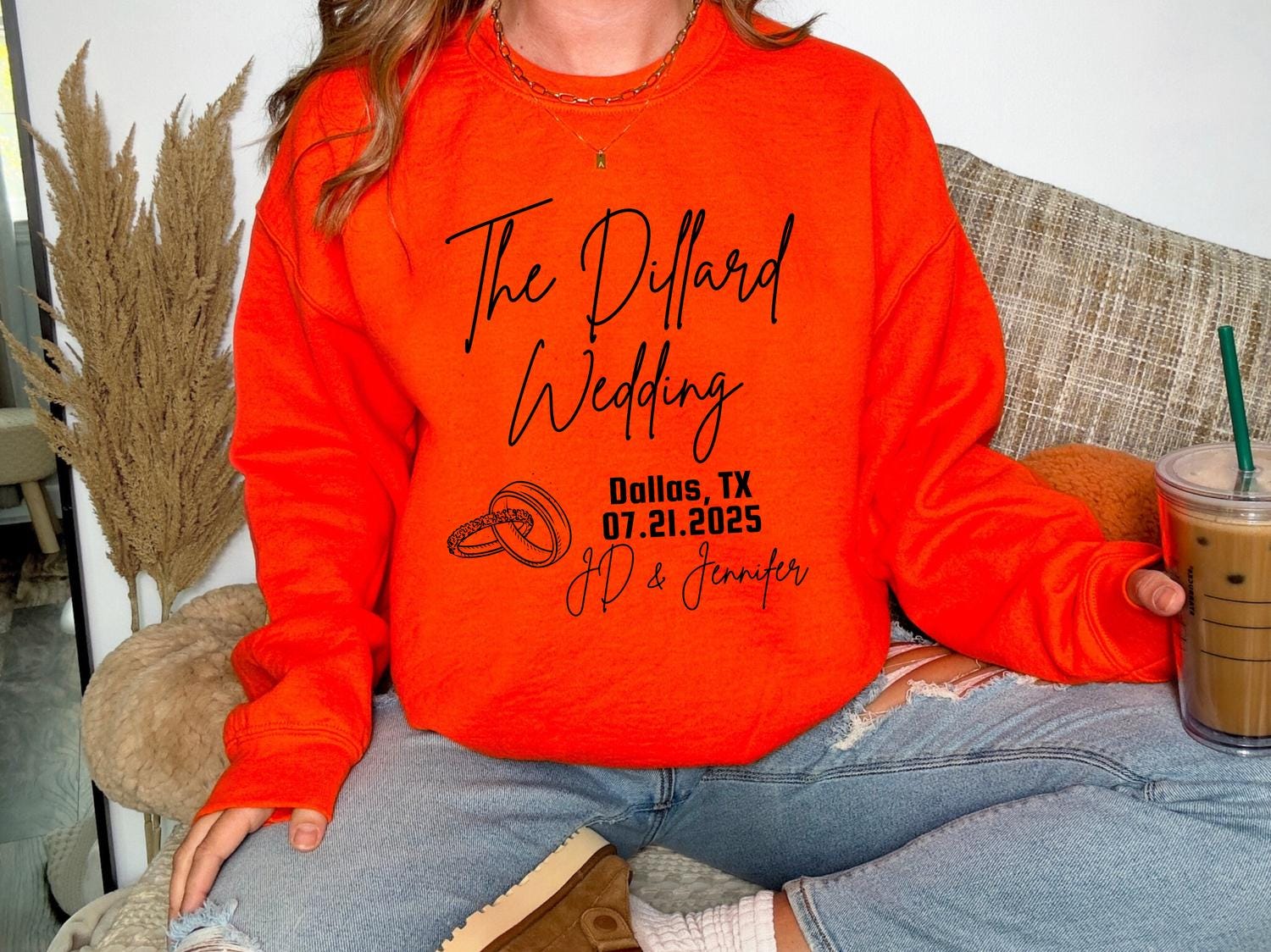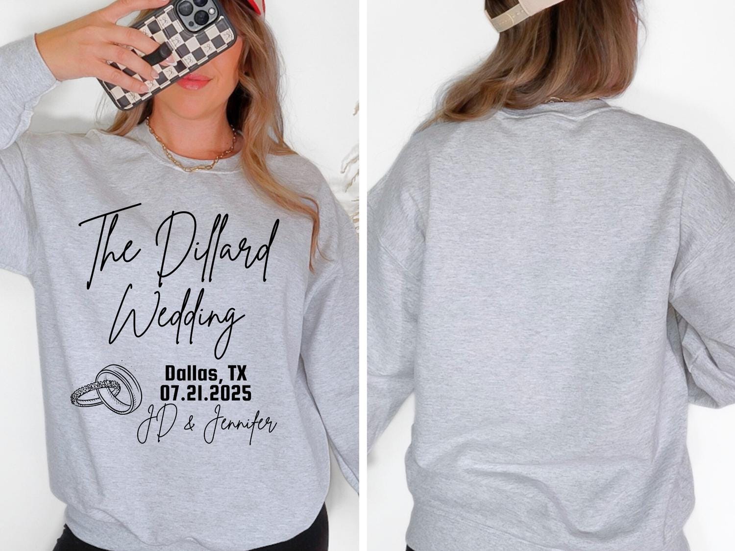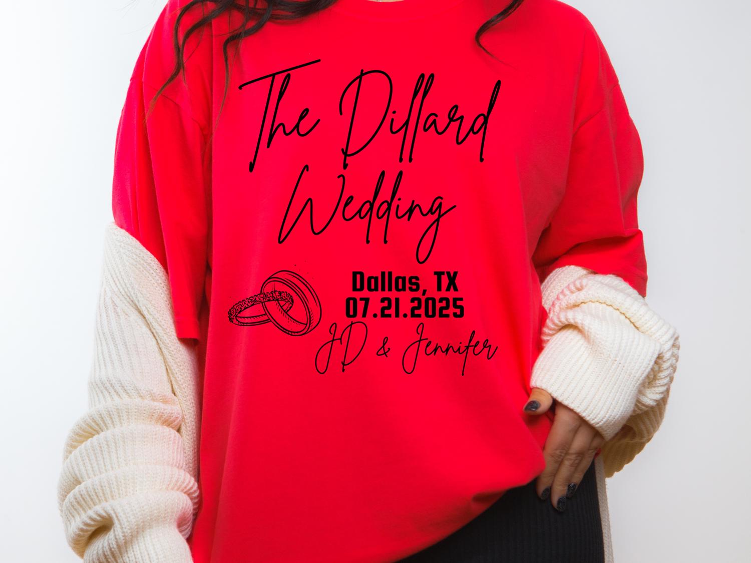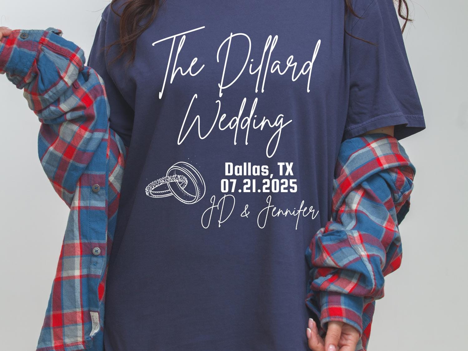 These matching T-shirts are not only a fantastic addition to your wedding celebration but also serve as memorable wedding favors for your guests. They make a popular, bestselling choice for wedding parties and guests alike. Create lasting memories with a personalized touch that celebrates your love story in a fun and stylish way. Perfect for capturing those joyful moments, these wedding custom shirts will become keepsakes of your special day.