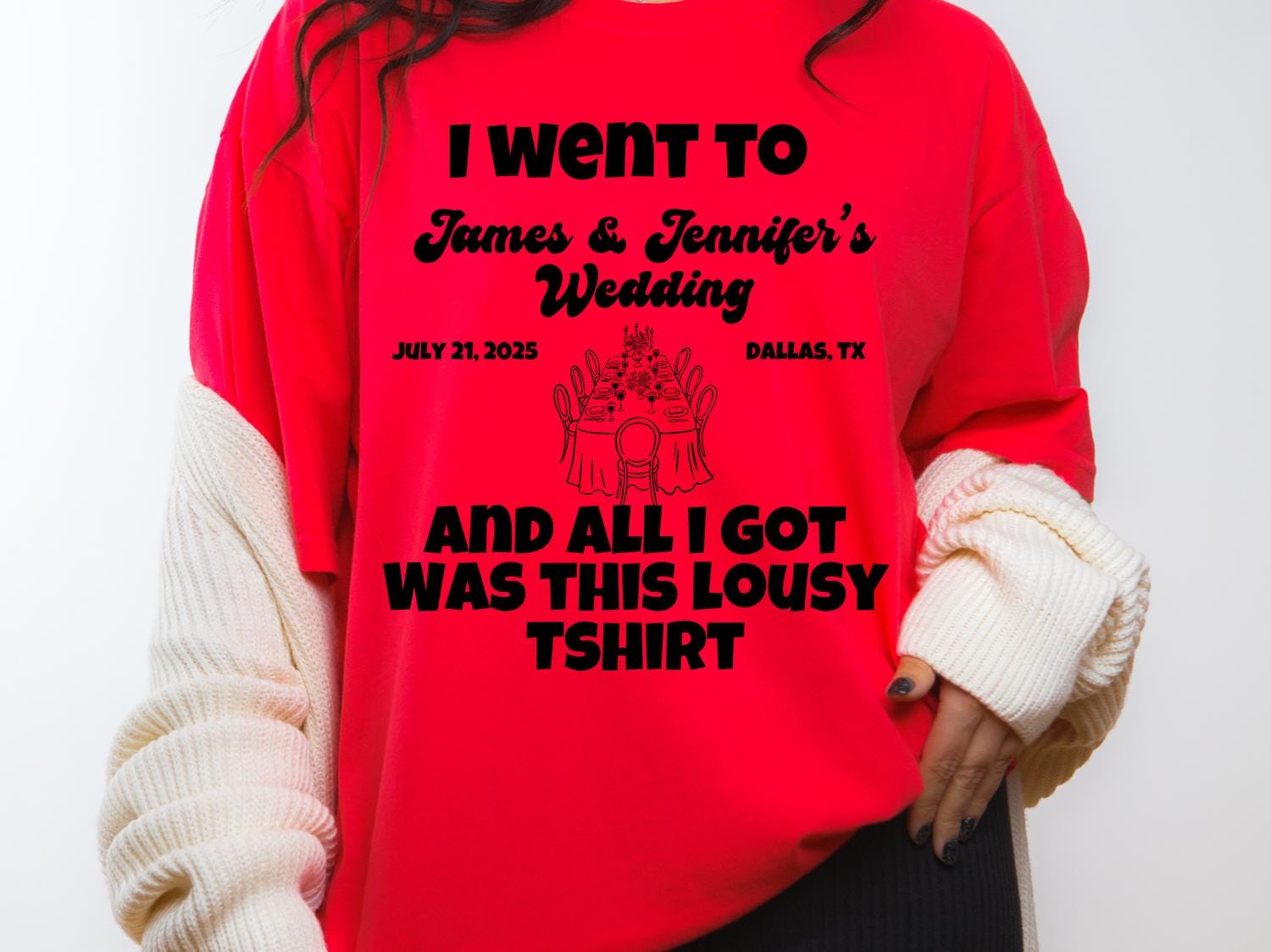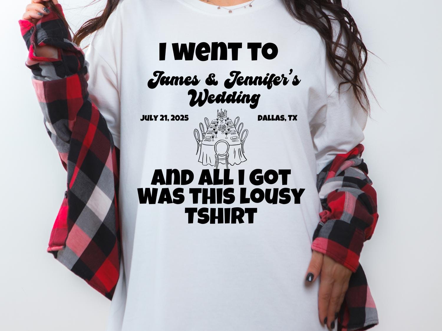 Made from high-quality, comfortable fabric, this wedding T-shirt features a humorous and eye-catching design that captures your wedding vibe. It’s an ideal guest wedding tee or wedding custom shirt that stands out in photos and adds a unique element to your special day. The matching T-shirts are great for bridal tosses or just fun moments with your wedding party, making them an instant favorite and a bestseller T-shirt.
