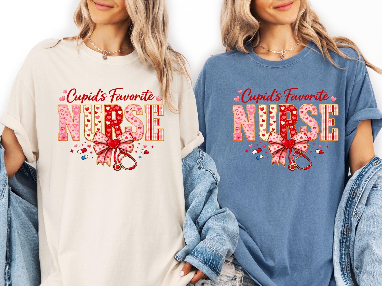 Cupid's Favorite Nurse Valentines Tee Shirt, nursing shirt, registered nurse gift, group nurse matching T shirts, work shirt, Vday nurse tee