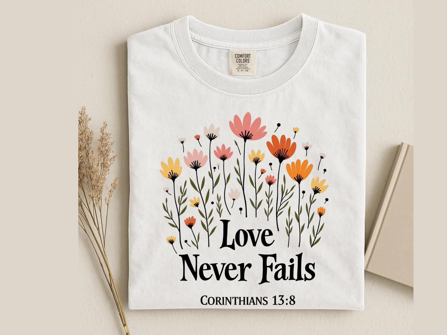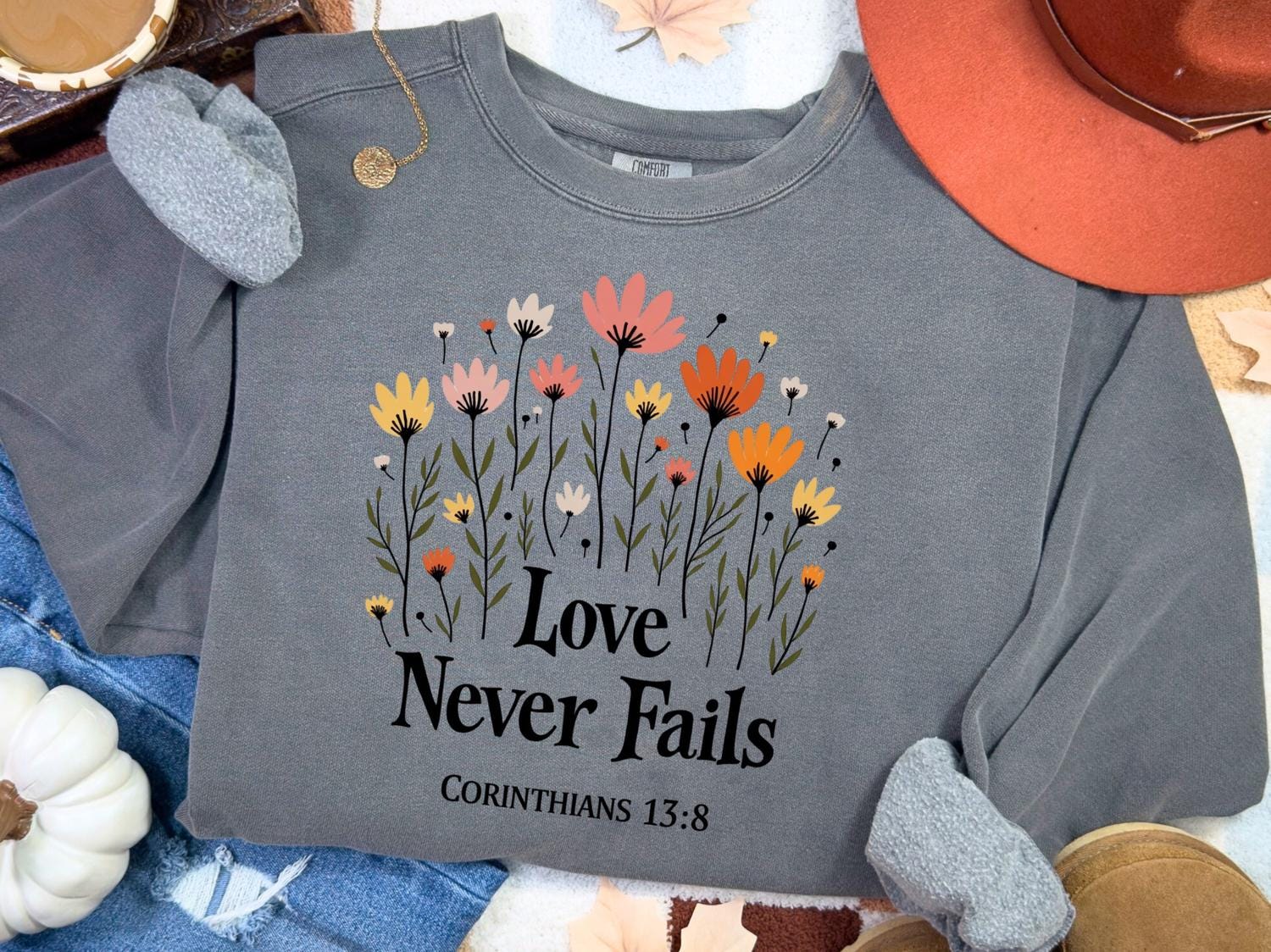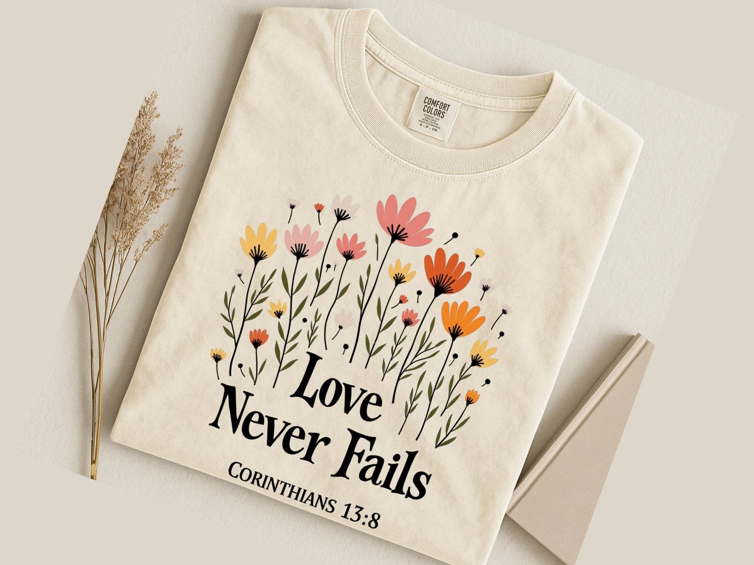 Christian Jesus Sweatshirt, Love Never Fails Bible Verse T-Shirt, Faith Apparel Gift, Religious Tee, Christian Love Shirt, Comfort Colors
