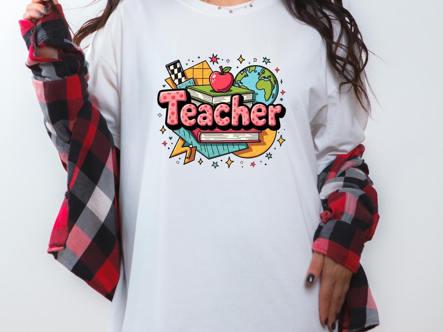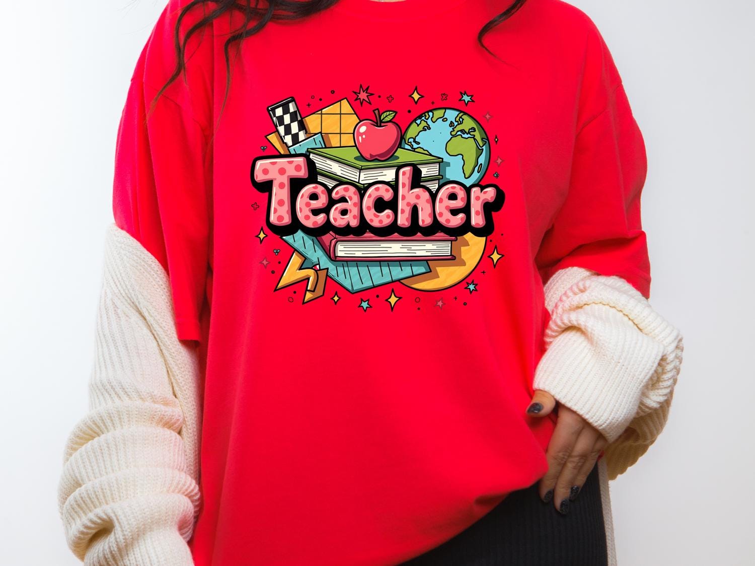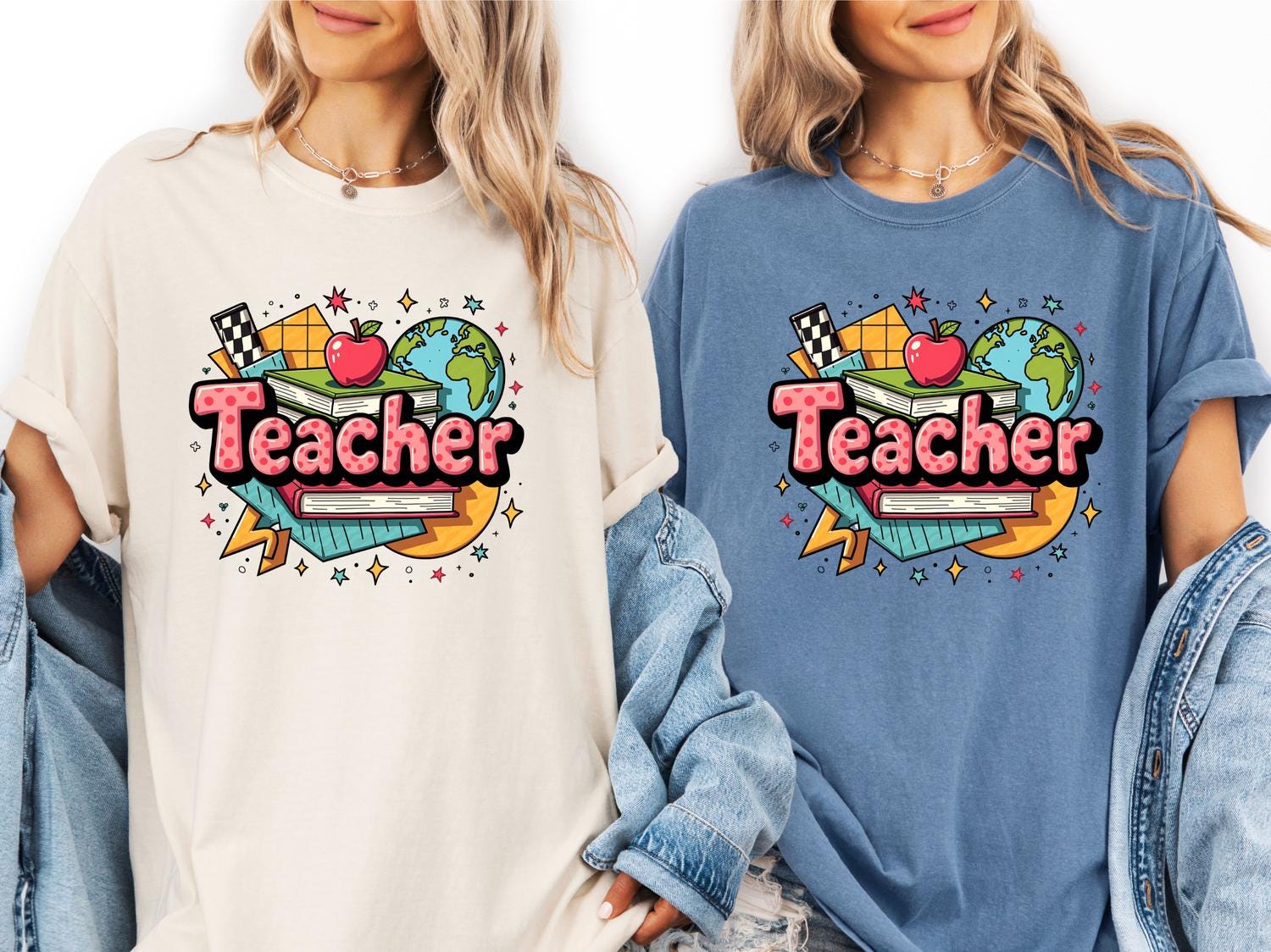 Celebrate your passion for teaching with our Retro 90's Teacher T-shirt, a perfect matching teacher group tee for back-to-school fun or teacher appreciation gifts! Designed to capture the nostalgic vibe of the 90s, this eye-catching shirt features vibrant, playful artwork that highlights the joy and dedication of educators. Whether you're a teacher, part of a teaching team, or looking for a thoughtful gift for a favorite educator, this unique retro tee is sure to make a statement.