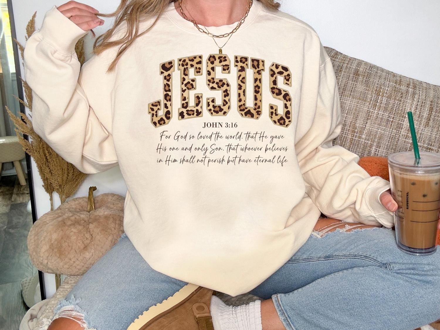 Christian Jesus Sweatshirt, Cheetah Print Bible Verse Tshirt, Trendy Faith Apparel Gift, Jesus Loves You, The Way The Truth The Life