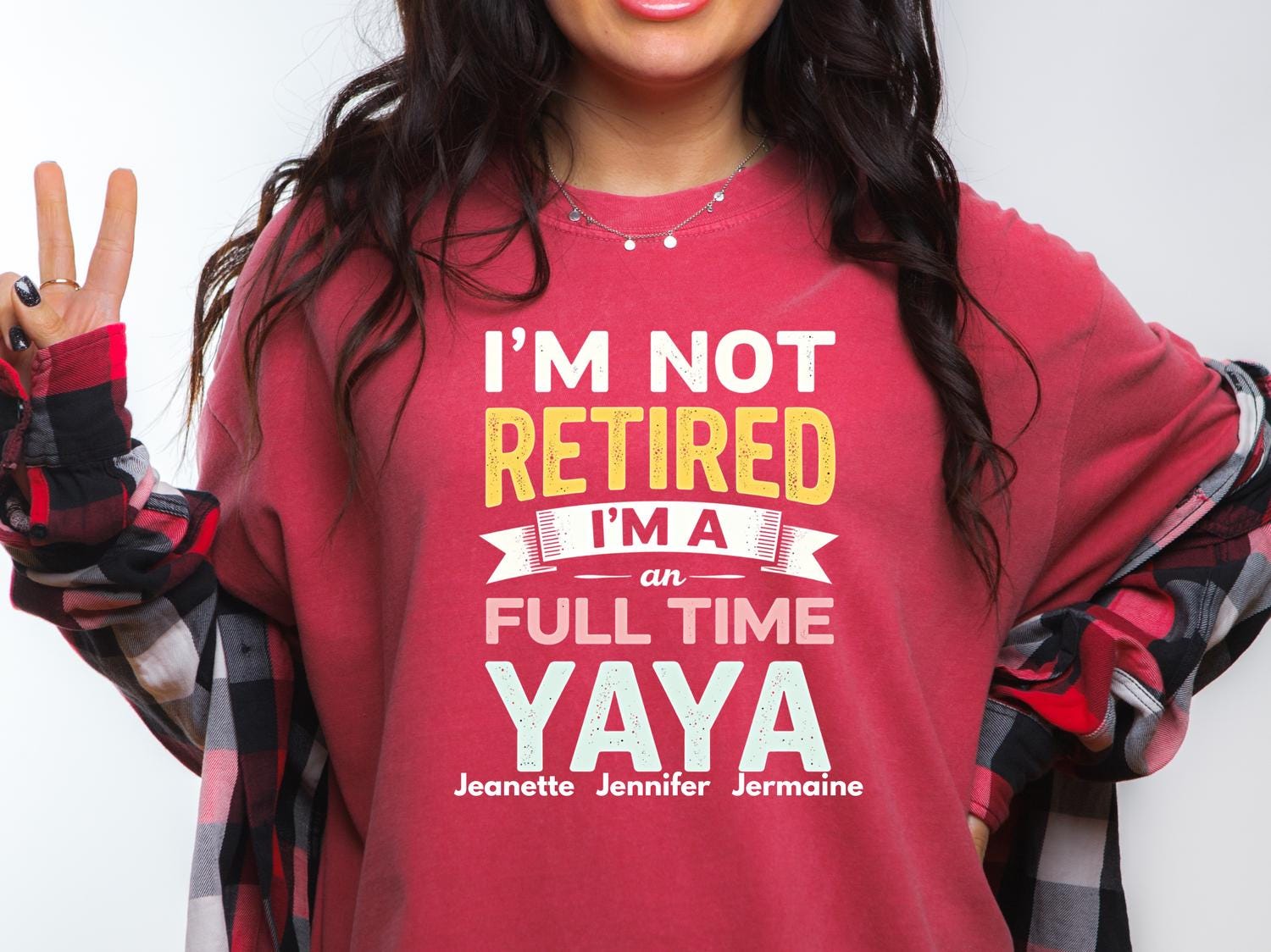 This Yaya shirt is perfect for grandmas who proudly say, “I’m not retired I’m a full time Yaya.” Made for loving Greek grandmas who are always caring for their grandkids, it’s a thoughtful Mother’s Day gift she’ll cherish 🎁 The bold, playful typography gives it a clean everyday style that pairs effortlessly with jeans or leggings. Printed on a soft, comfortable graphic tee, it’s perfect for family gatherings, holidays, and celebrating her full-time Yaya life 👕❤️