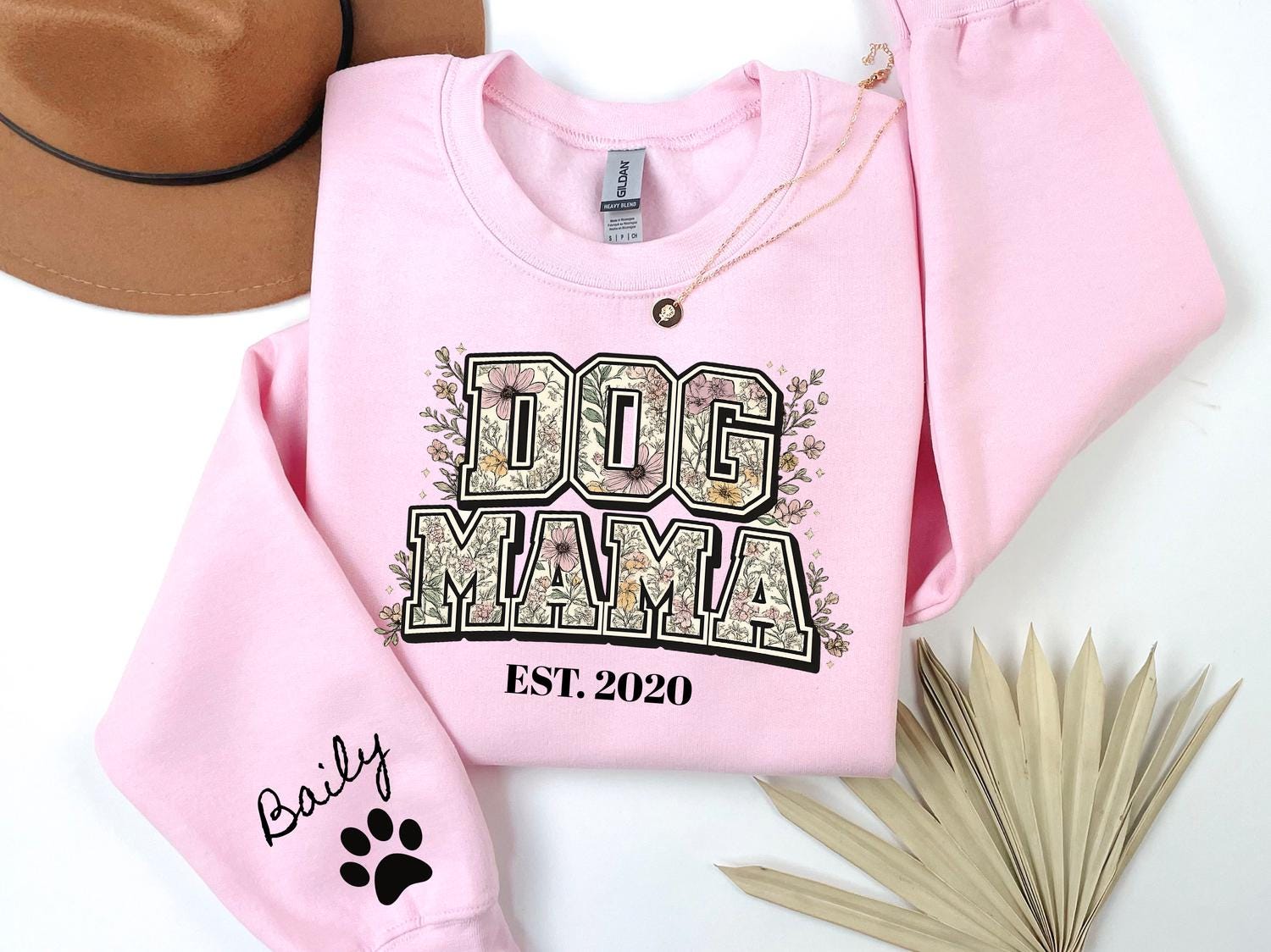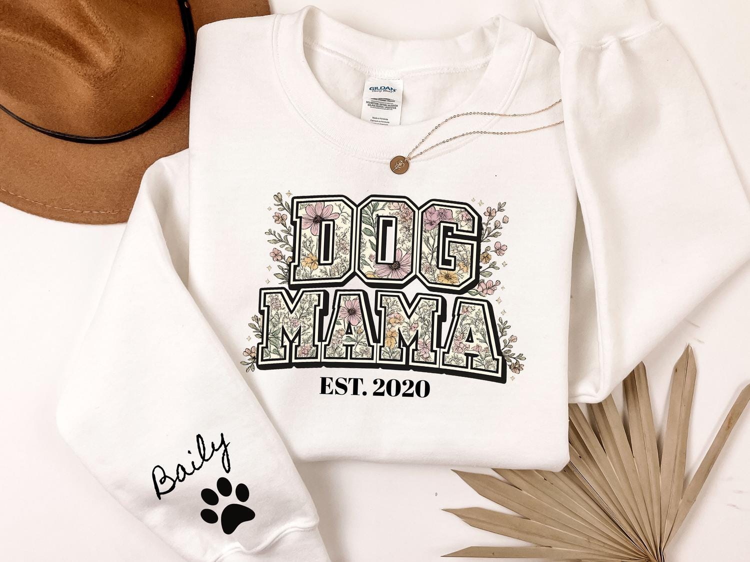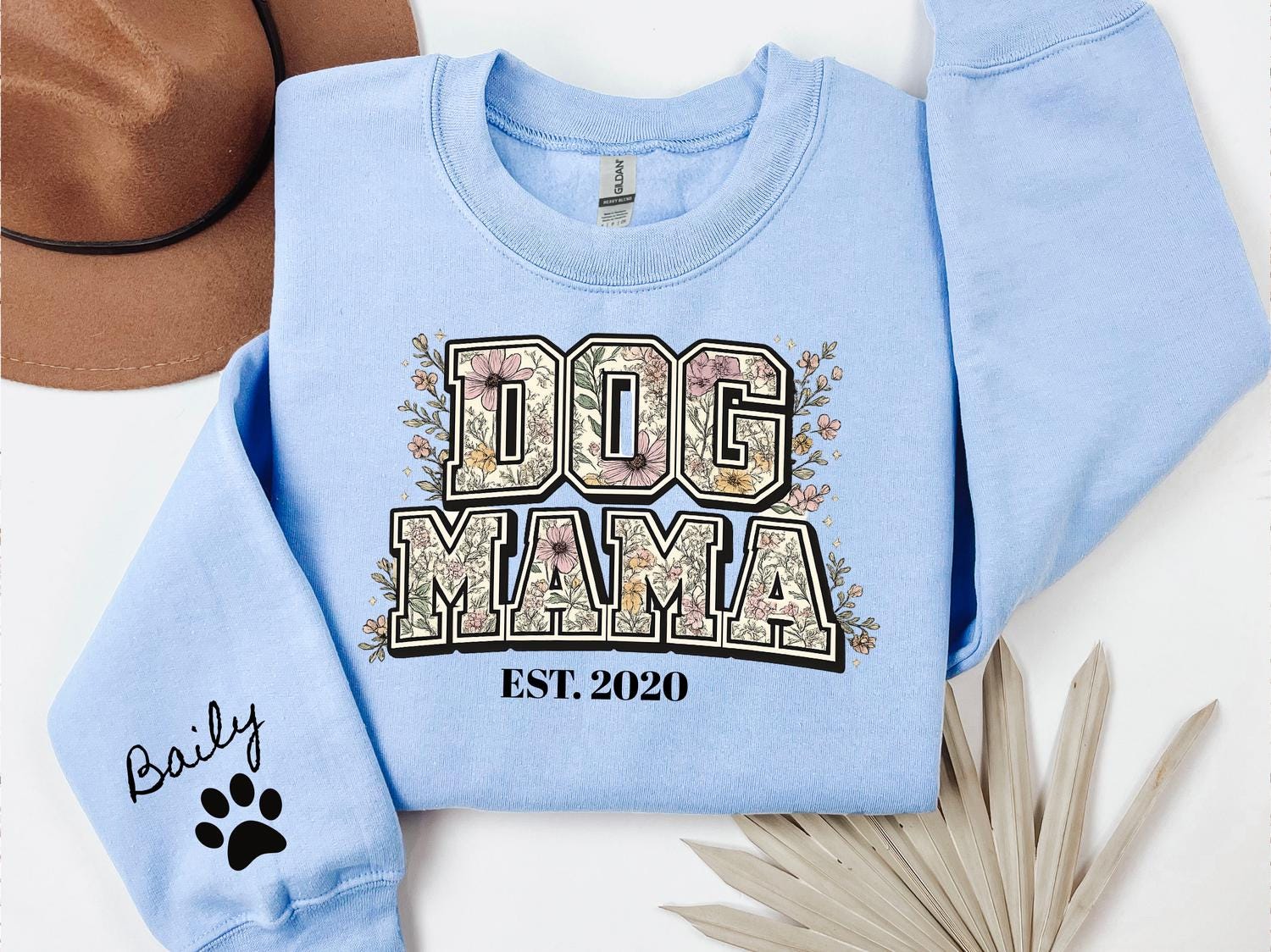 DOG Mama EST Sweatshirt Personalized Dog Mom Crewneck Custom Pet Owner Gift Mothers Day Dog Mama Pullover Personalized