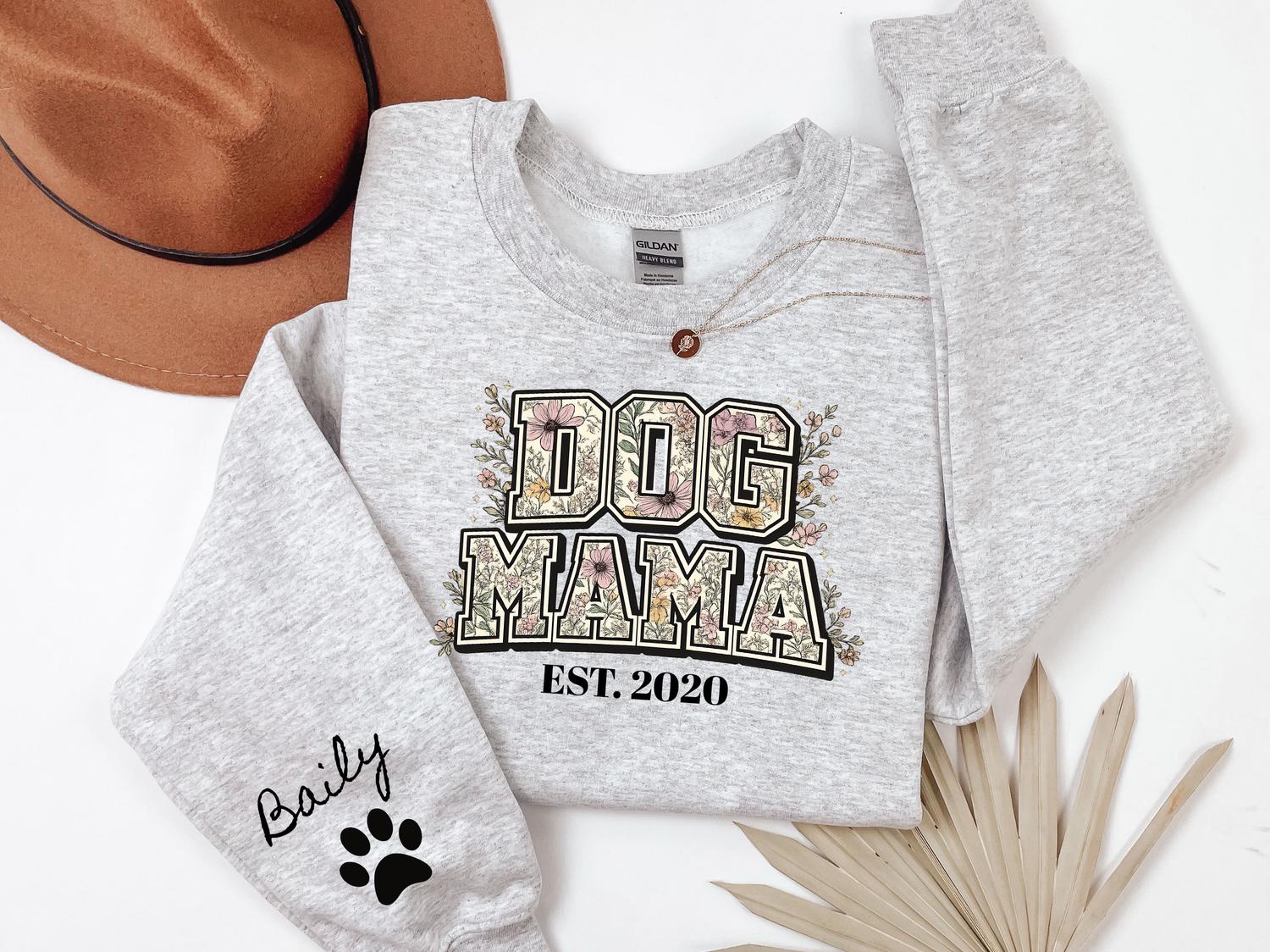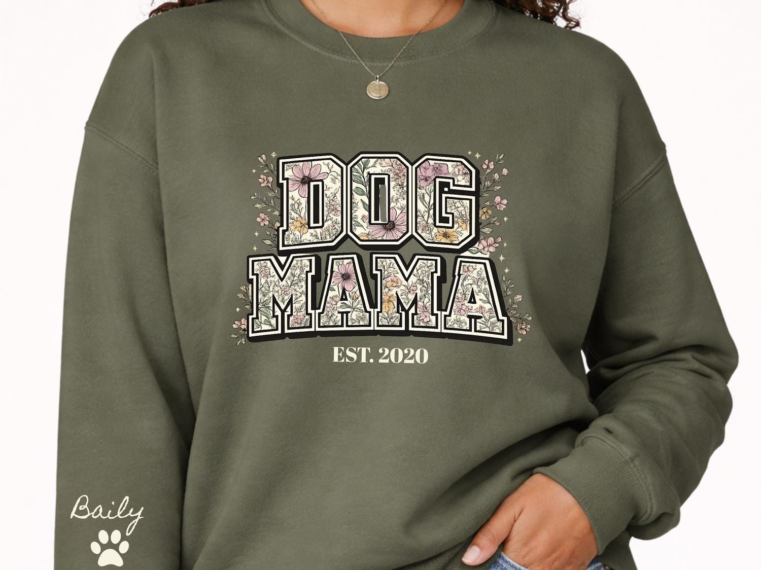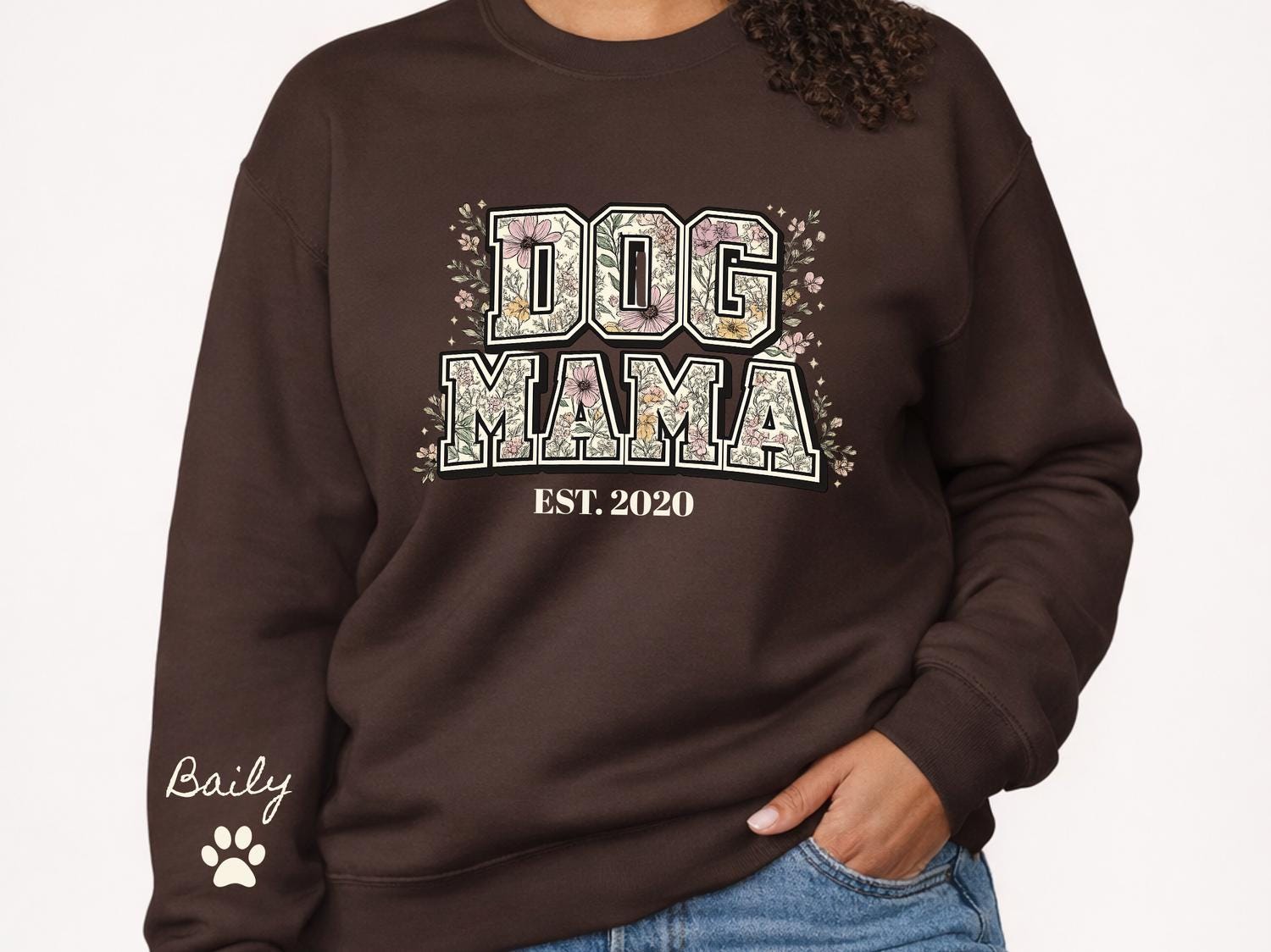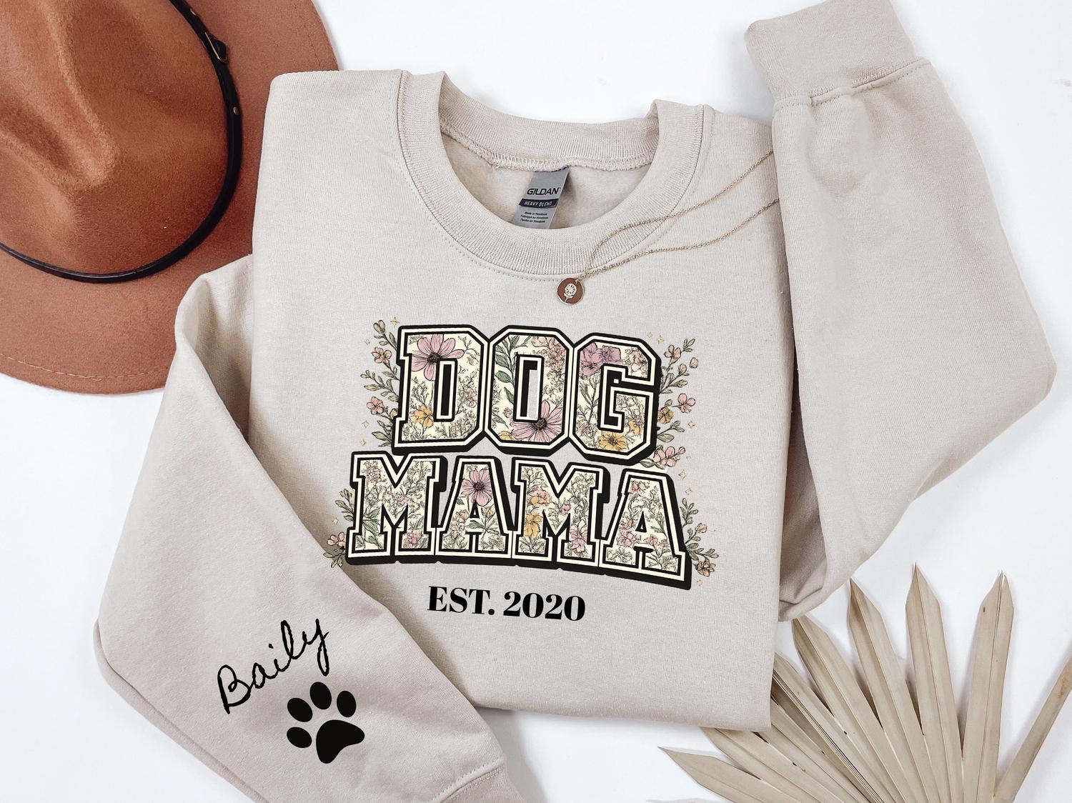 DOG Mama EST Sweatshirt Personalized Dog Mom Crewneck Custom Pet Owner Gift Mothers Day Dog Mama Pullover Personalized