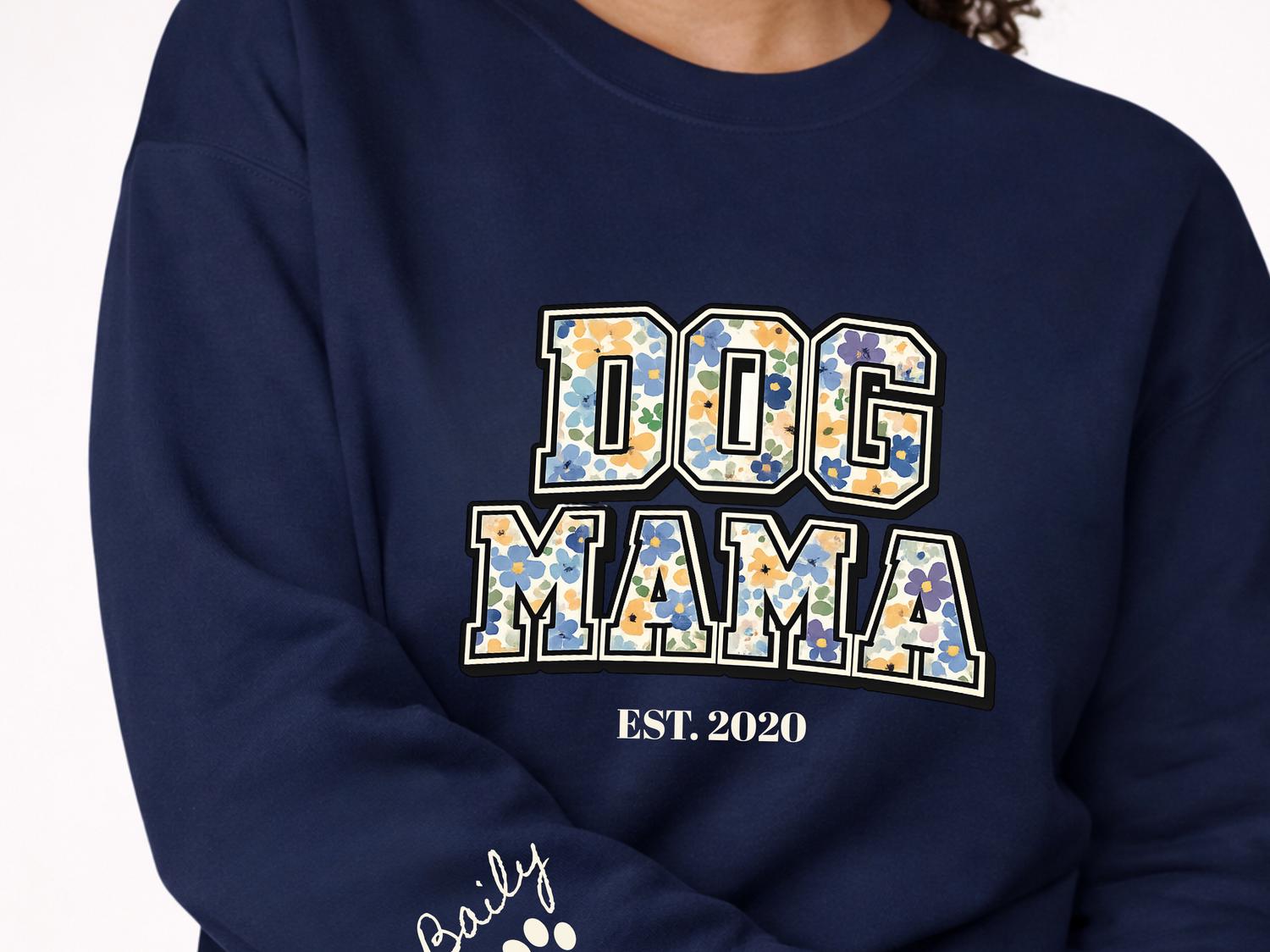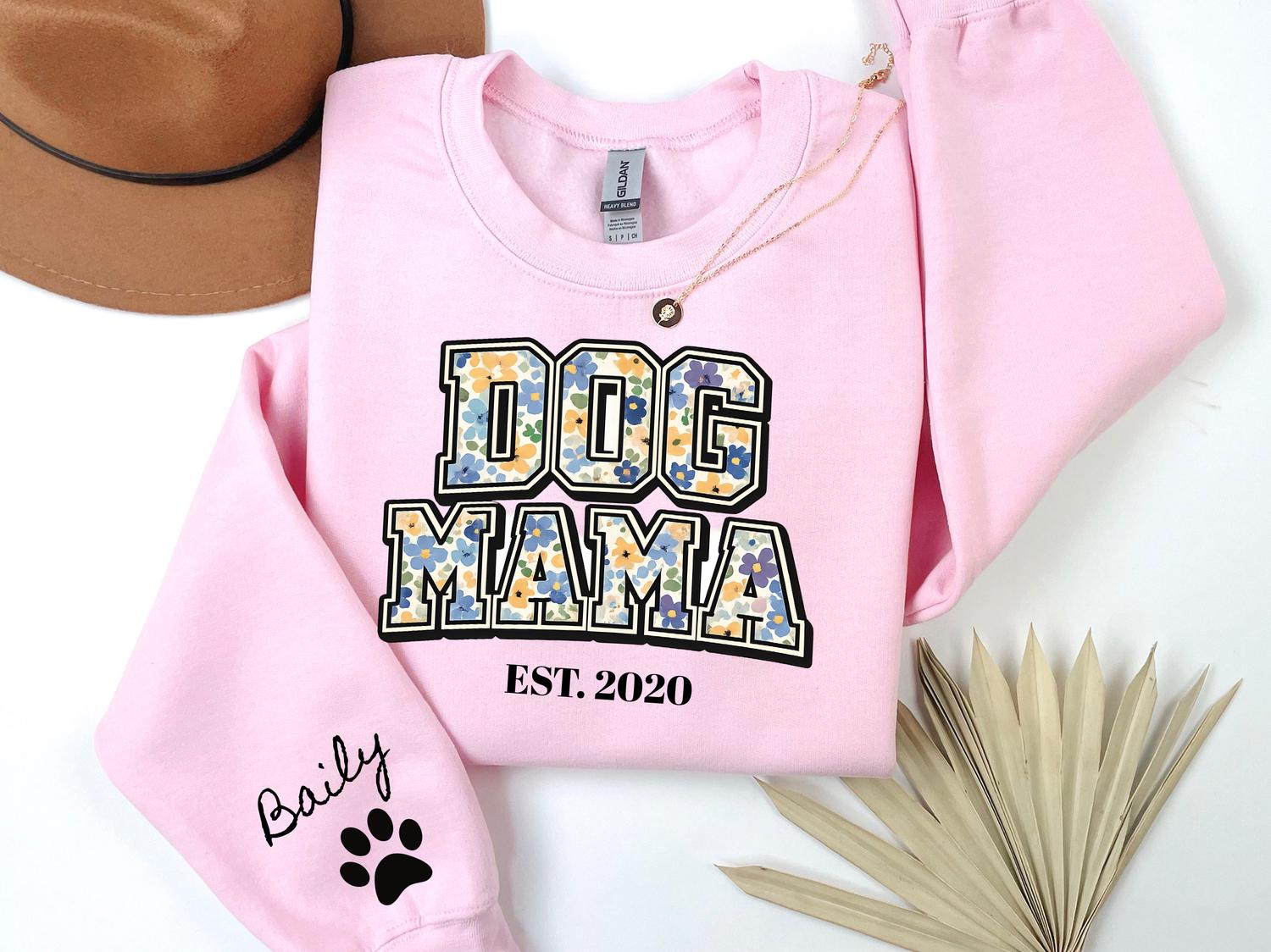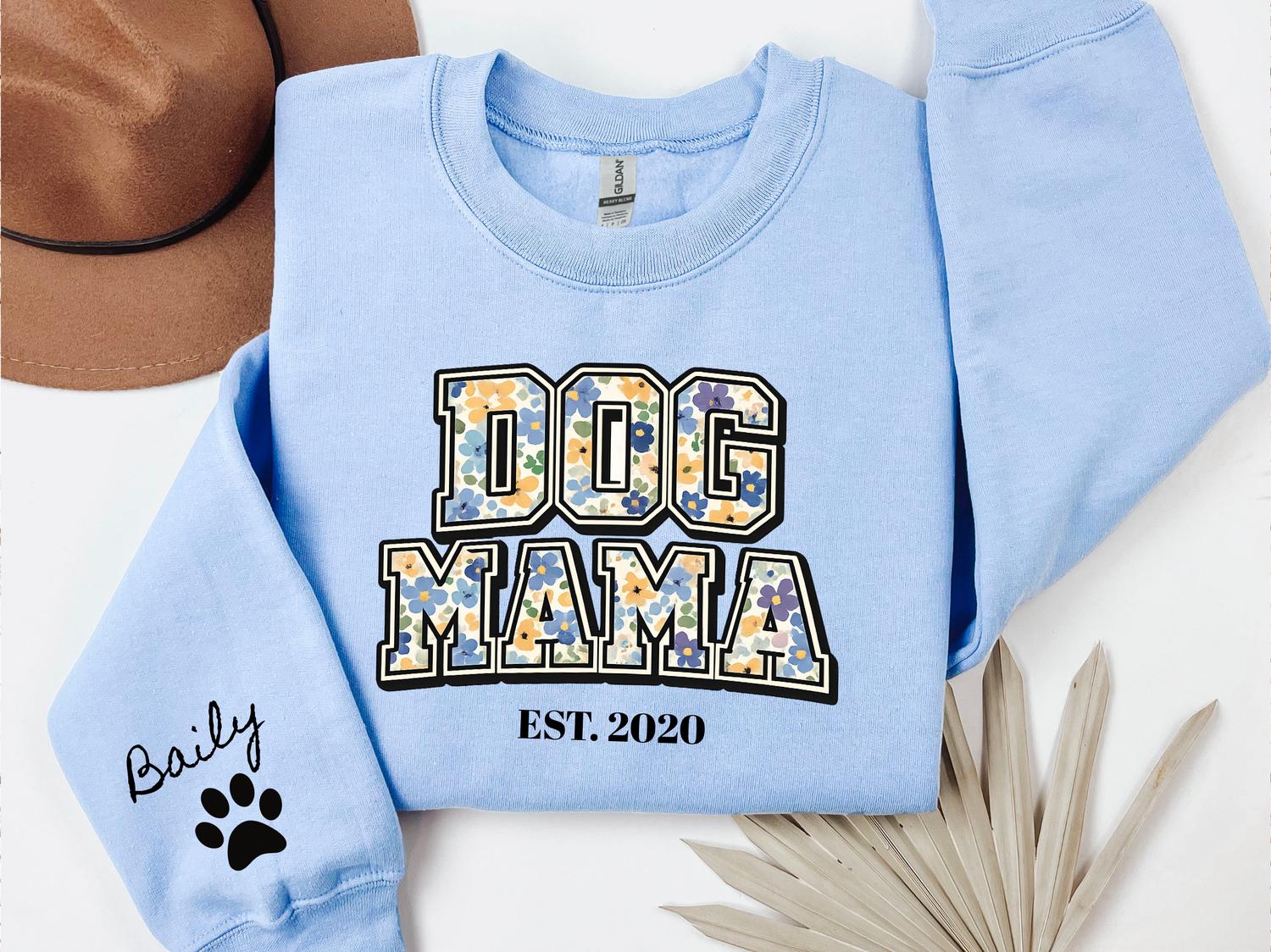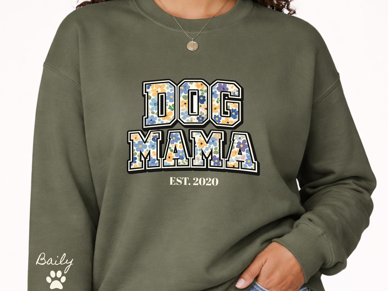 DOG Mama EST Dog Mom Sweatshirt Personalized Pet Mama Crewneck Custom Mothers Day Gift for Dog Owners