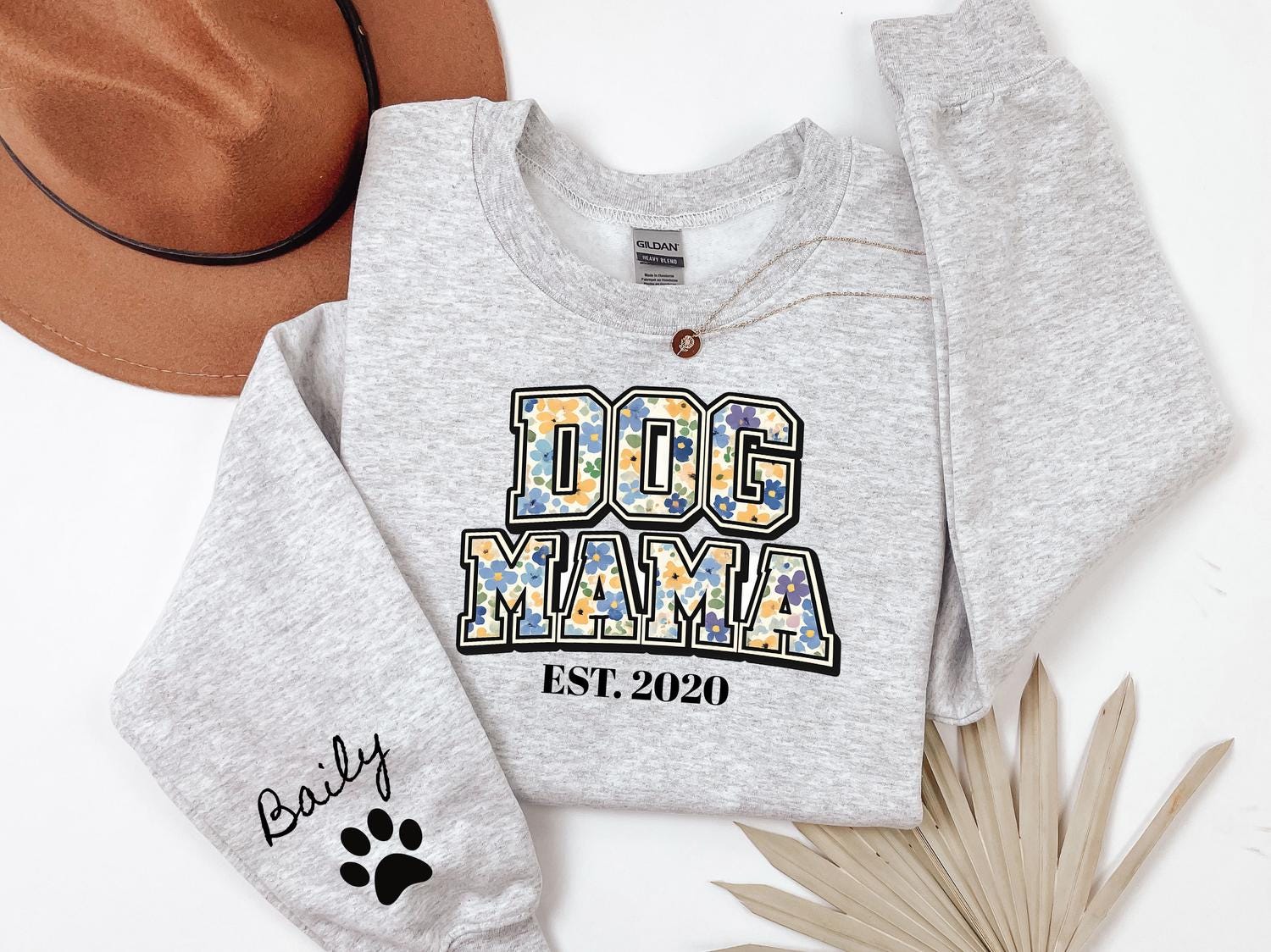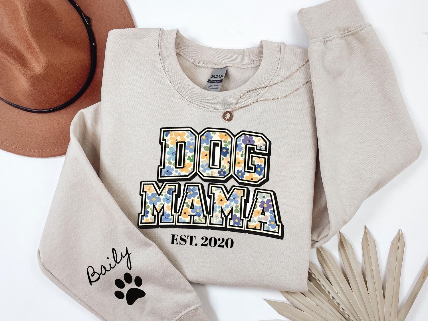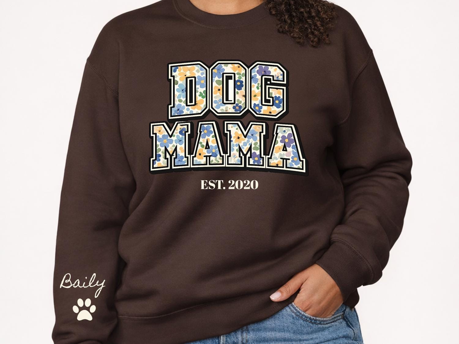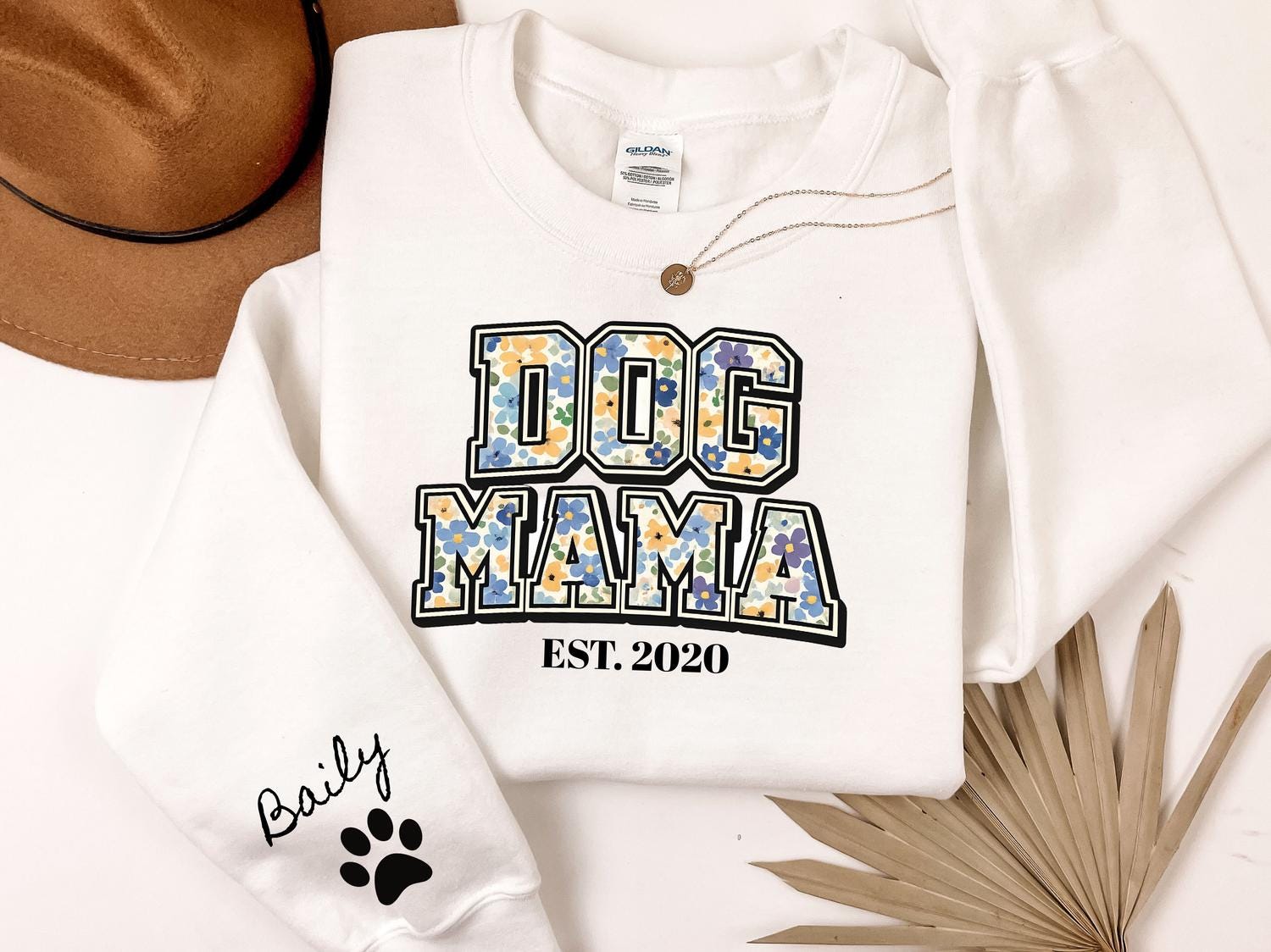 DOG Mama EST Dog Mom Sweatshirt Personalized Pet Mama Crewneck Custom Mothers Day Gift for Dog Owners