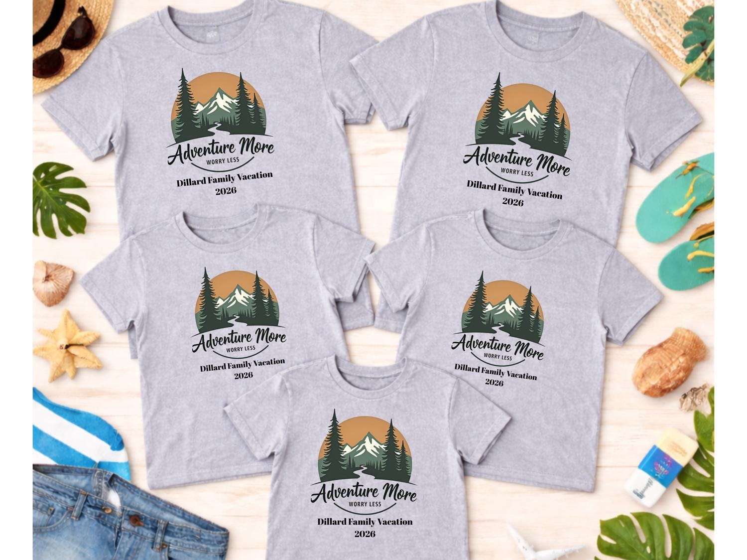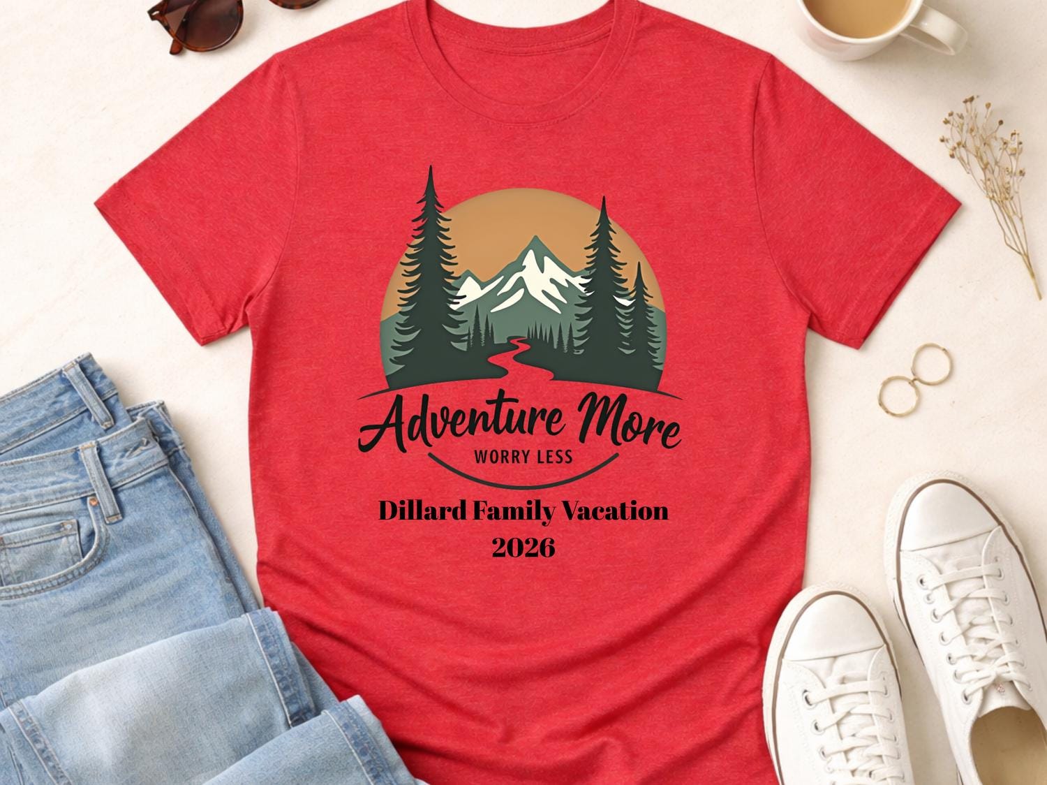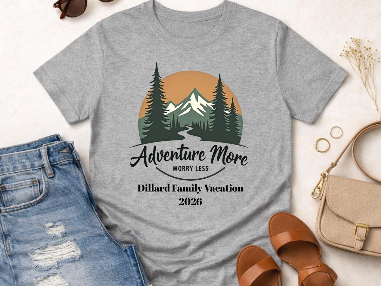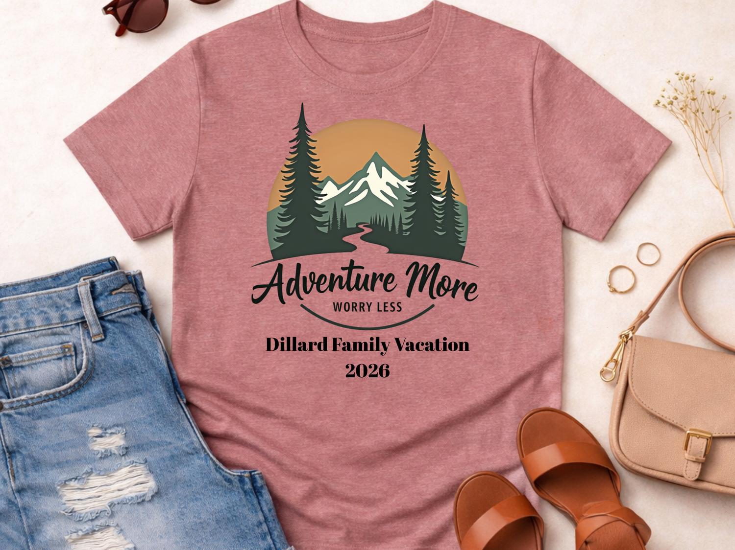 This Adventure More Worry Less family vacation shirt is perfect for your next group road trip or travel adventure. Designed for personalized family vacation groups from adults to toddlers, this matching travel tee keeps everyone coordinated and photo-ready. ✨ The design has a clean, bold travel vibe that makes it ideal for family trips, summer vacations, and reunion getaways. Comfortable for everyday wear, these custom family road trip shirts are great for long drives, theme parks, cruises, or airport days. 🎁 A fun and memorable way to celebrate your trip together in style.