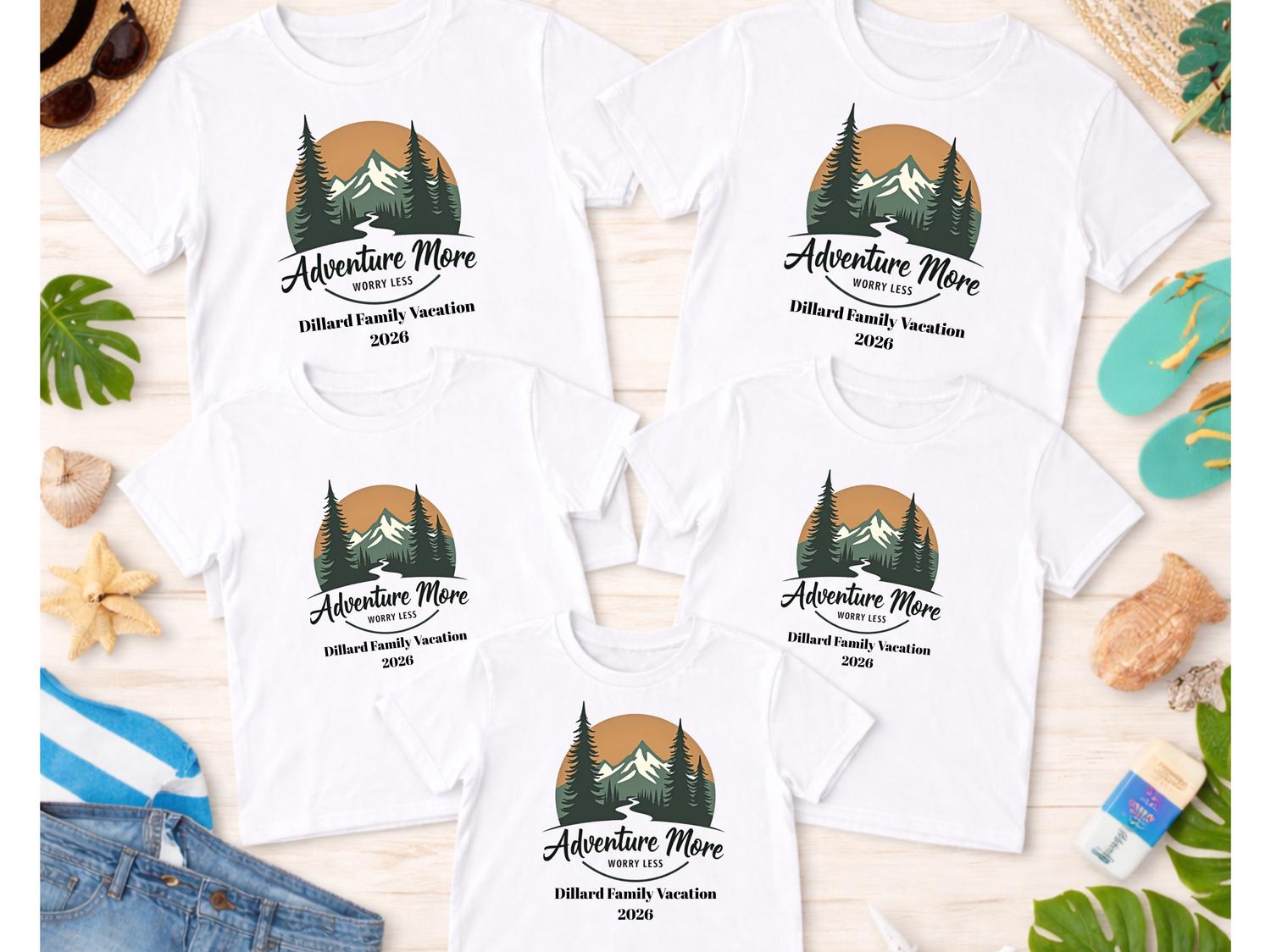 Adventure More Worry Less Road Trip Shirt – Custom Family Vacation Shirts, Matching Travel Tees for Adults Kids Toddler