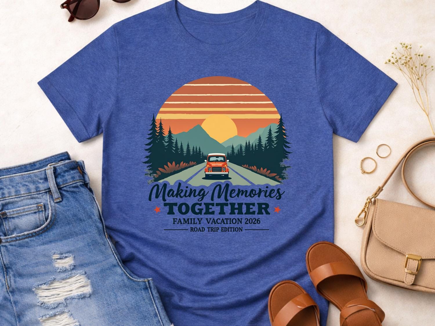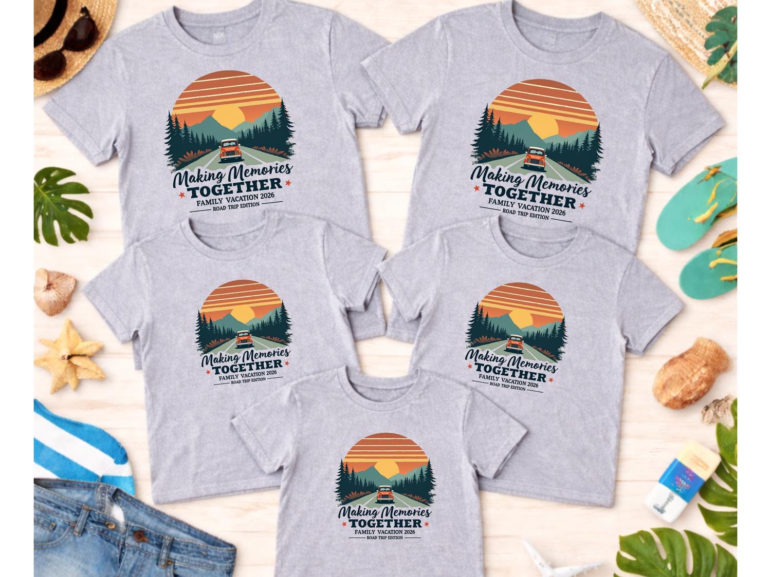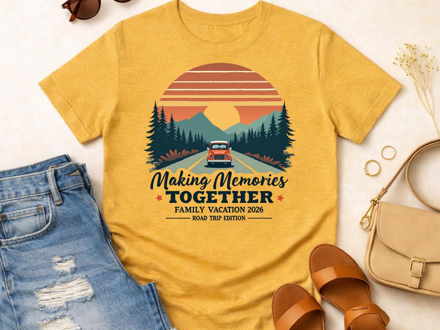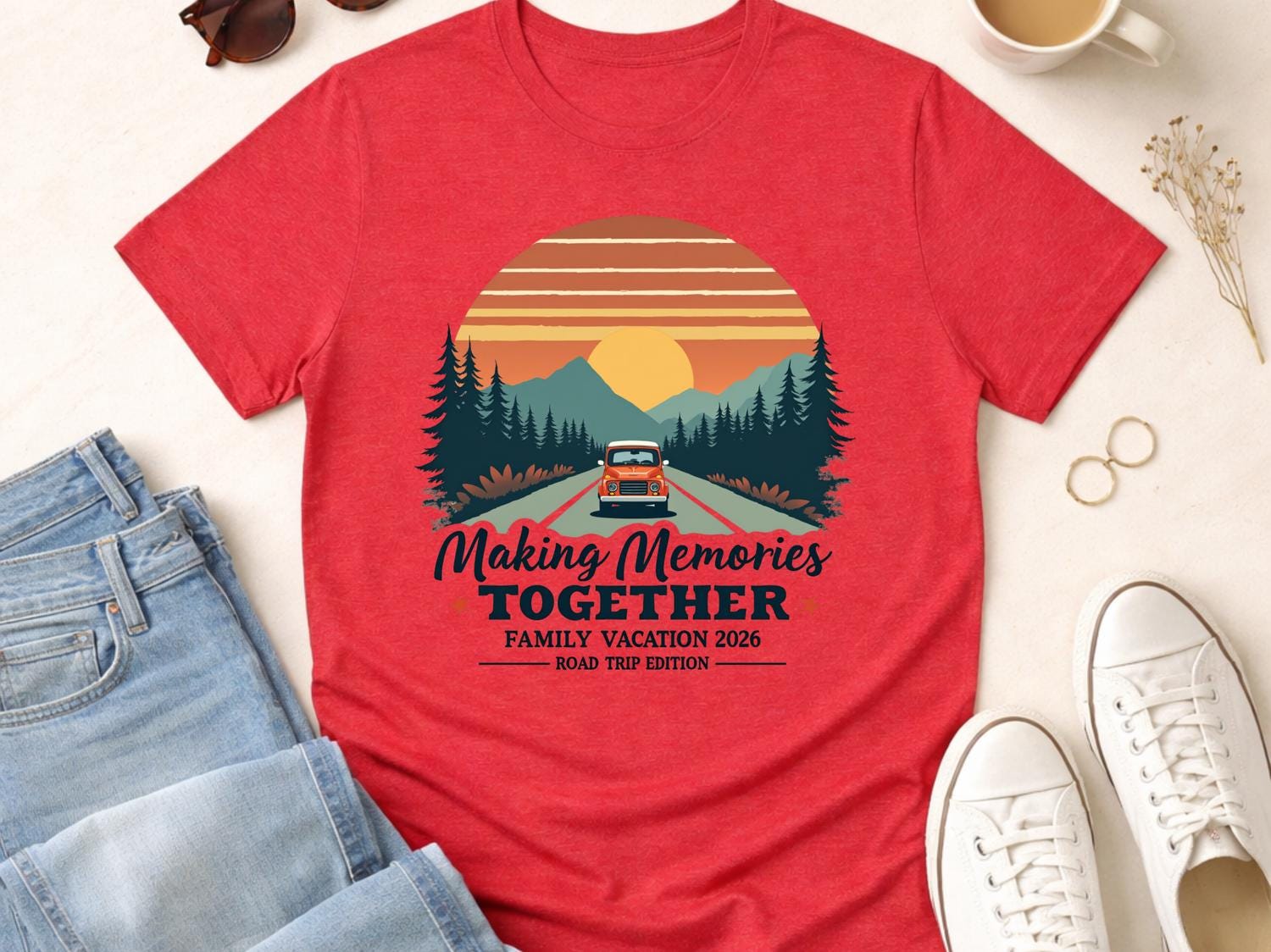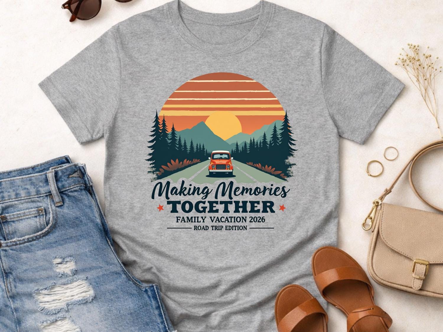 This Bestseller Making Memories Together family vacation shirt is perfect for your next group road trip or travel adventure. Designed for personalized family vacation groups from adults to toddlers, this matching travel tee keeps everyone coordinated and photo-ready. ✨ The design has a clean, bold travel vibe that makes it ideal for family trips, summer vacations, and reunion getaways. Comfortable for everyday wear, these custom family road trip shirts are great for long drives, theme parks, cruises, or airport days. 🎁 A fun and memorable way to celebrate your trip together in style.