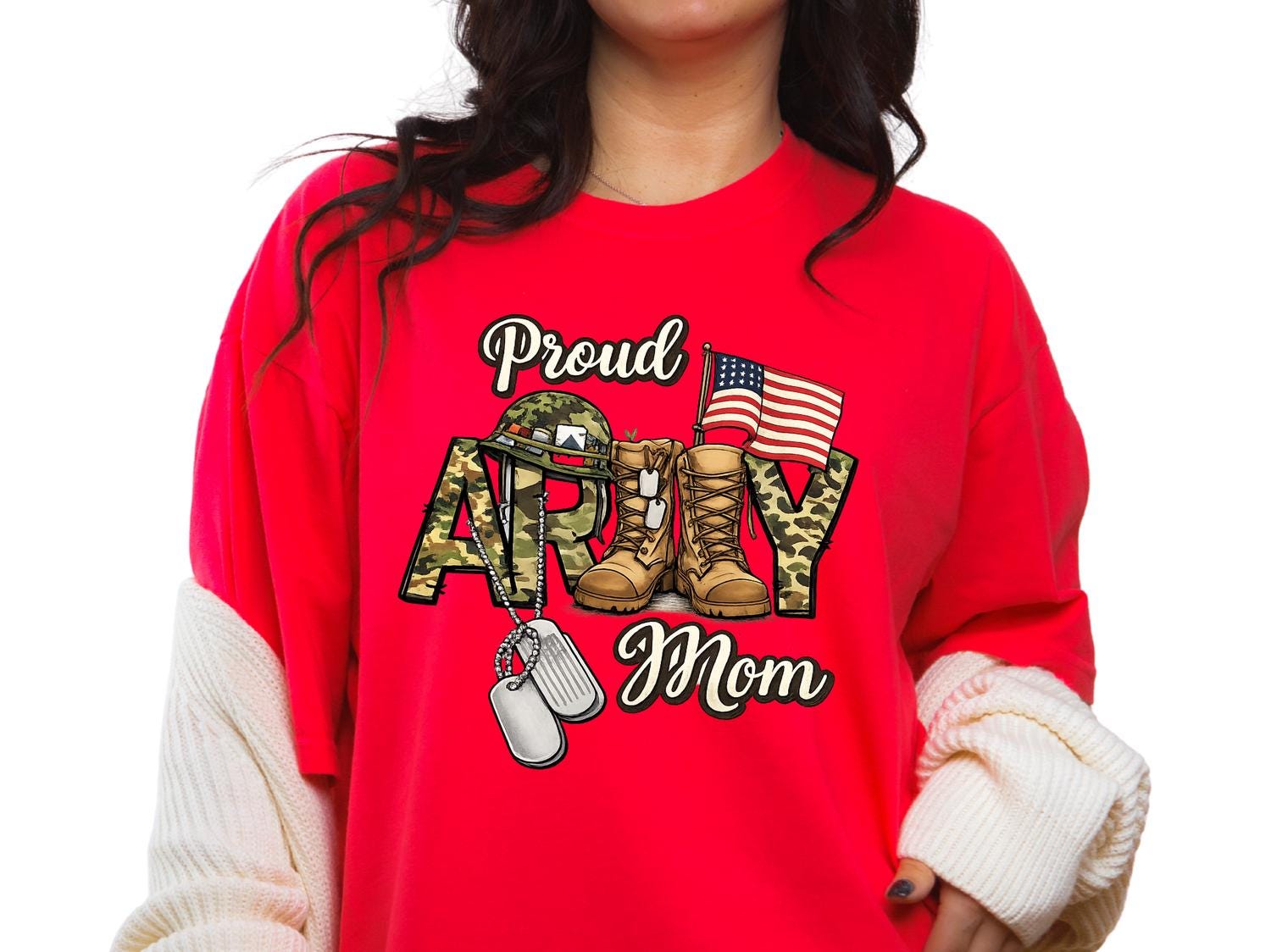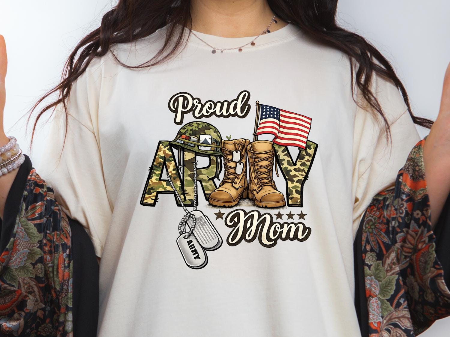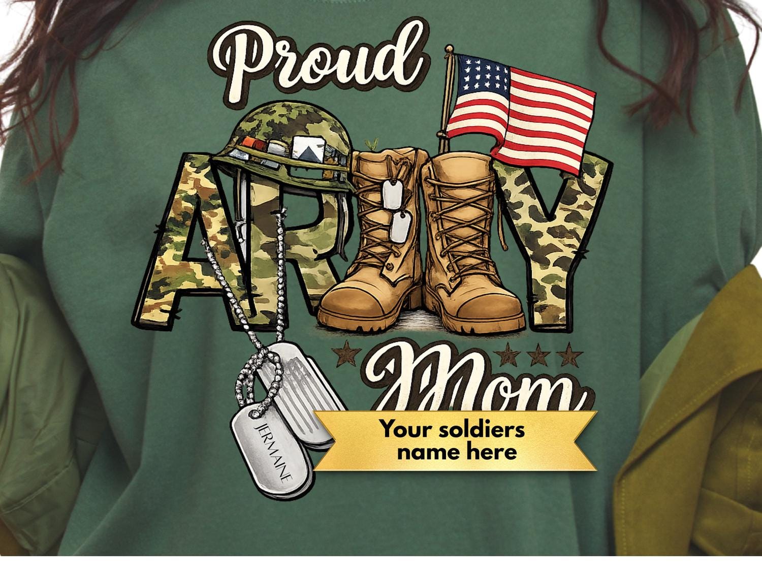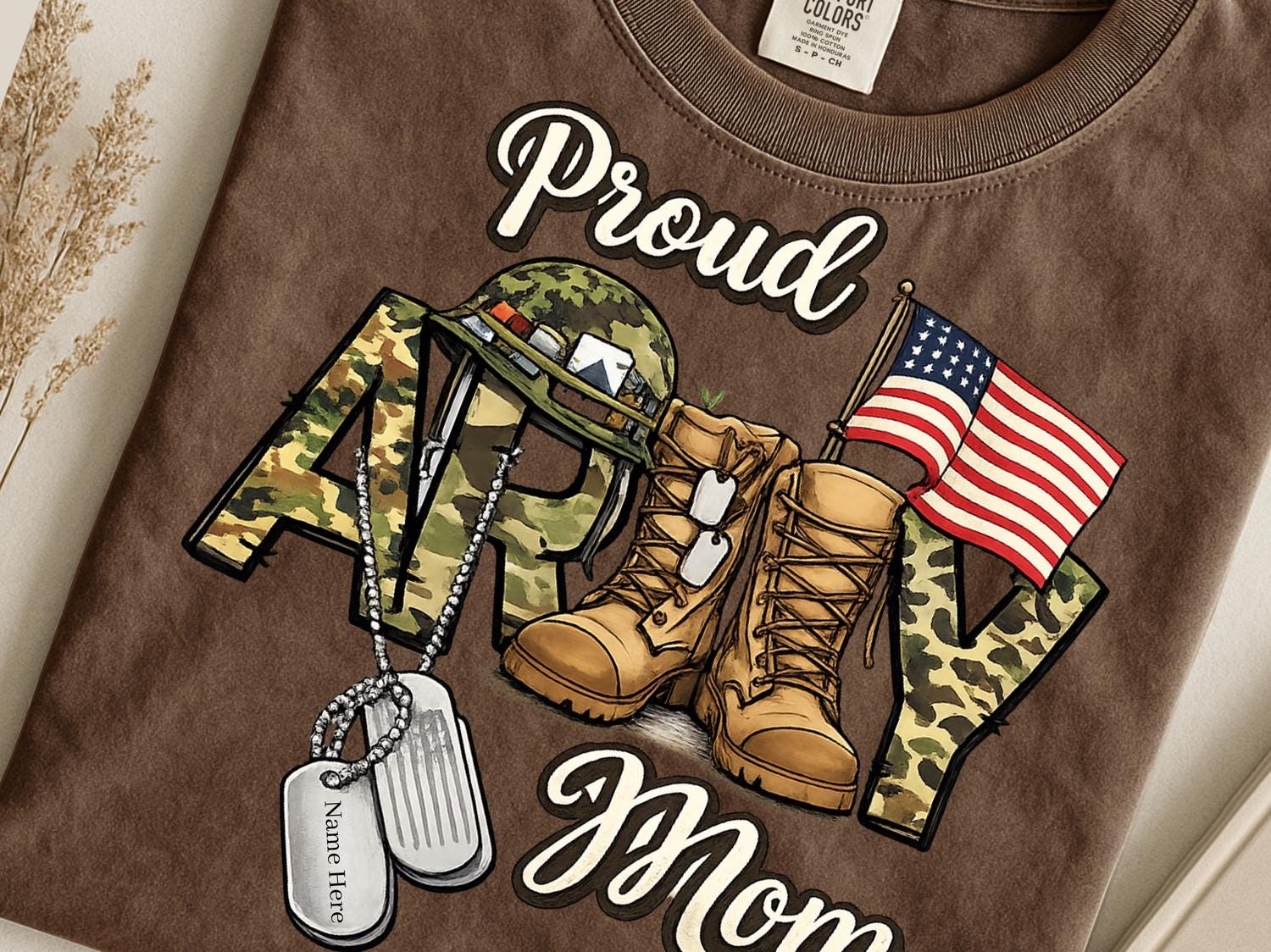 This Proud Army Mom Shirt Personalized design is a meaningful way to celebrate the strength and pride of military families. The design proudly reads “Proud ARMY mom”, creating a bold patriotic look perfect for everyday wear. It’s a thoughtful gift for military moms with a son or daughter serving in the Army, especially for Mother’s Day, deployment send-offs, homecoming celebrations, or military family appreciation. The clean patriotic style makes this comfortable tee easy to wear to military events, family gatherings, or daily life while proudly supporting your soldier. A heartfelt Army Mom gift that shows love, pride, and support for those who serve. ❤️👕