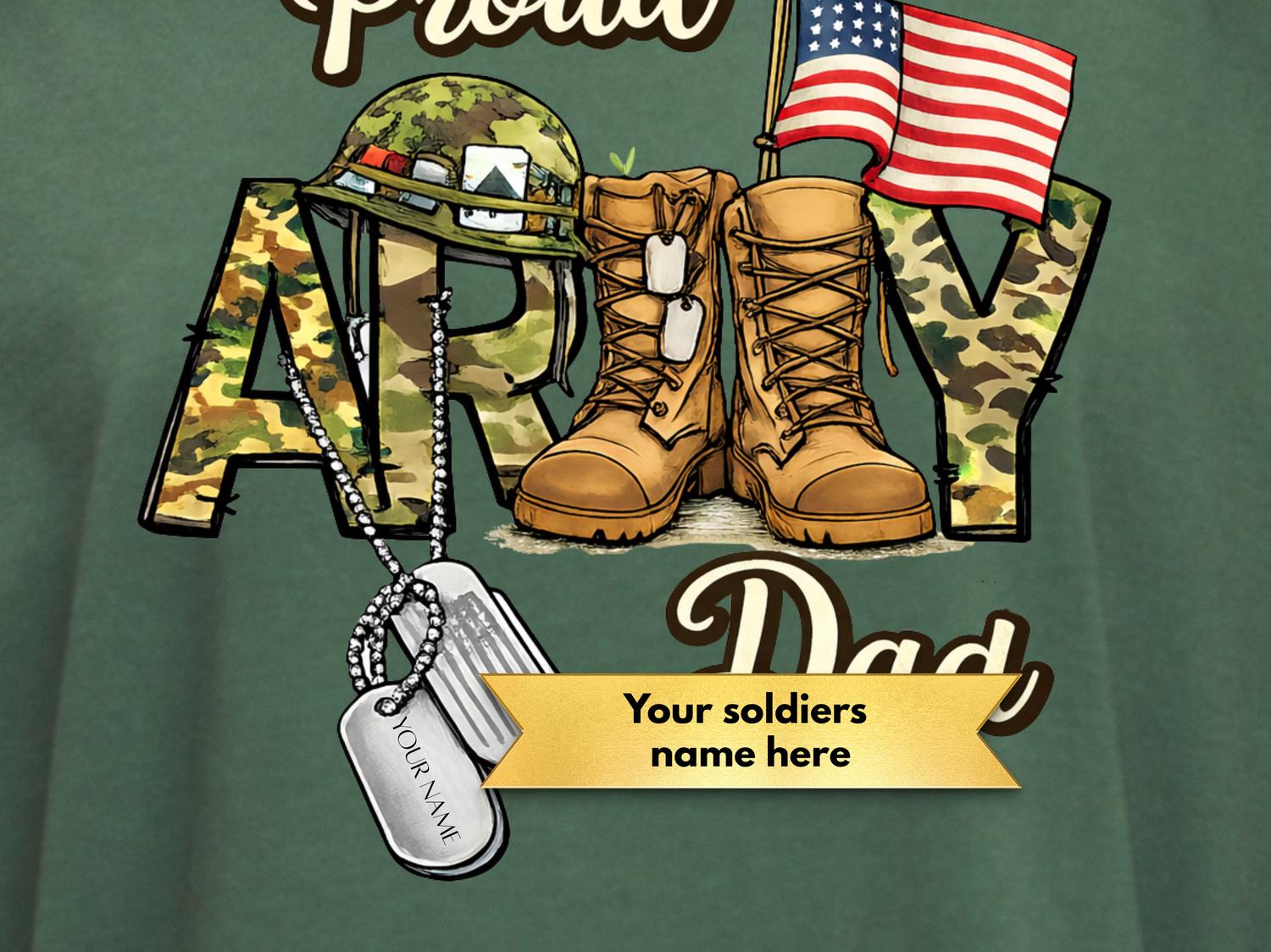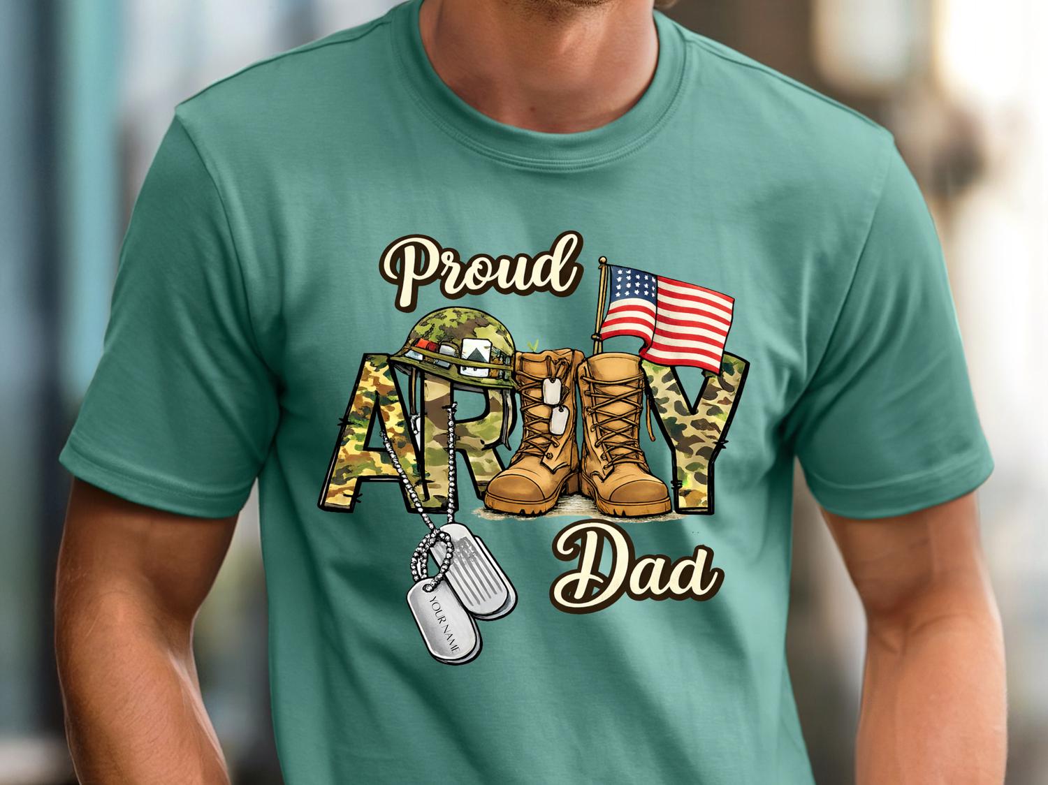 This Proud Army Dad Shirt Personalized design is a great way for fathers to show pride in their soldier. The bold patriotic design proudly reads “Proud Army Dad”, making it a meaningful shirt for military families. It’s a thoughtful gift for dads with a son or daughter serving in the Army, perfect for Father’s Day, the 4th of July, military homecomings, or deployment support. The classic patriotic style makes this comfortable tee easy to wear to family gatherings, military events, or everyday outings. A proud Army Dad gift that celebrates strength, service, and family support. 👕🇺🇸