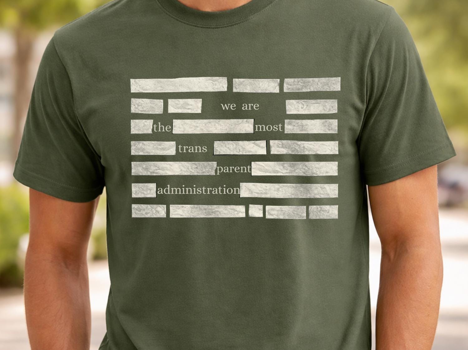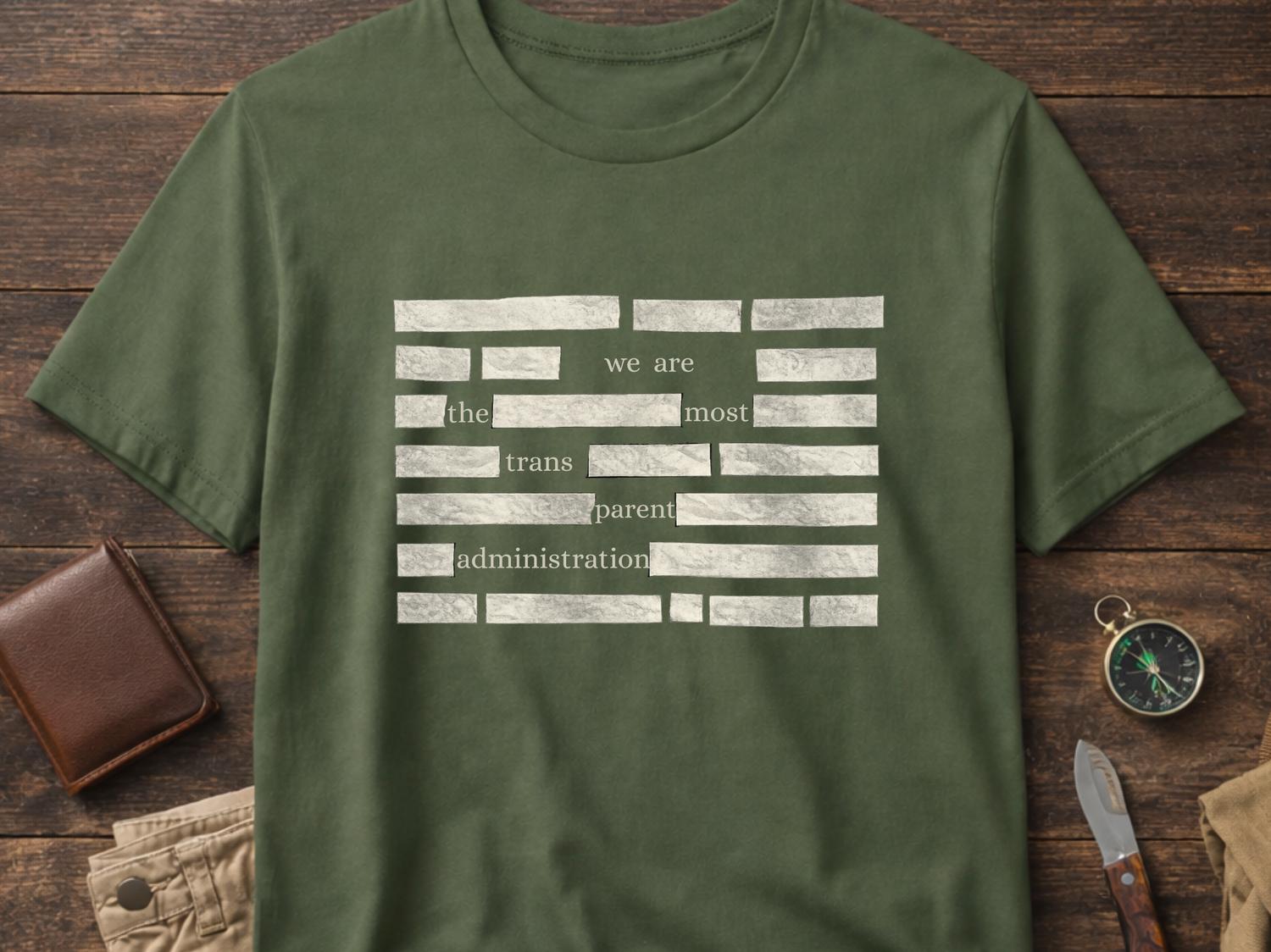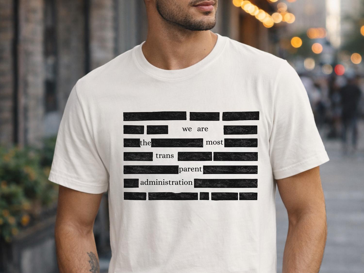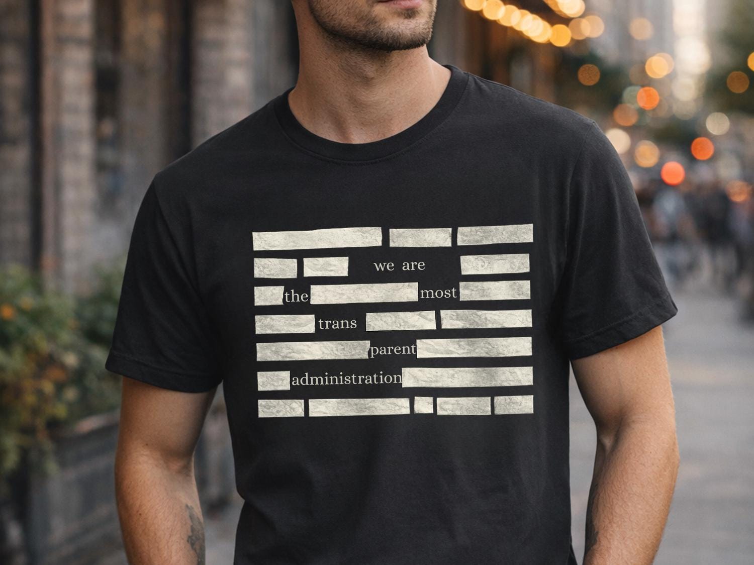 Political protest We Are The Most Transparent Administration Shirt censored t-shirt redacted text satire government satire shirt men women