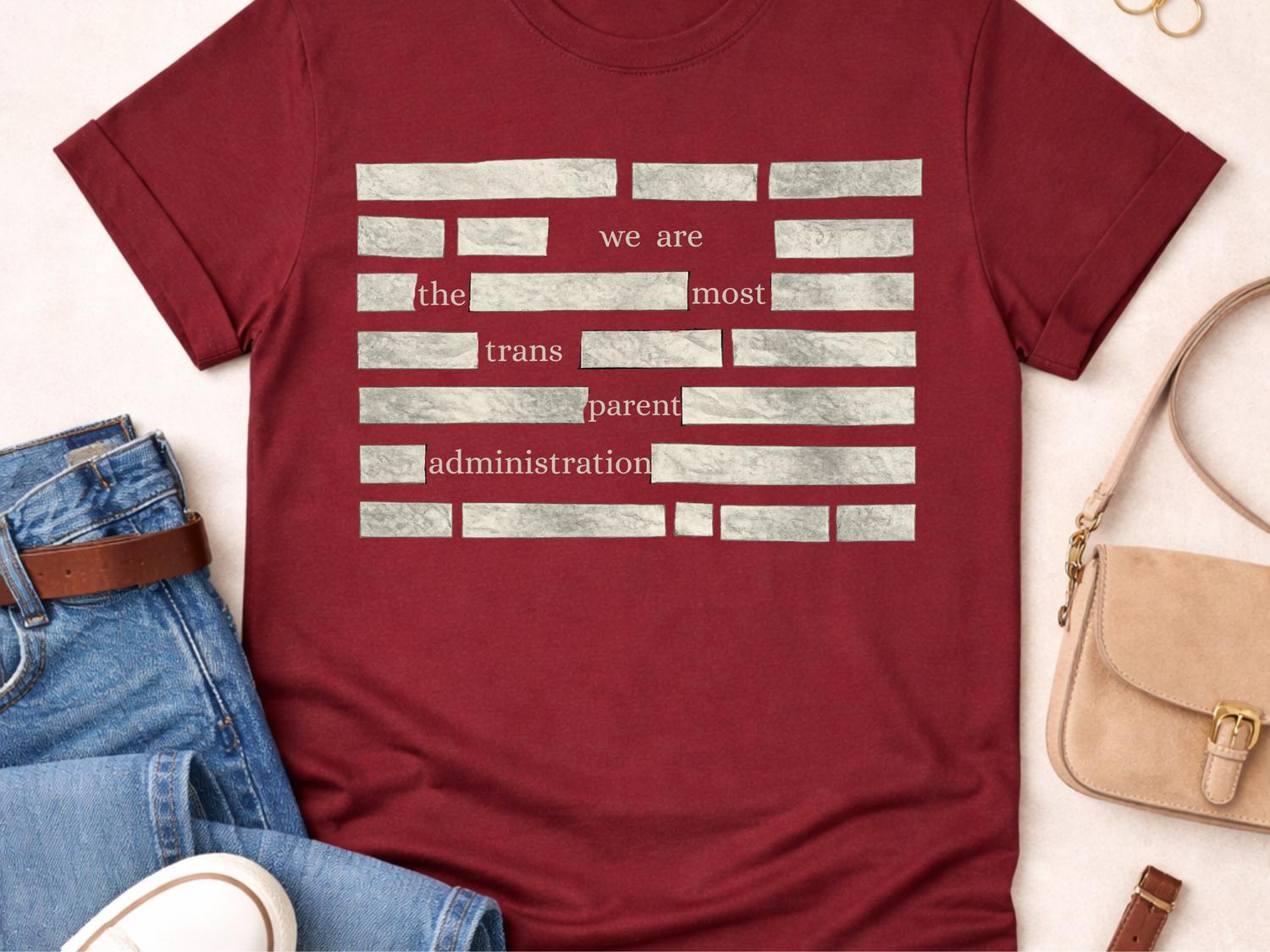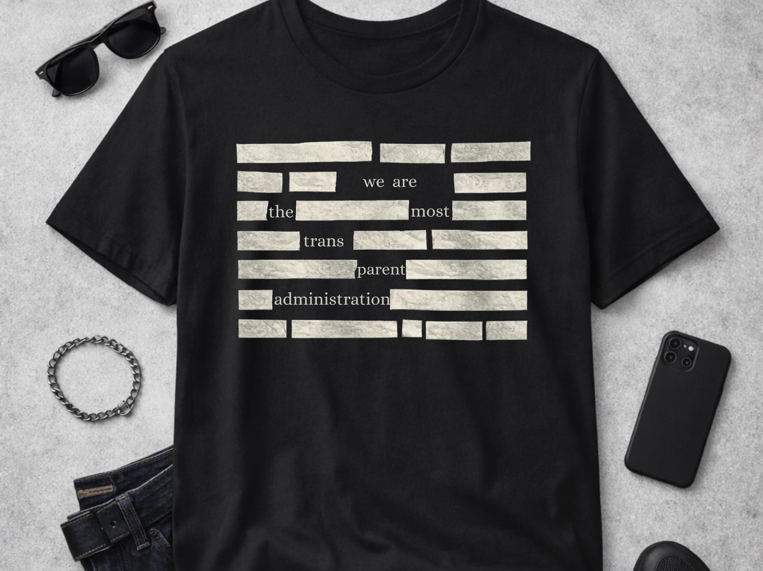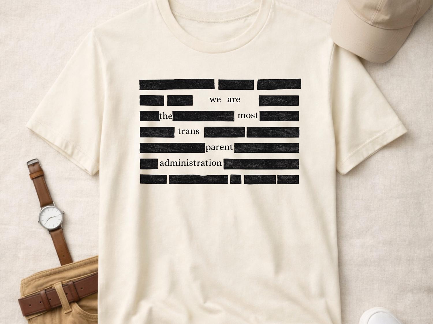 This political protest t-shirt features the phrase “we are the most transparent administration” in a bold redacted text design that adds sharp political satire. It’s a censored-style political humor shirt for men or women who enjoy protest art, free speech themes, and sarcastic commentary about government transparency. The redaction graphic style gives the design a bold, modern protest aesthetic that stands out at rallies, protests, or everyday casual wear. A great gift for activists, politically engaged friends, or anyone who appreciates edgy satire and statement apparel. 👕✨