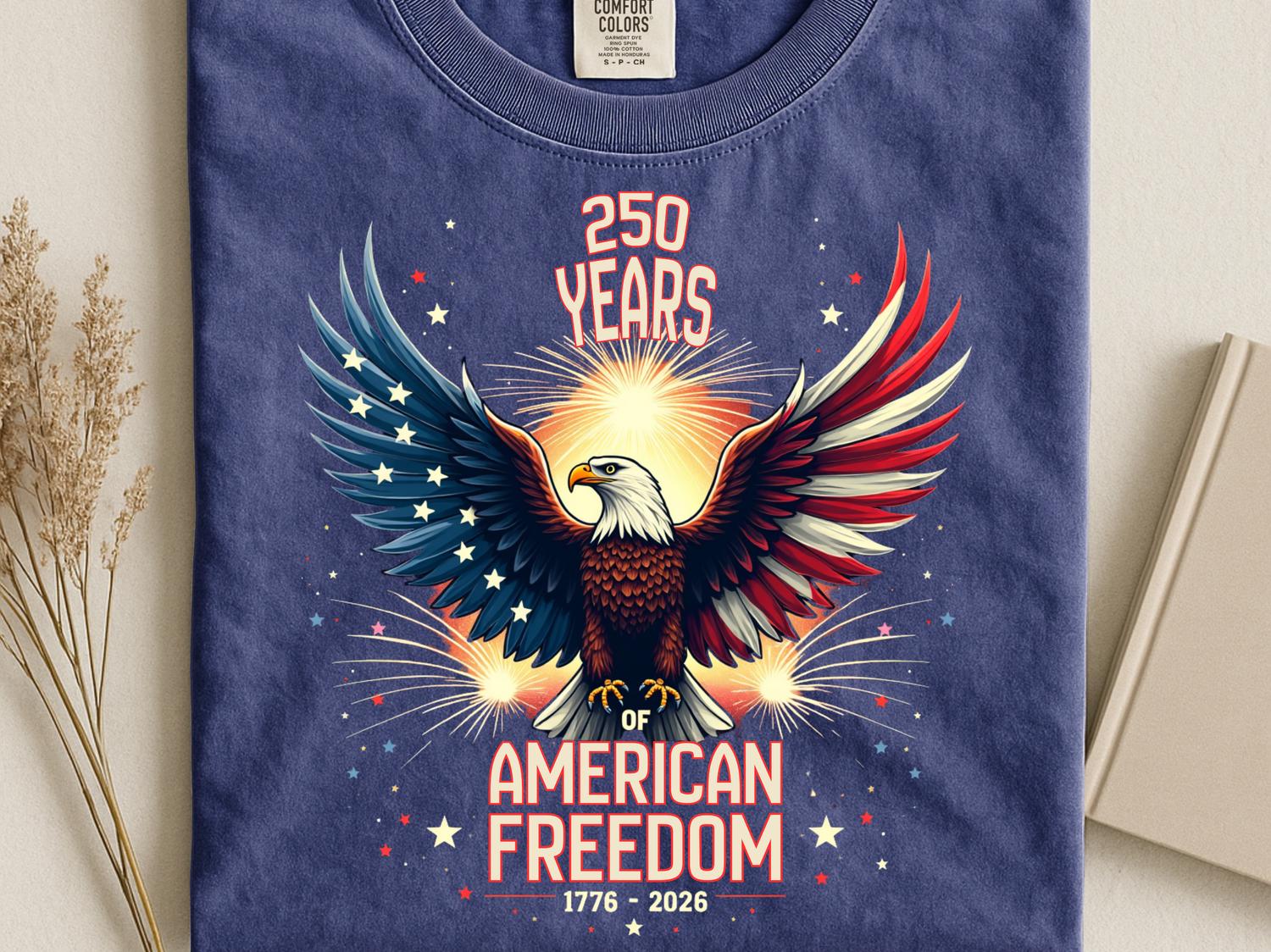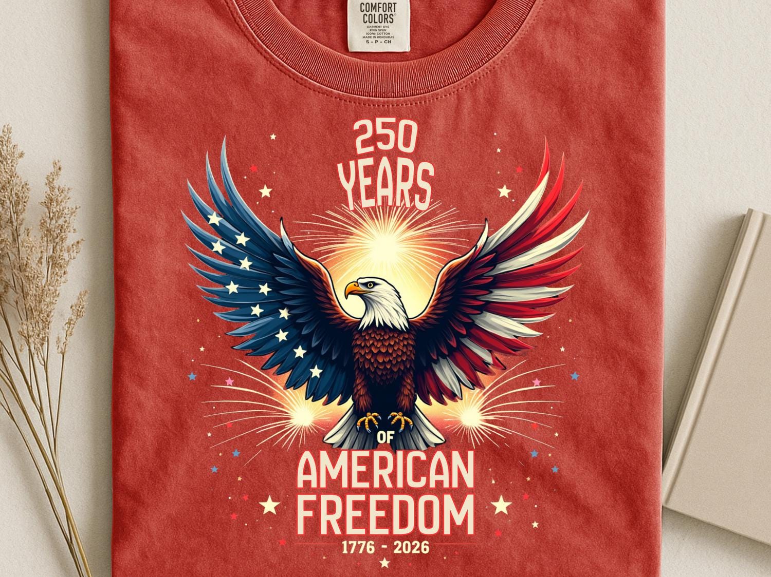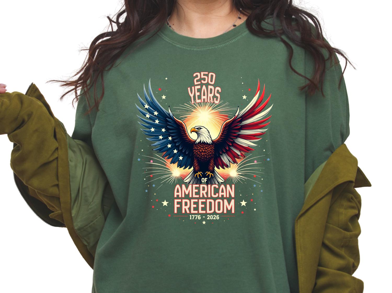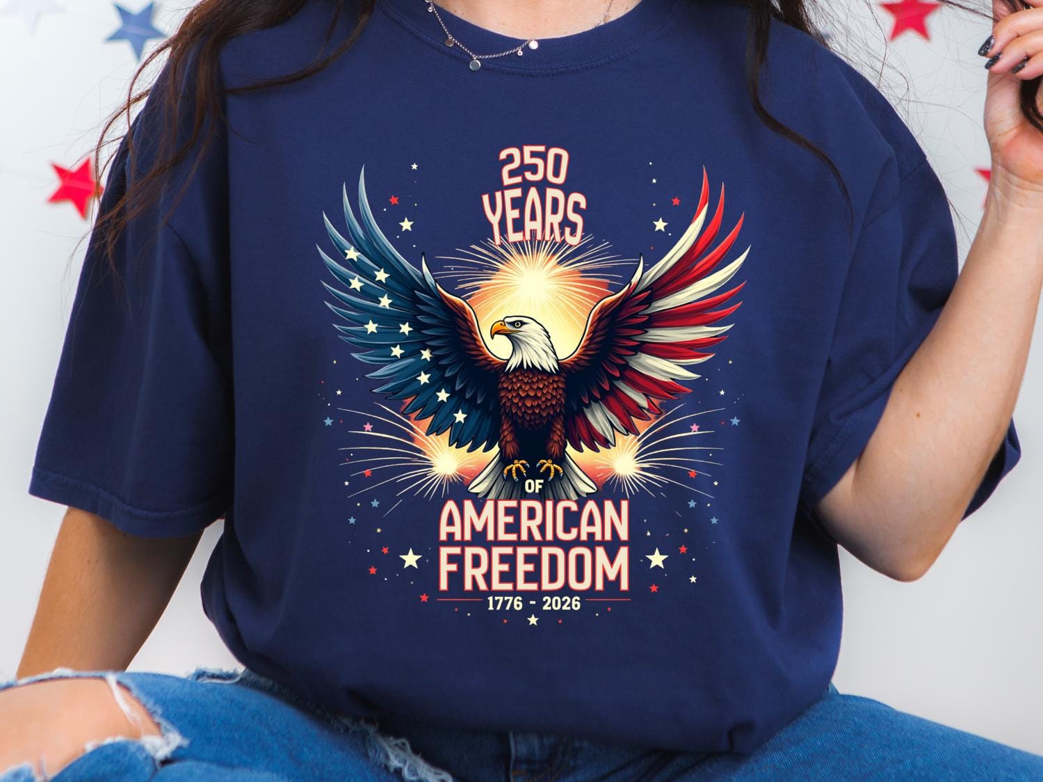 Celebrate America’s historic milestone with this 250 Years of American Freedom shirt, honoring the 250th anniversary of the United States in bold patriotic style. The design features the phrase “250 Years of American Freedom”, making it a meaningful choice for Fourth of July celebrations and America’s 250th birthday in 2026. Perfect for men and women who love patriotic apparel, military pride, and showing their American spirit during Independence Day events. Comfortable Comfort Colors everyday wear that pairs easily with your favorite casual outfits while celebrating freedom and history. 🎆👕⭐