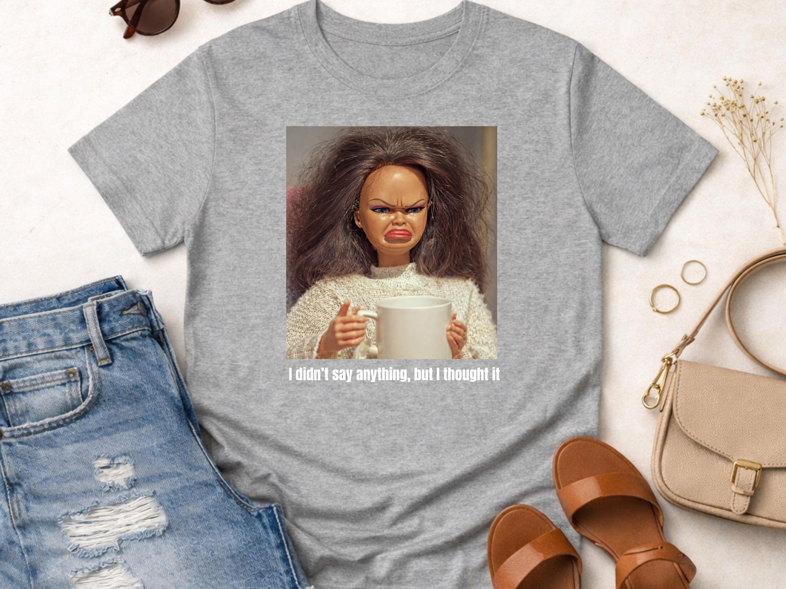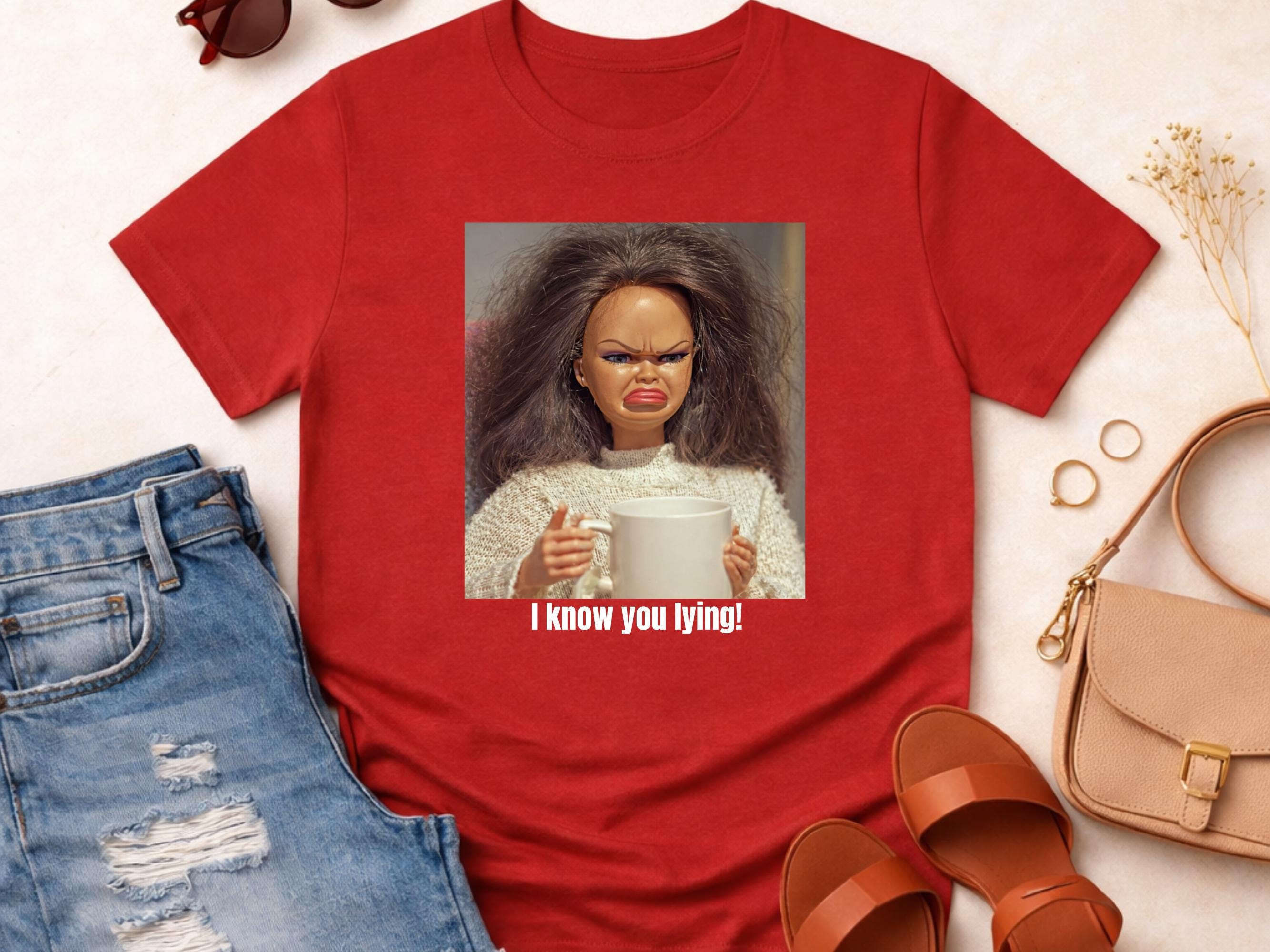 Embrace quirky fashion and make a statement with this eye-catching, humorous doll face meme tee — a perfect gift for friends or a fun addition to your everyday wardrobe!