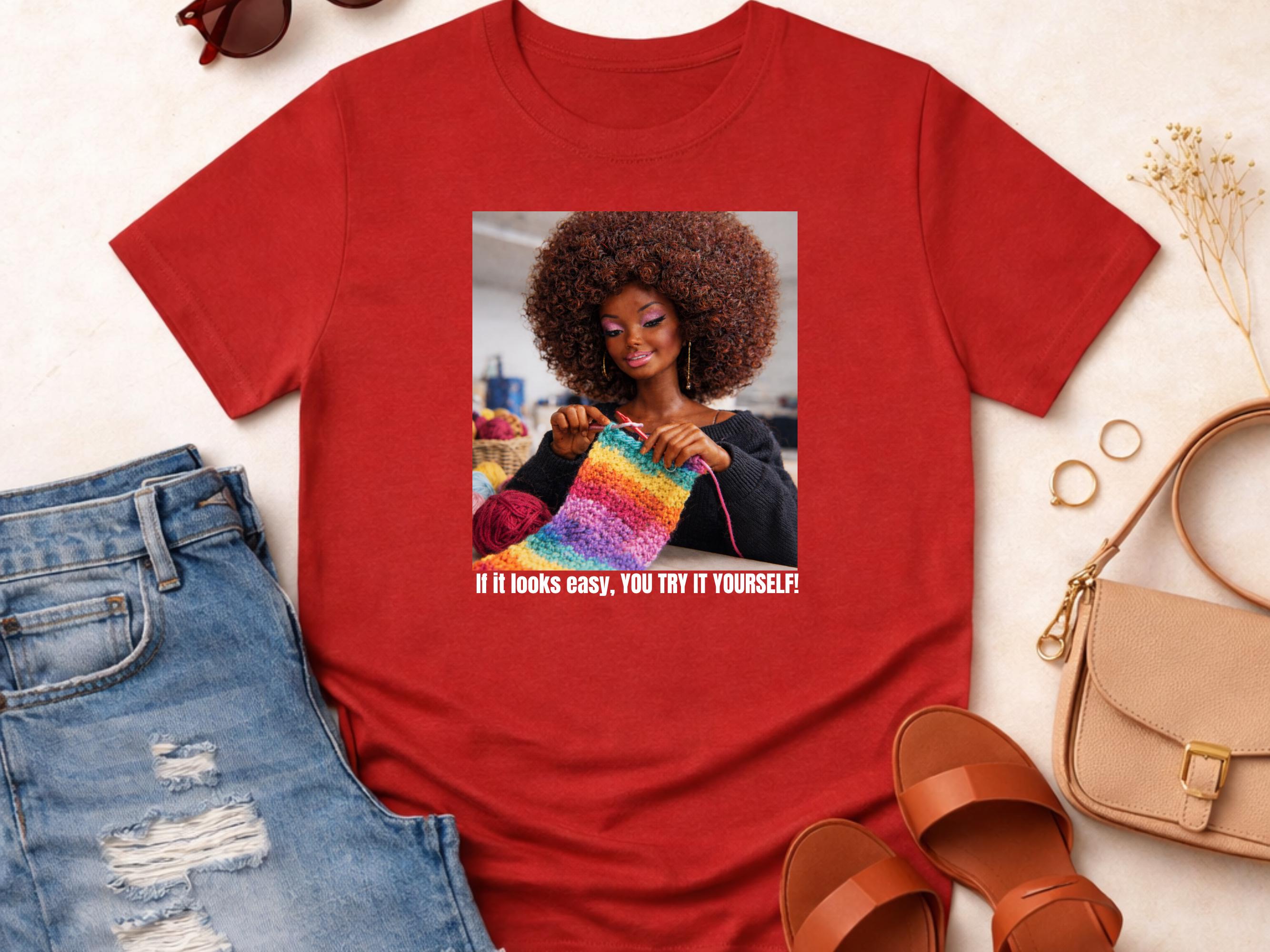 This funny crochet meme shirt is perfect for anyone who loves crocheting, yarn, and creative humor. Designed for crocheters and yarn lovers, it’s a personalized tee where you can choose your own meme-style saying for a unique touch. ✨
