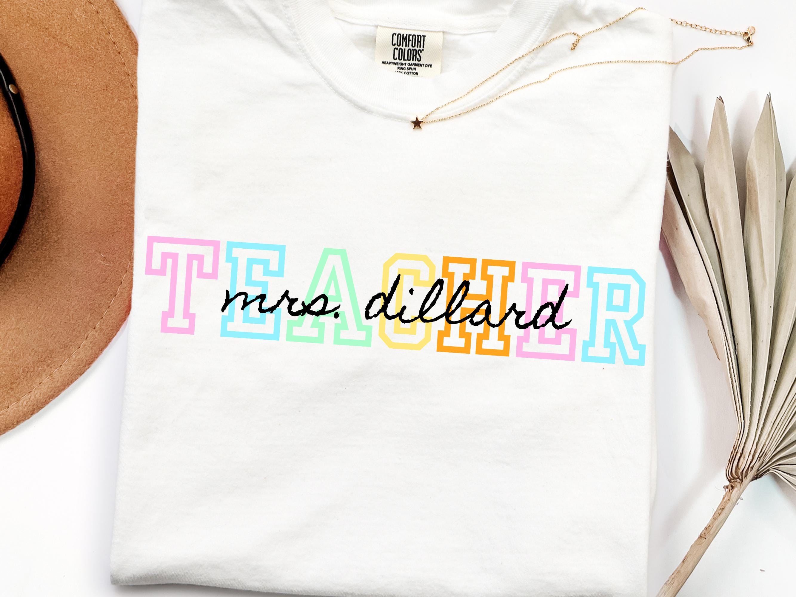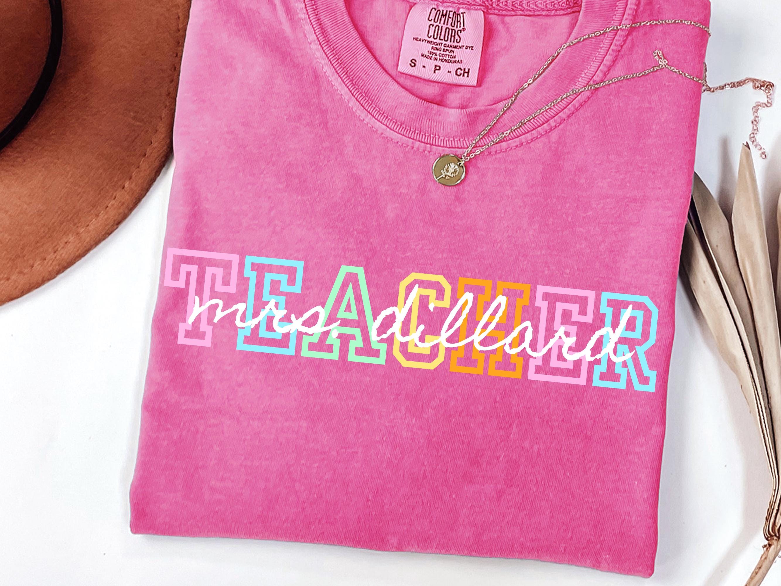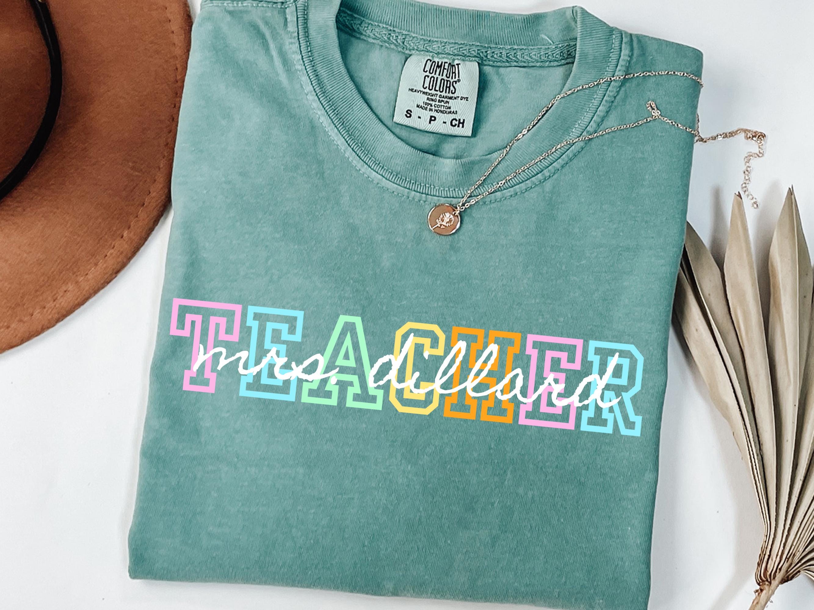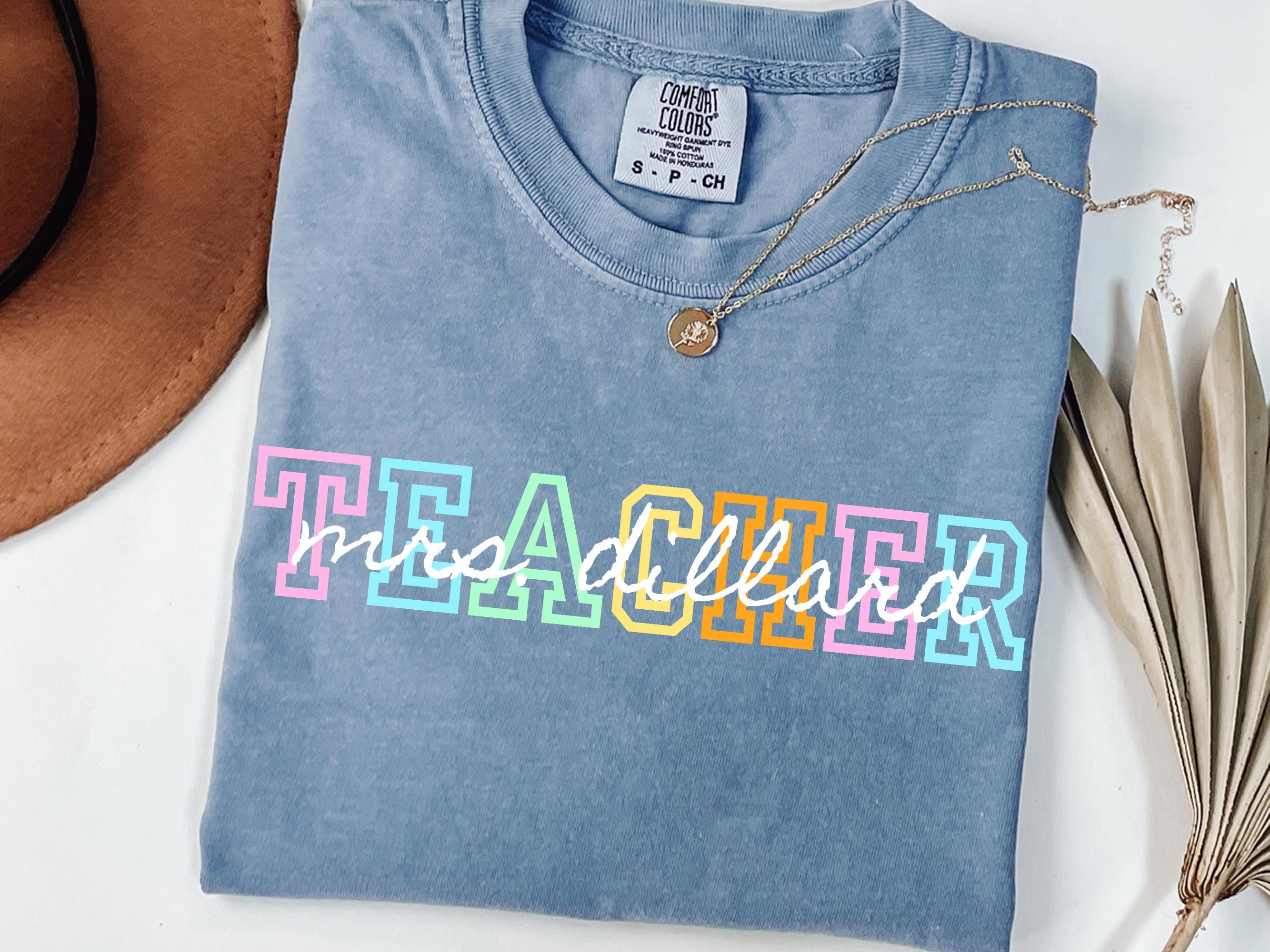 Comfort Colors® Teacher Tshirt, Teacher Shirts, Teacher Team Shirts, Personalized School Tshirt, Teacher Gift, Customized Name Teacher Shirt