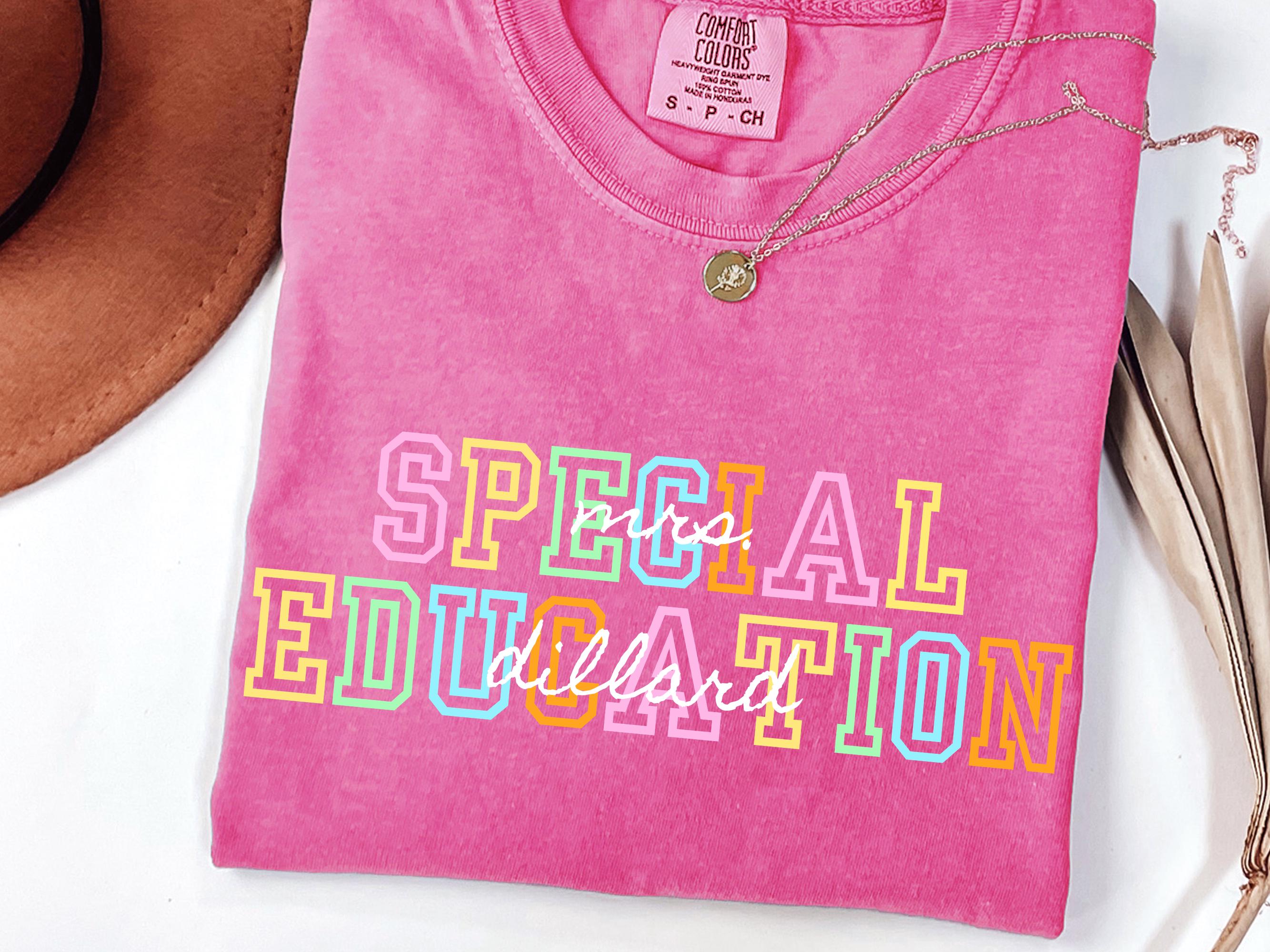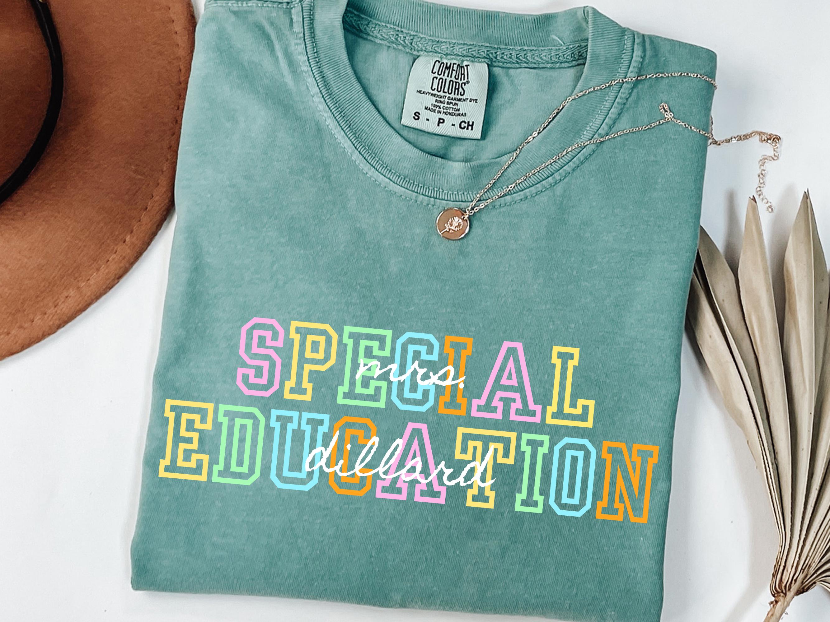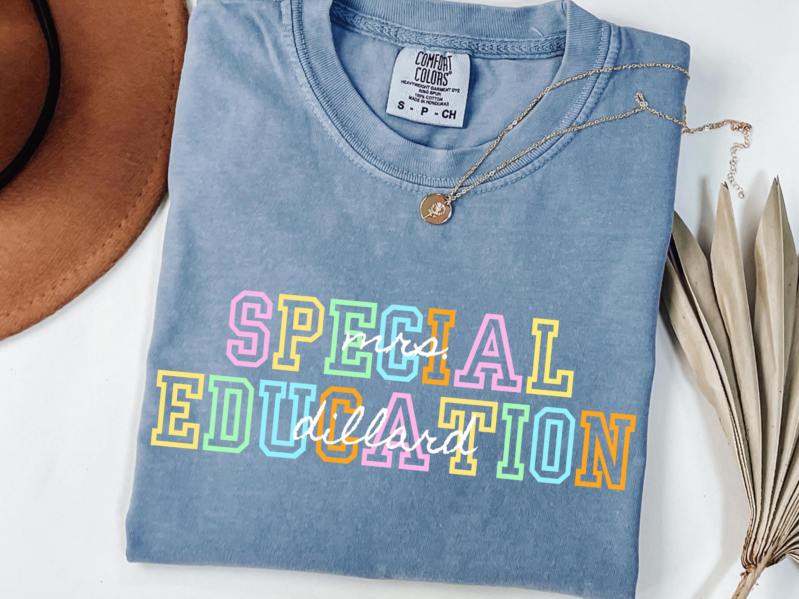 Personalized Comfort Colors Special Education Teacher Shirt SPED Teacher Shirt Special Ed TShirt Elementary School Middle School High School