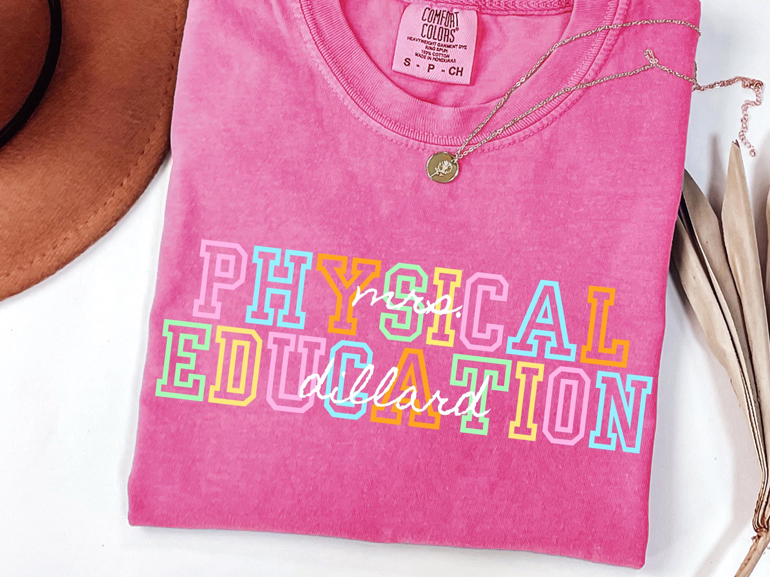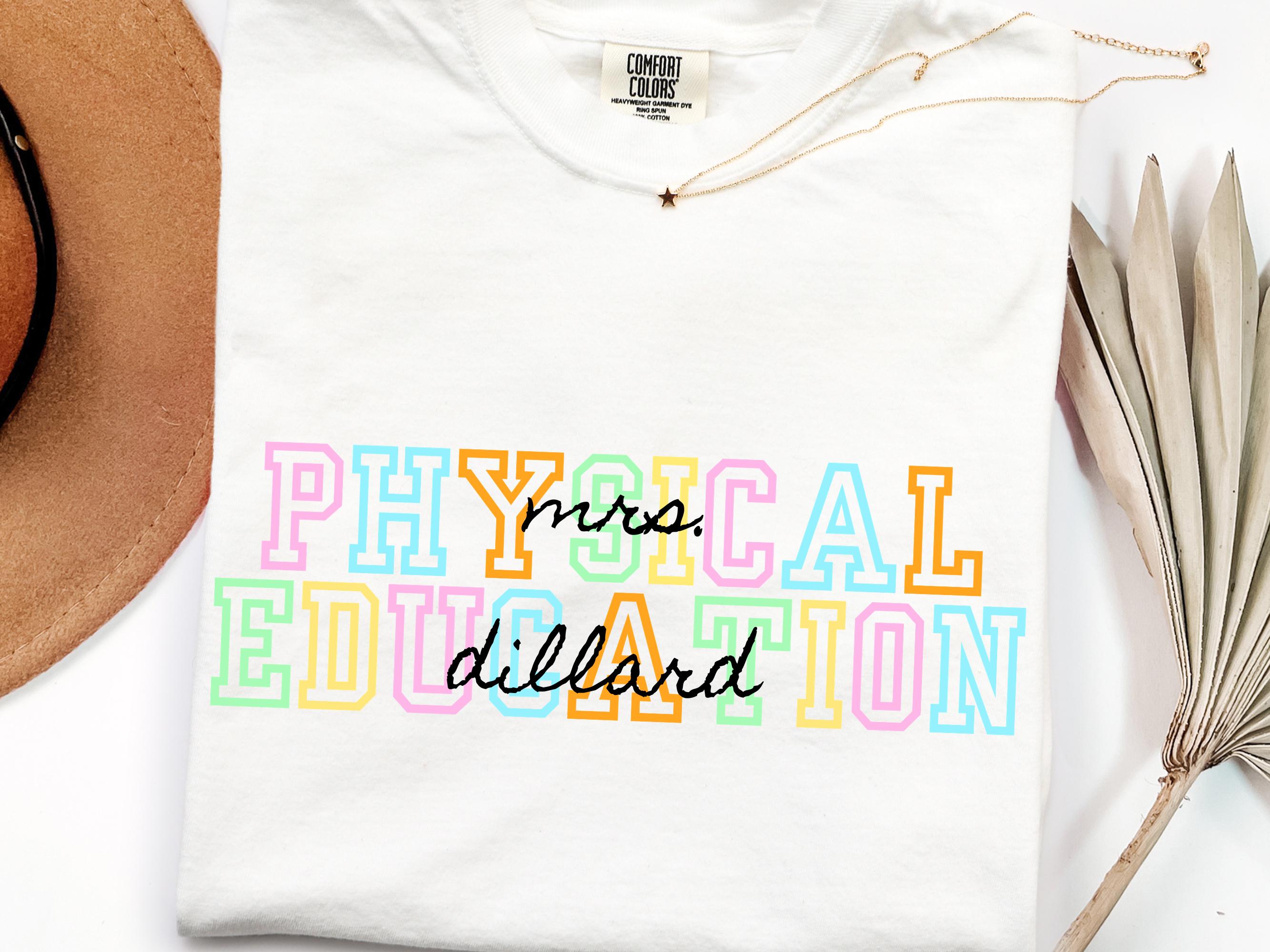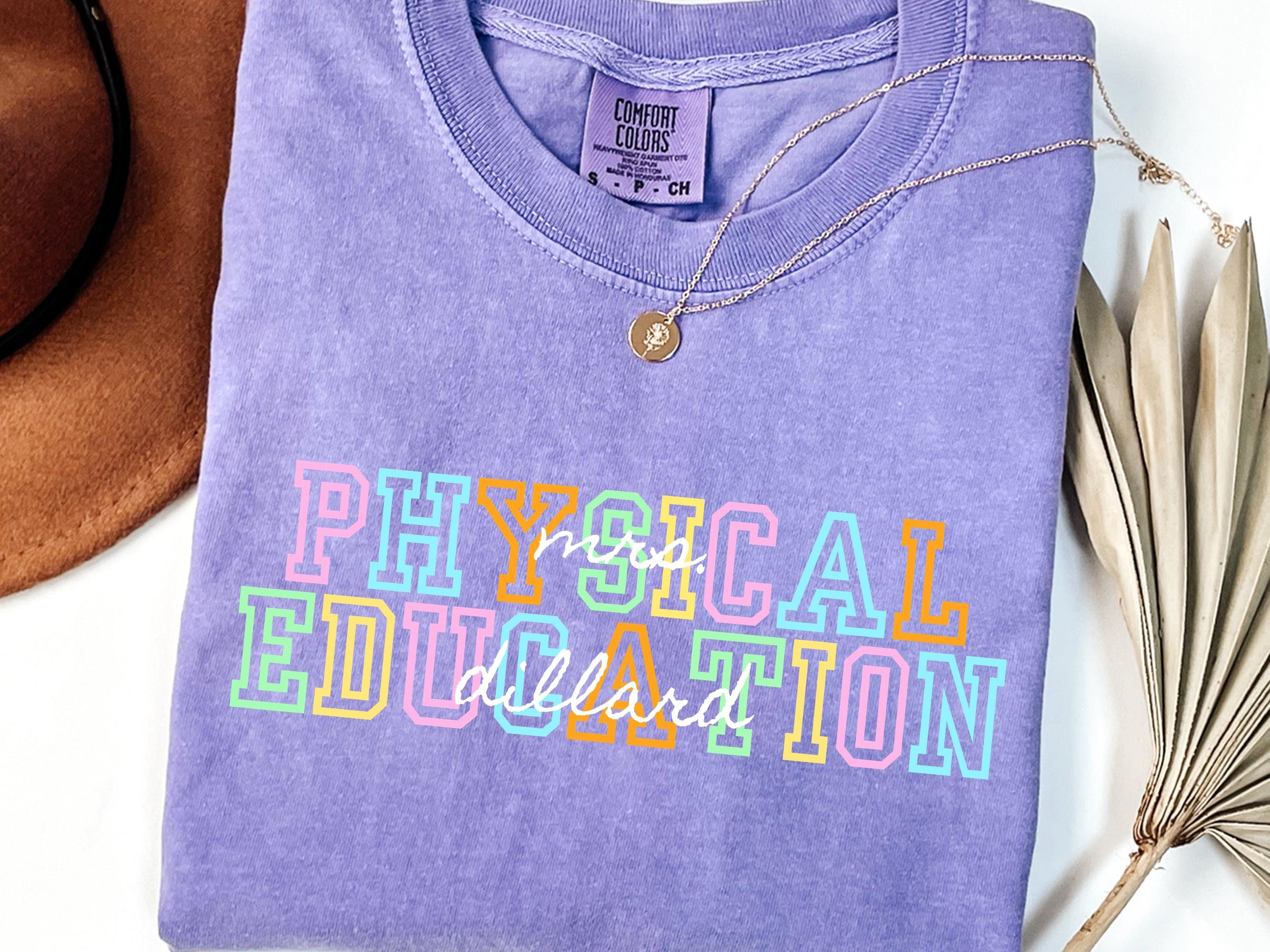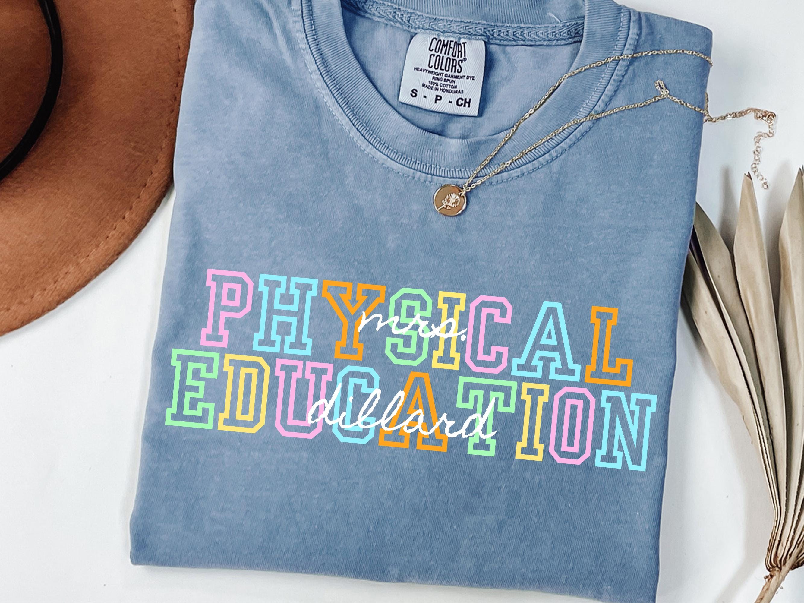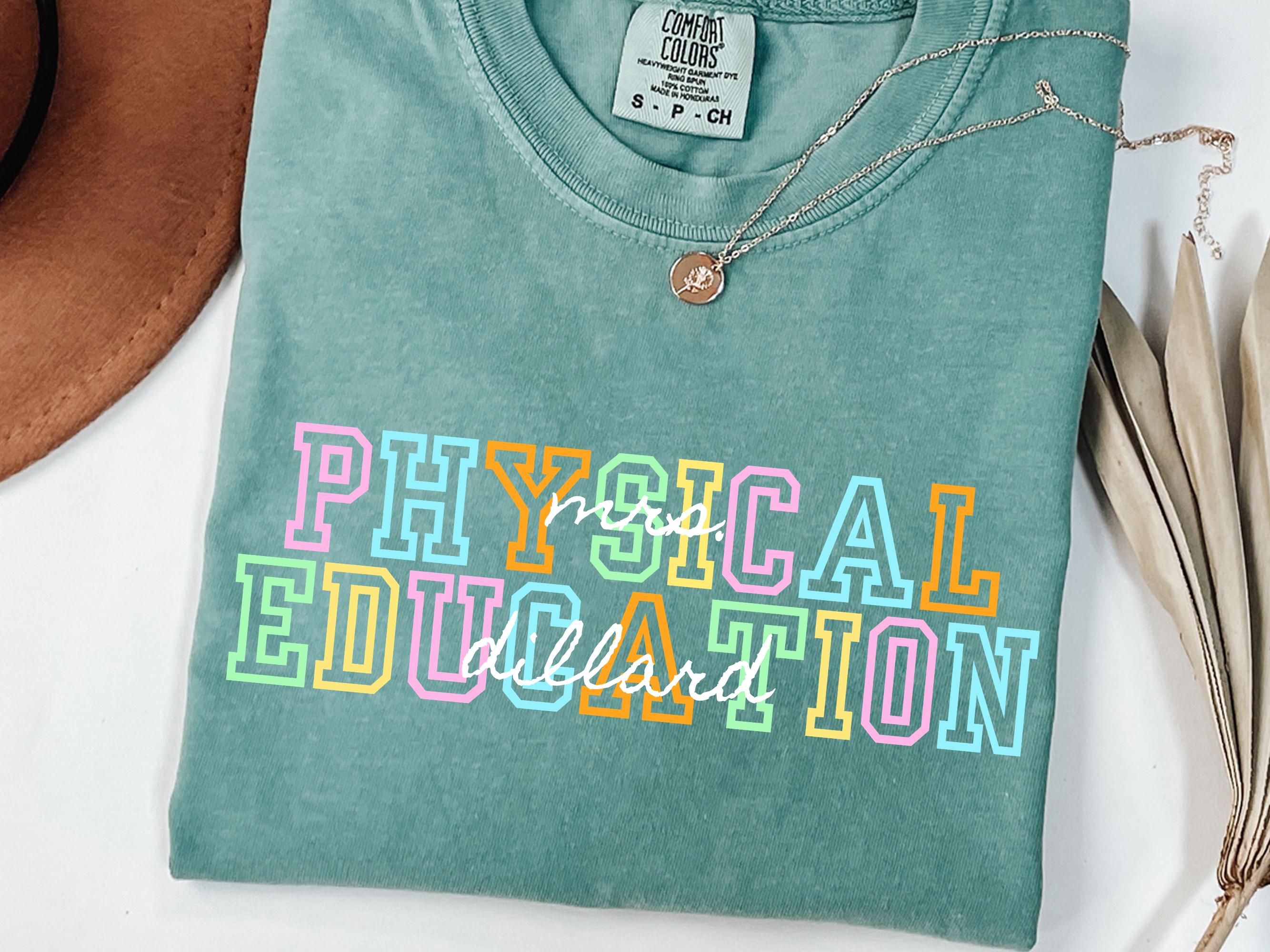 Custom Comfort Colors Physical Education Shirt PE Teacher Shirt School Gym teacher TShirt Elementary School Middle School High School