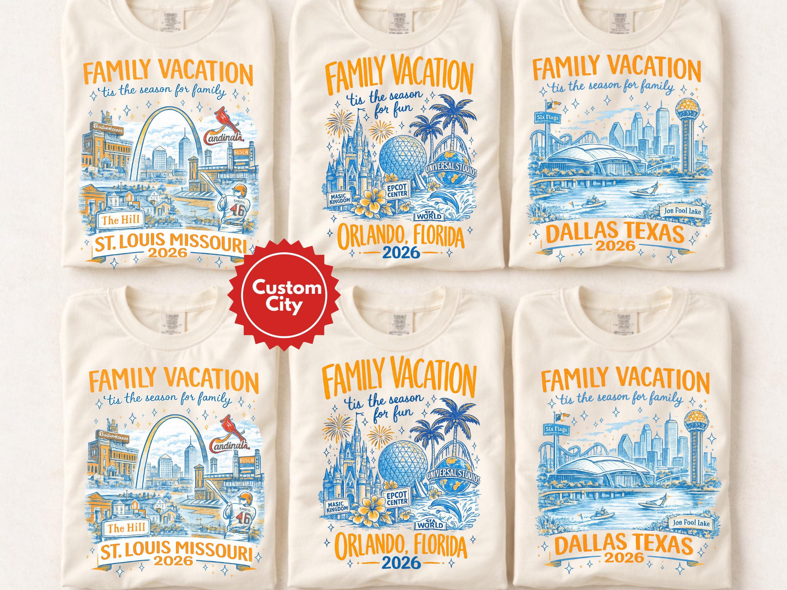 Celebrate your next getaway with this Family Vacation 2026 custom shirt, perfect for matching family outfits on trips and reunions. 👕 Designed with a bold retro orange and blue graphic style, it brings fun vacation vibes to your group photos. Personalize it for your destination, making it a great choice for family trips, family reunions, or group travel memories. ✨ Comfortable for everyday wear, this shirt is ideal for families, kids, and adults heading on vacation together. 🎁 A fun and memorable keepsake for your 2026 family adventure.
