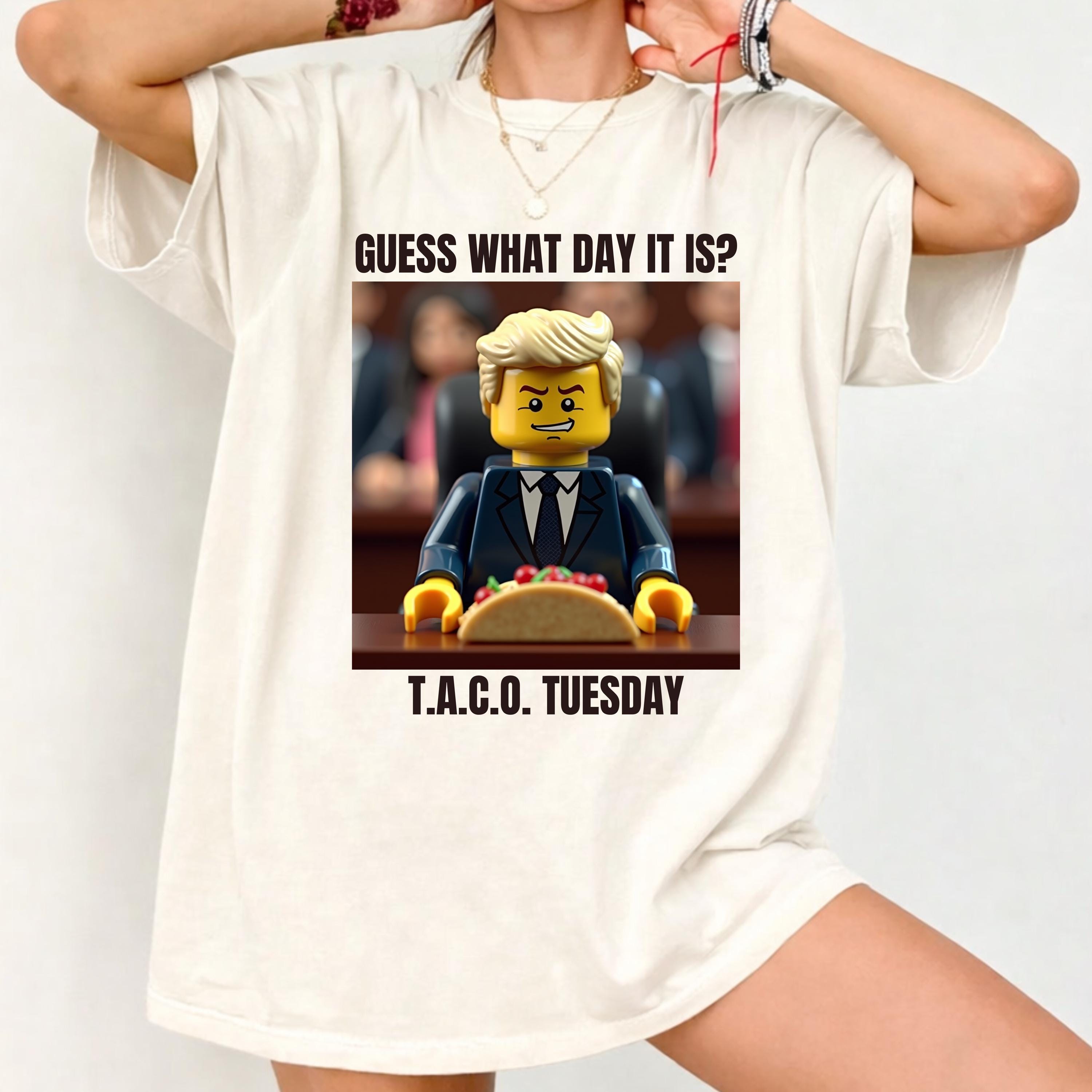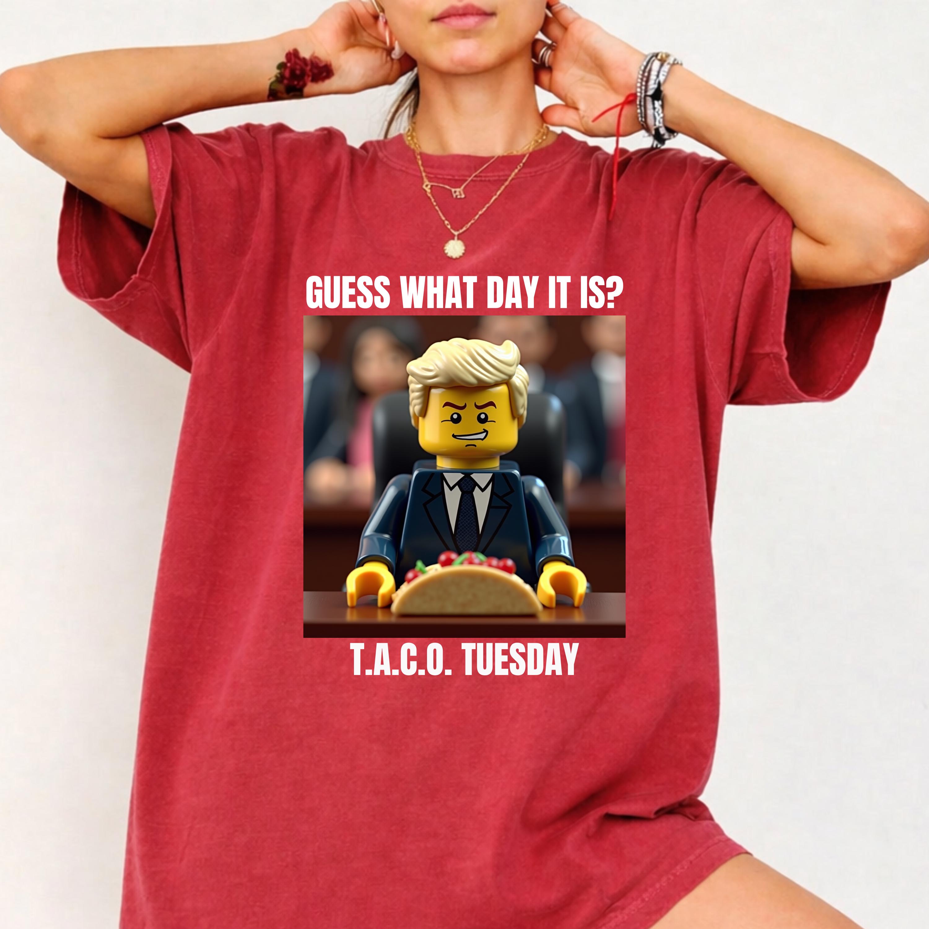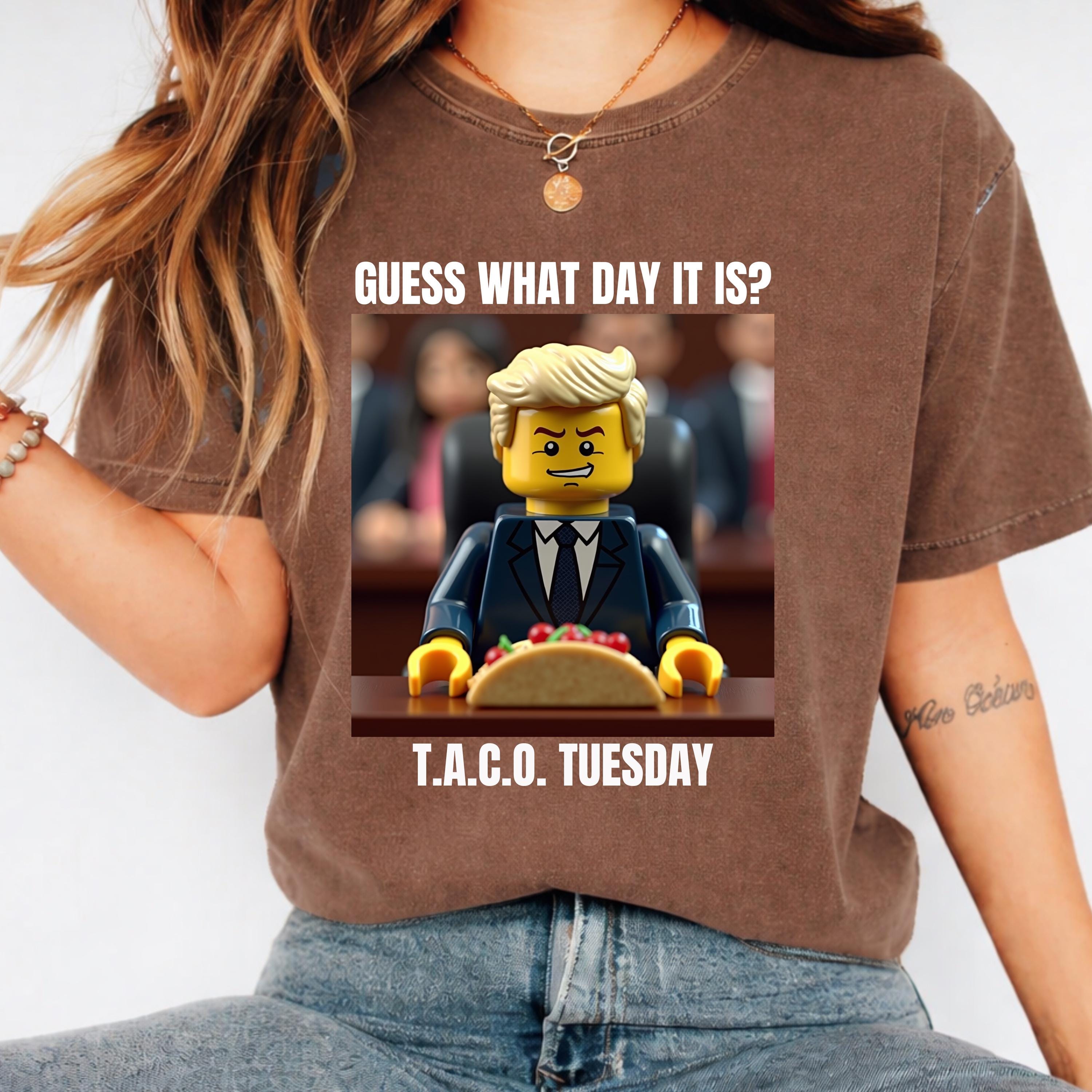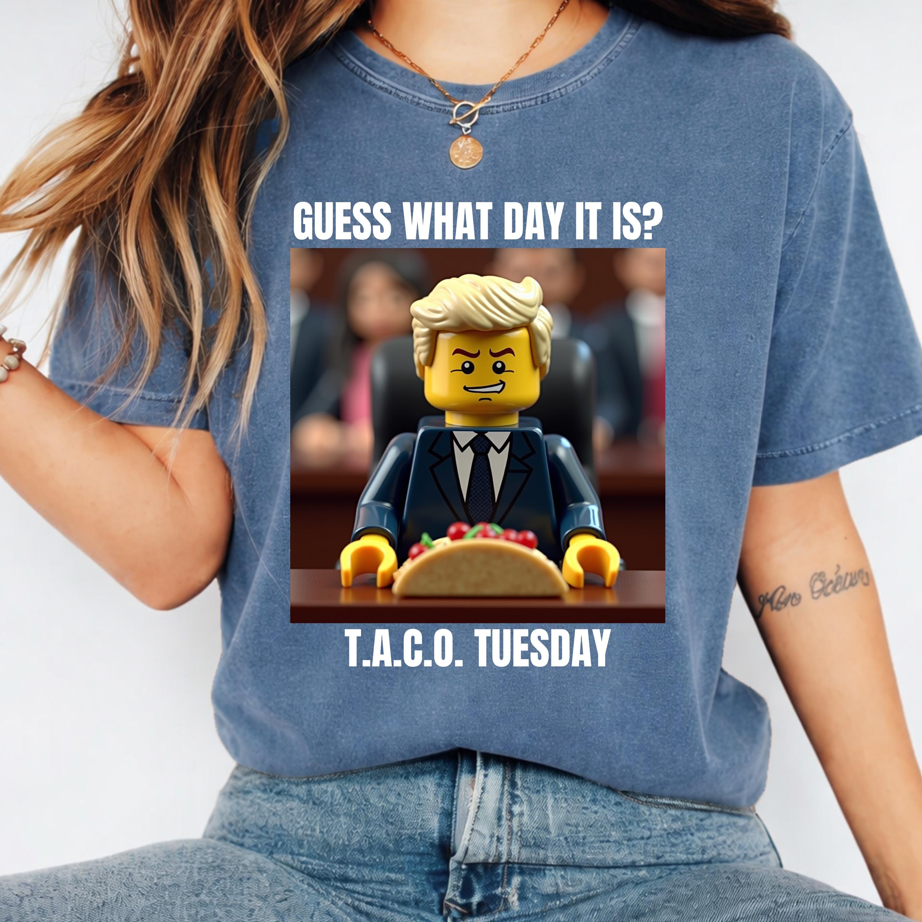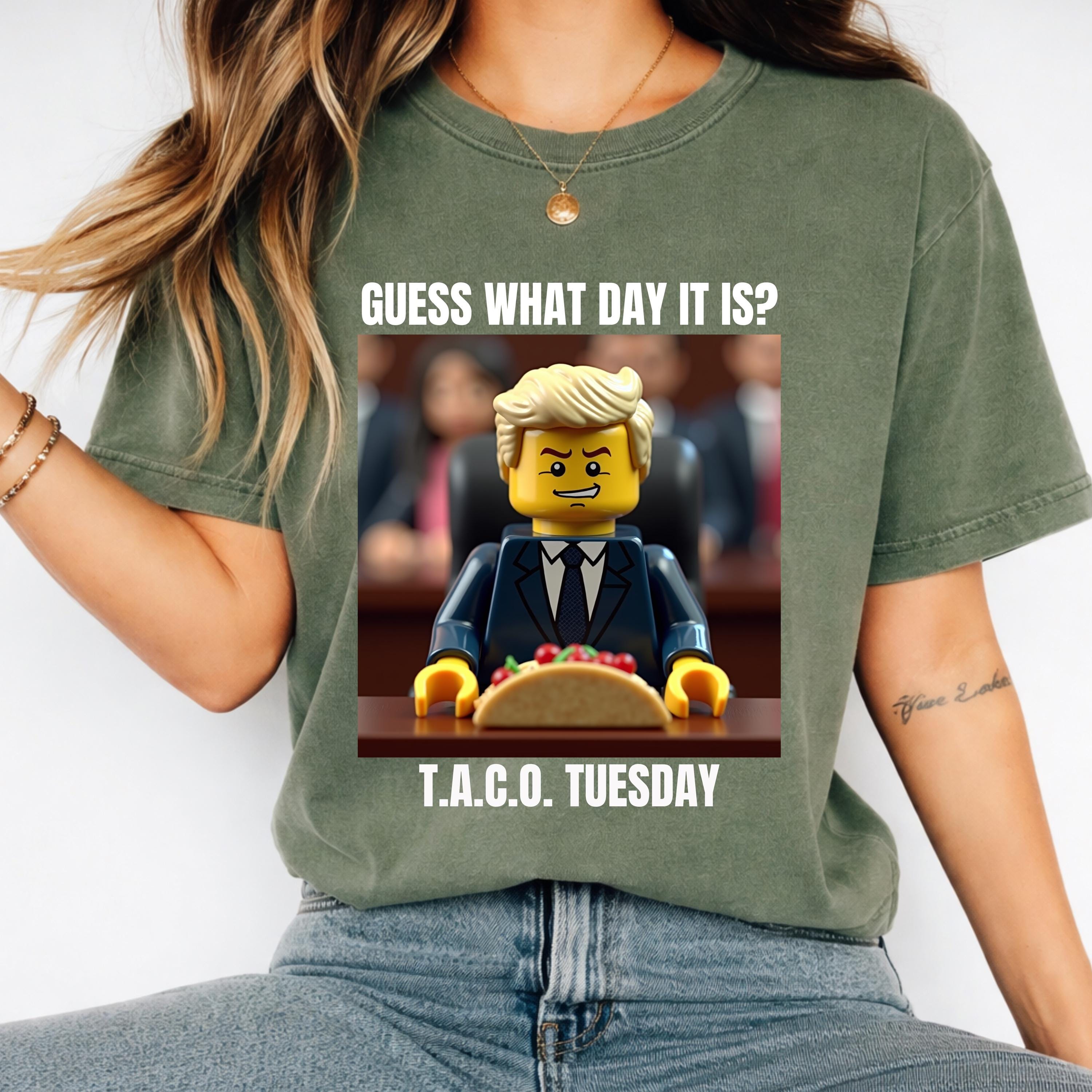 Available in a relaxed fit from size S to 4XL (please consult the Comfort Colors 1717 size chart for perfect sizing), this social justice tee is versatile and comfortable for everyday activism or casual outings. Featuring a unique Lego Trump graphic with the caption "Guess What Day It Is? T.A.C.O. Tuesday," it adds a humorous touch to your protest wardrobe.