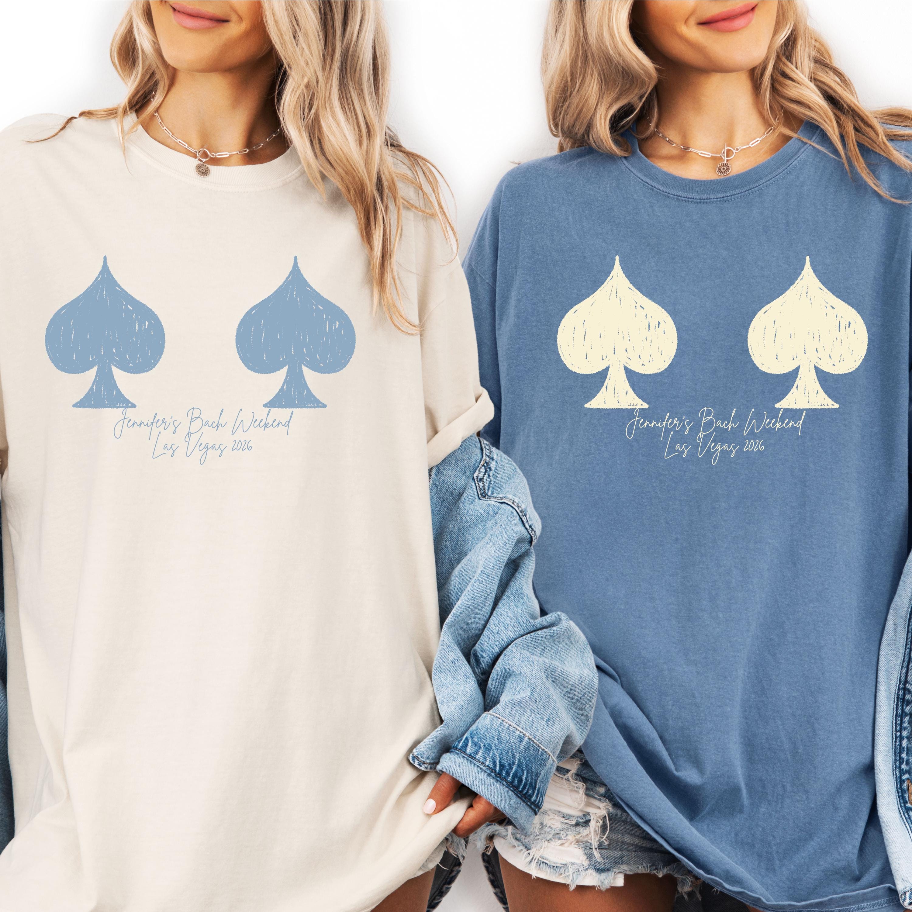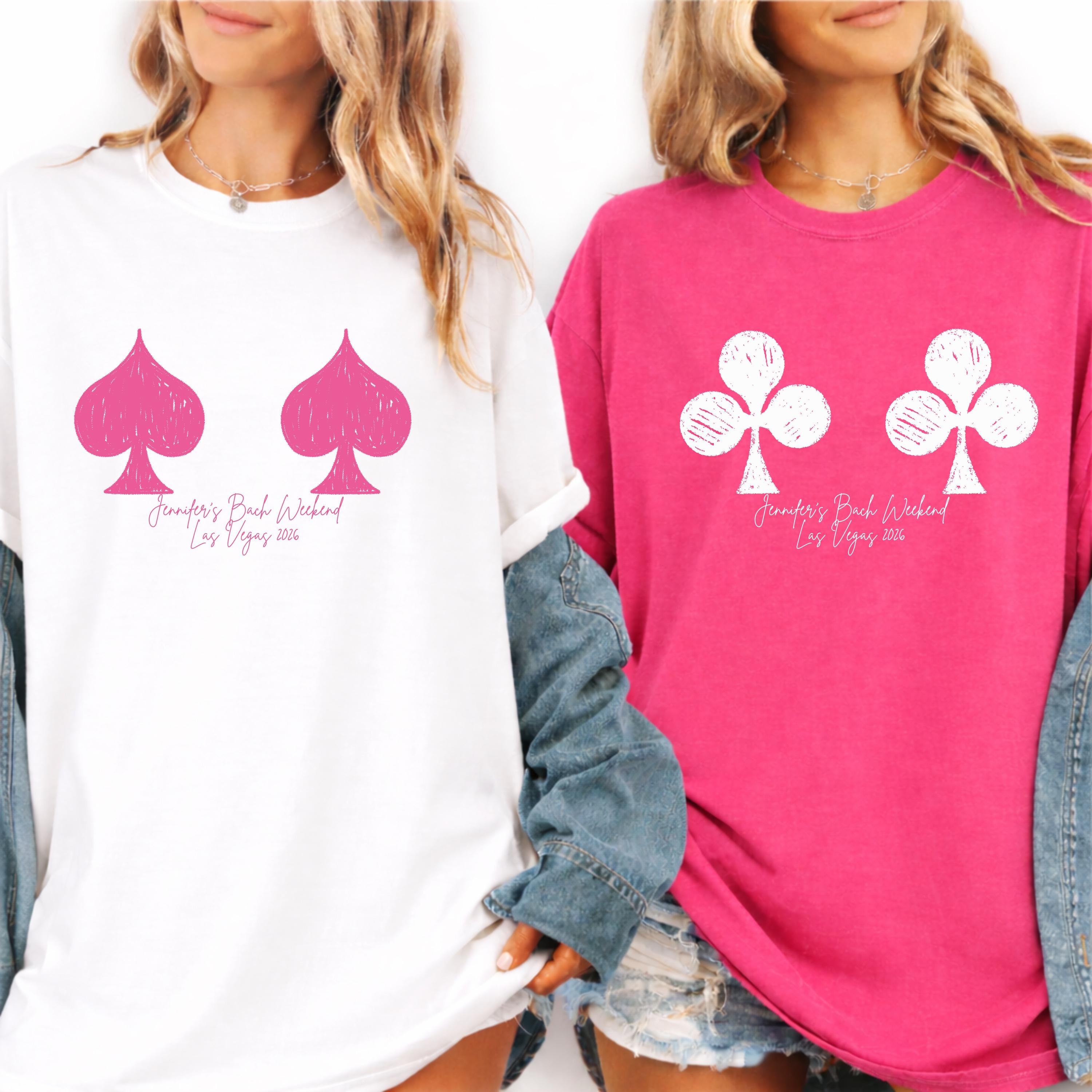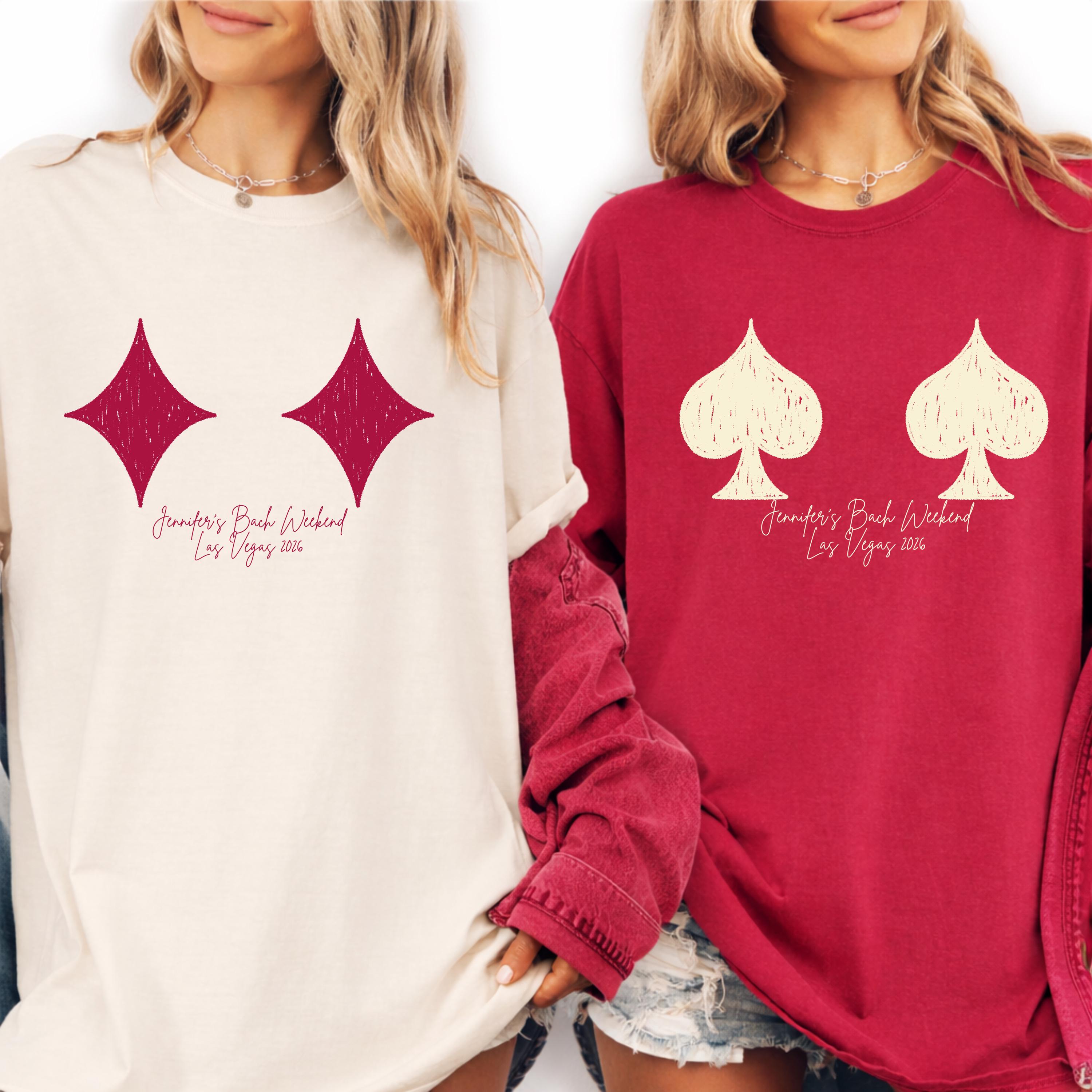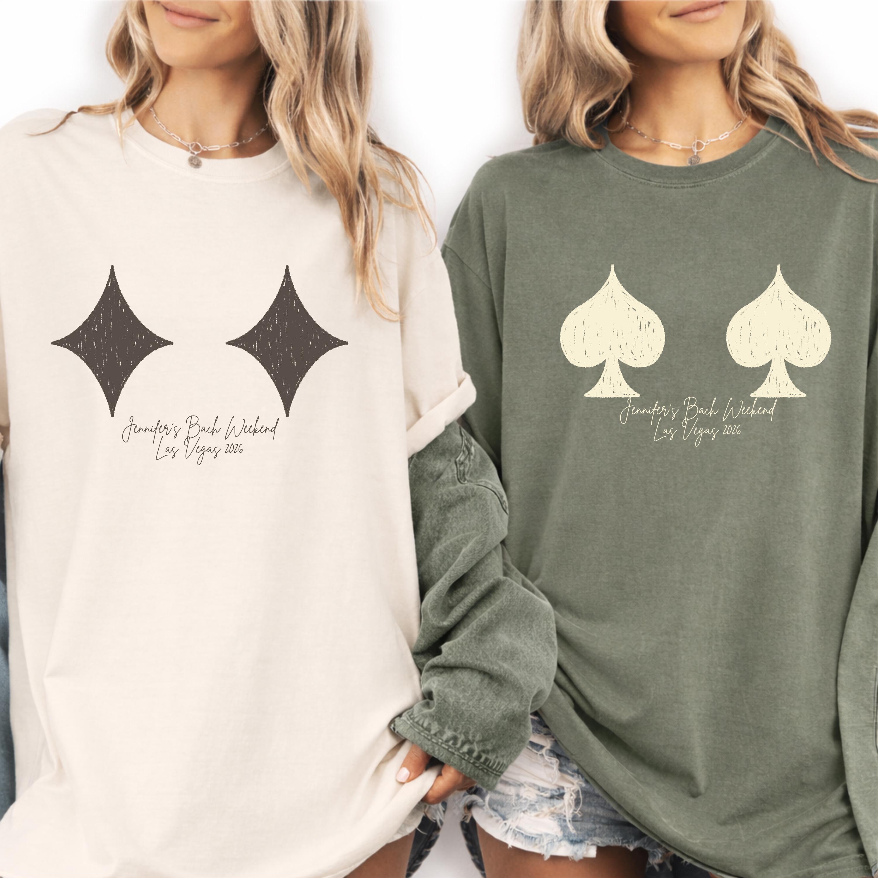 Custom Vegas bachelorette party shirts designed for your bride squad and unforgettable girls trip ✨ This personalized bachelorette shirt is perfect for a Las Vegas bach weekend, casino theme party, or gambling night celebration 🎰 Featuring a bold card suit design with a fun, minimal style, each tee can be customized with names, location, and date to match your event. Soft and comfortable for all-day wear, it’s the perfect outfit for going out, photos, and matching group moments 👕 A must-have keepsake for bridesmaids, friends, and the bride celebrating in style 🎁