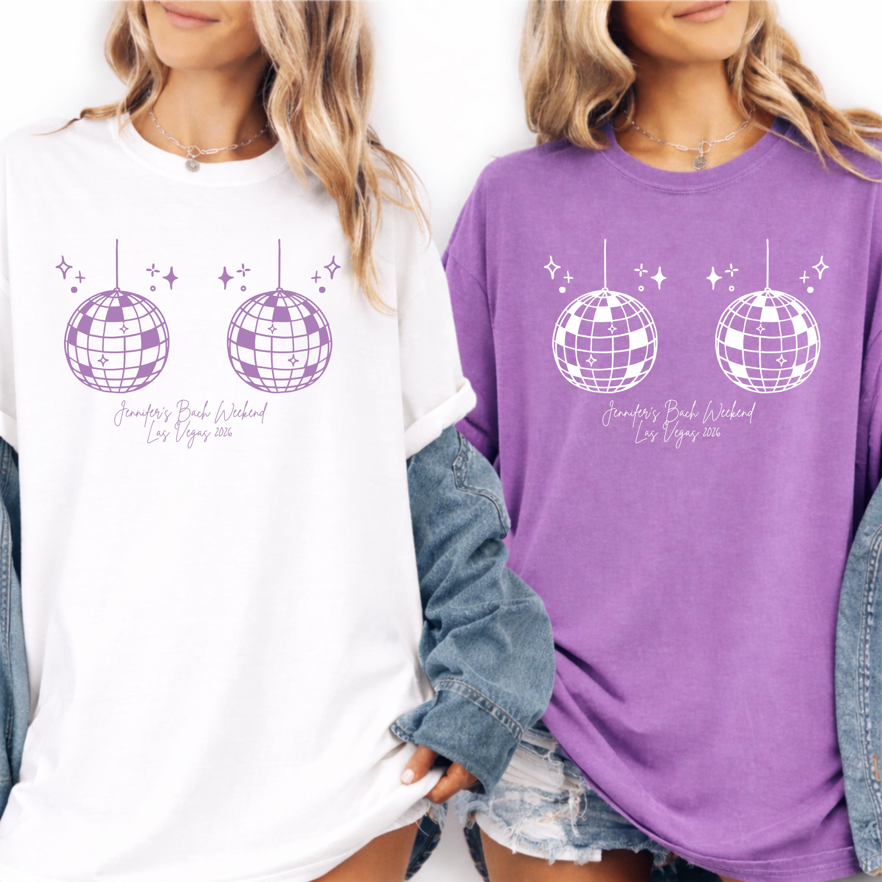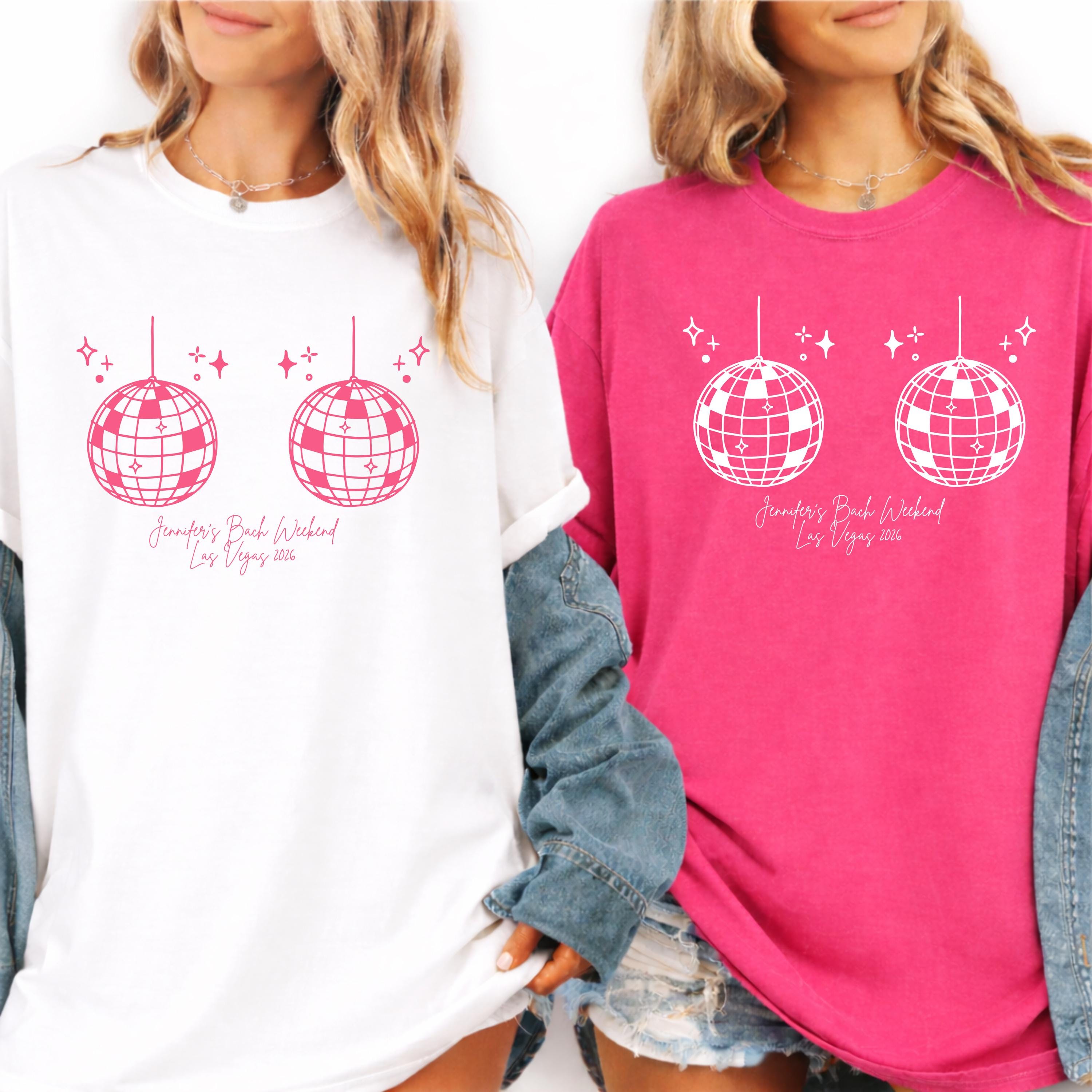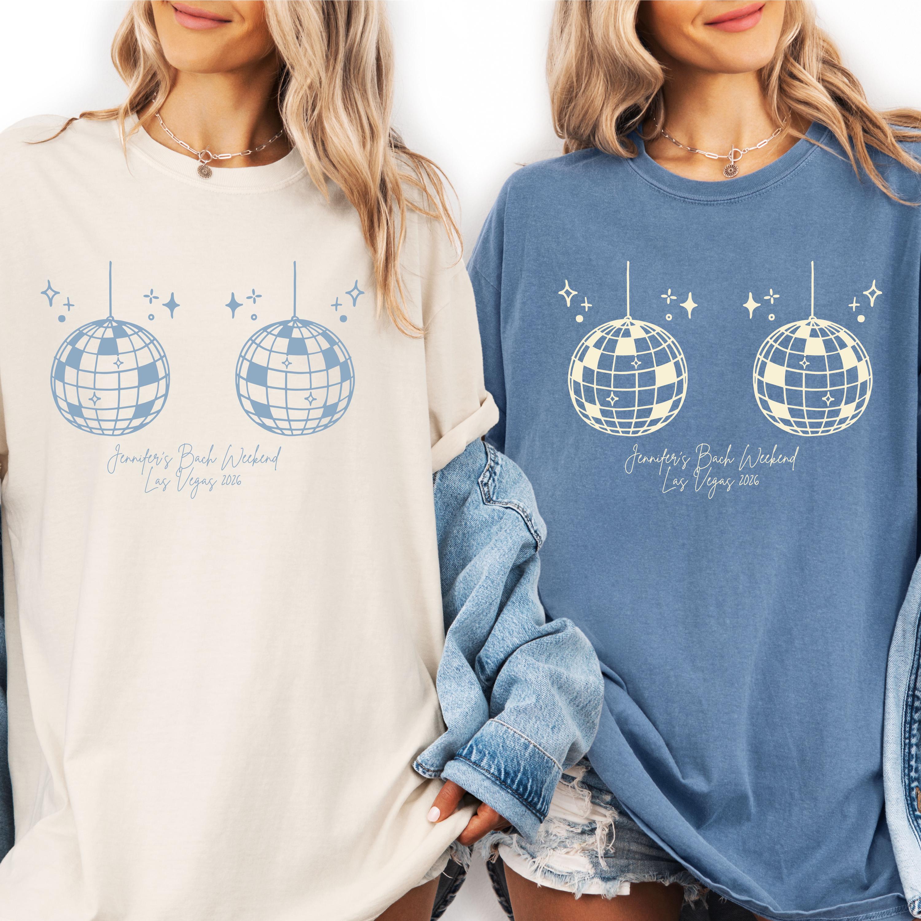 Custom disco bachelorette shirts perfect for your bride squad and girls weekend getaway ✨ These personalized disco bach party tees are designed for fun, retro 70s vibes and can be customized with names, dates, or locations to match your celebration 💃 Featuring a bold, minimal disco-inspired design, they’re ideal for matching outfits, group photos, and unforgettable nights out. Soft and comfortable for all-day wear, these shirts are perfect for bachelorette parties, girls trips, or themed disco events 👕 A fun and stylish keepsake for the bride and her crew 🎁