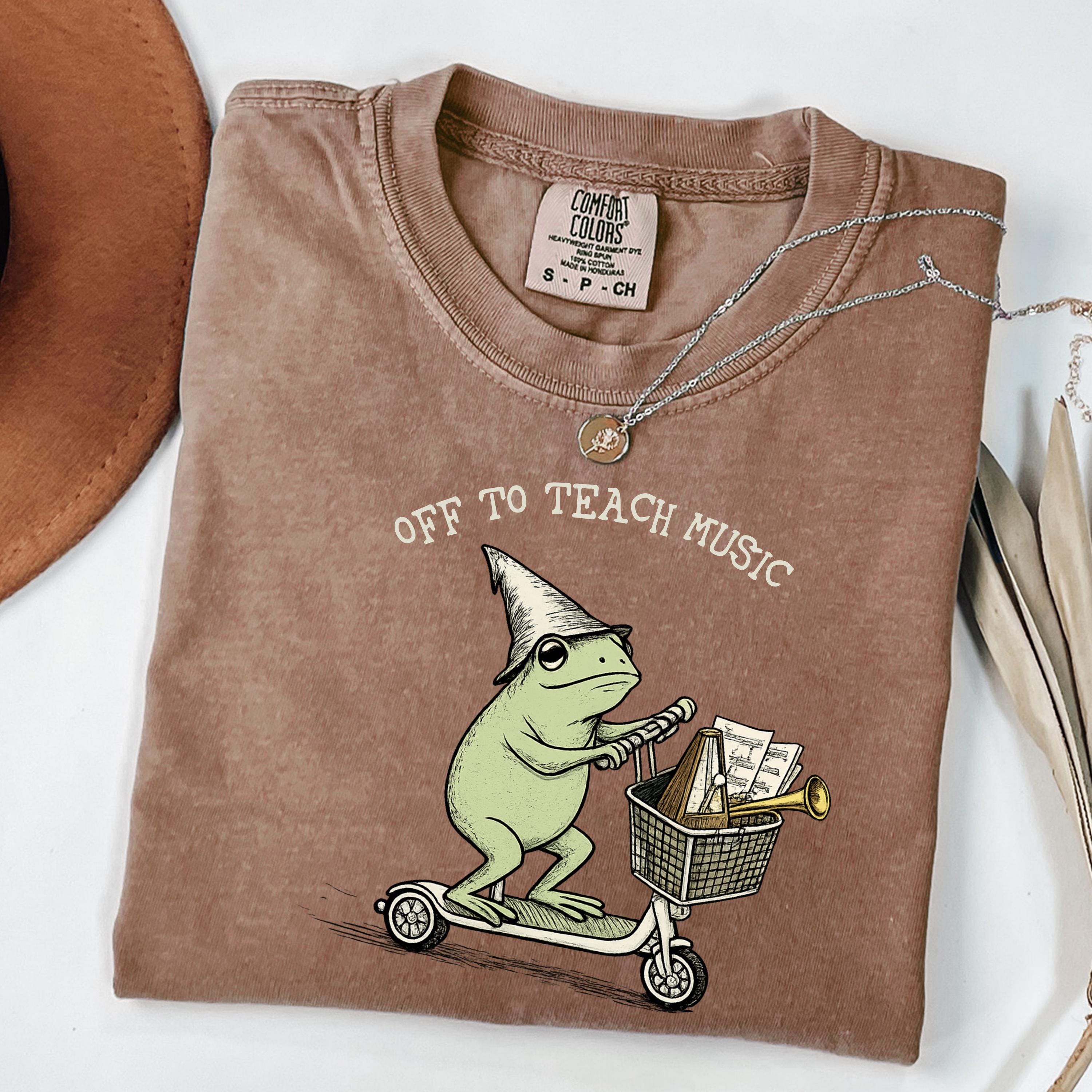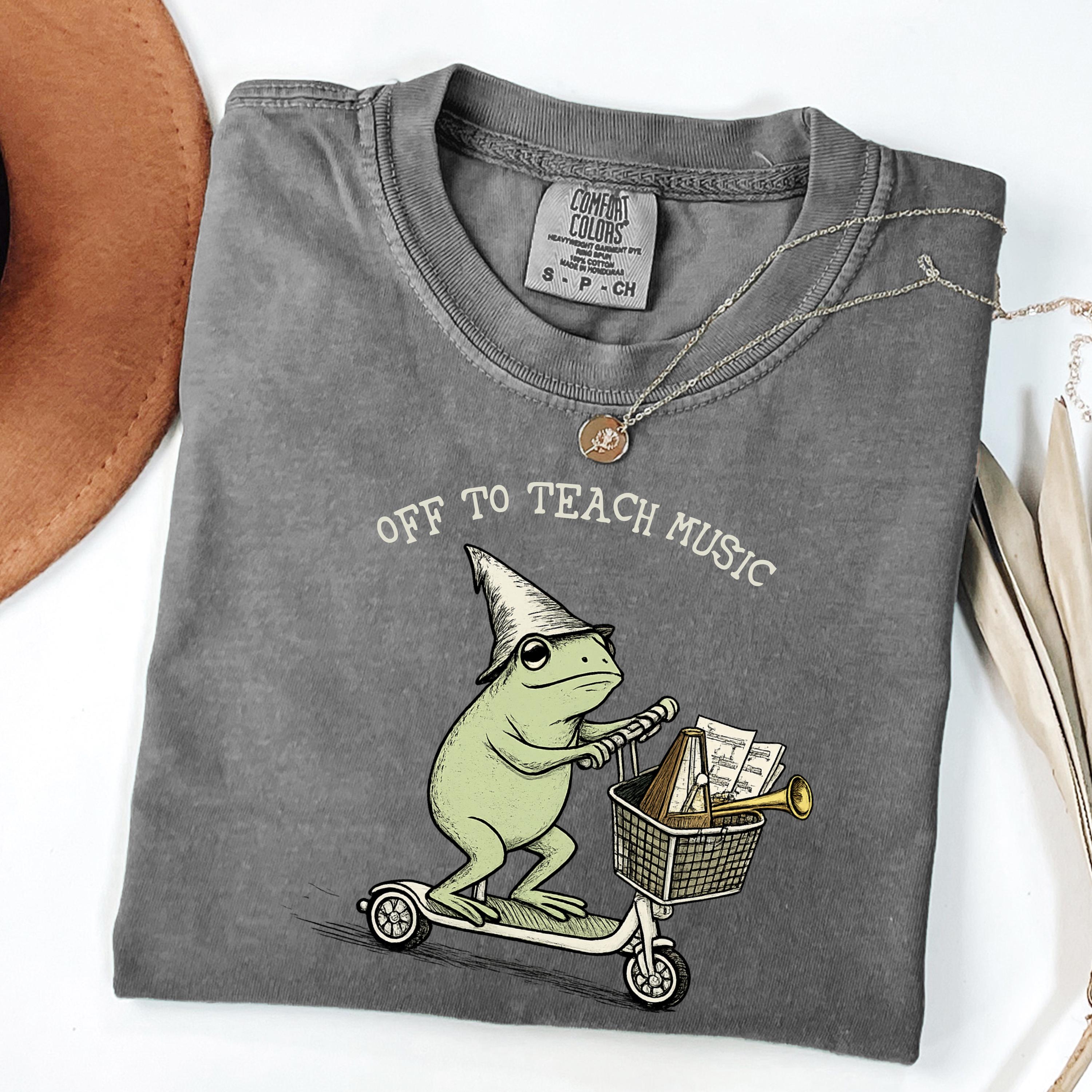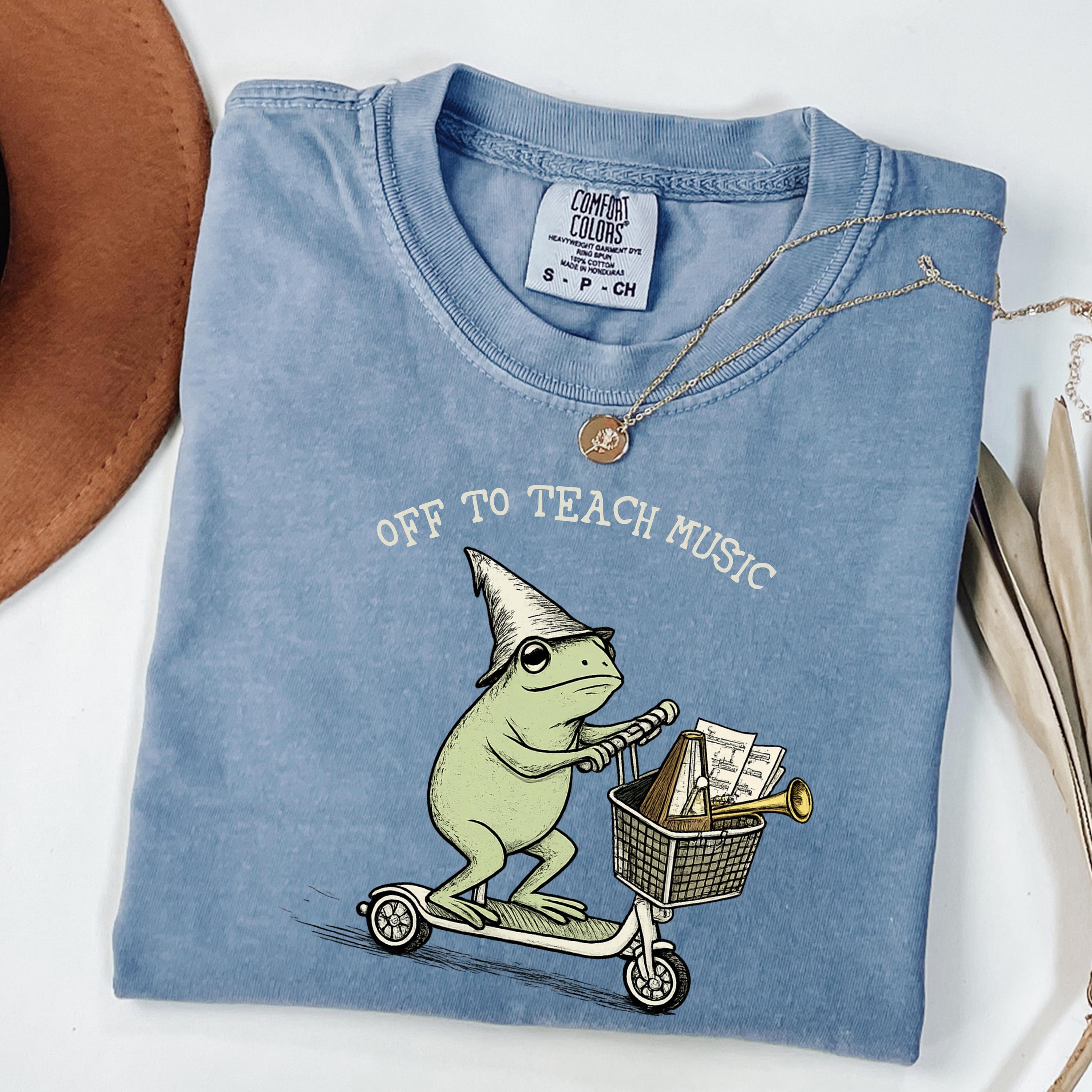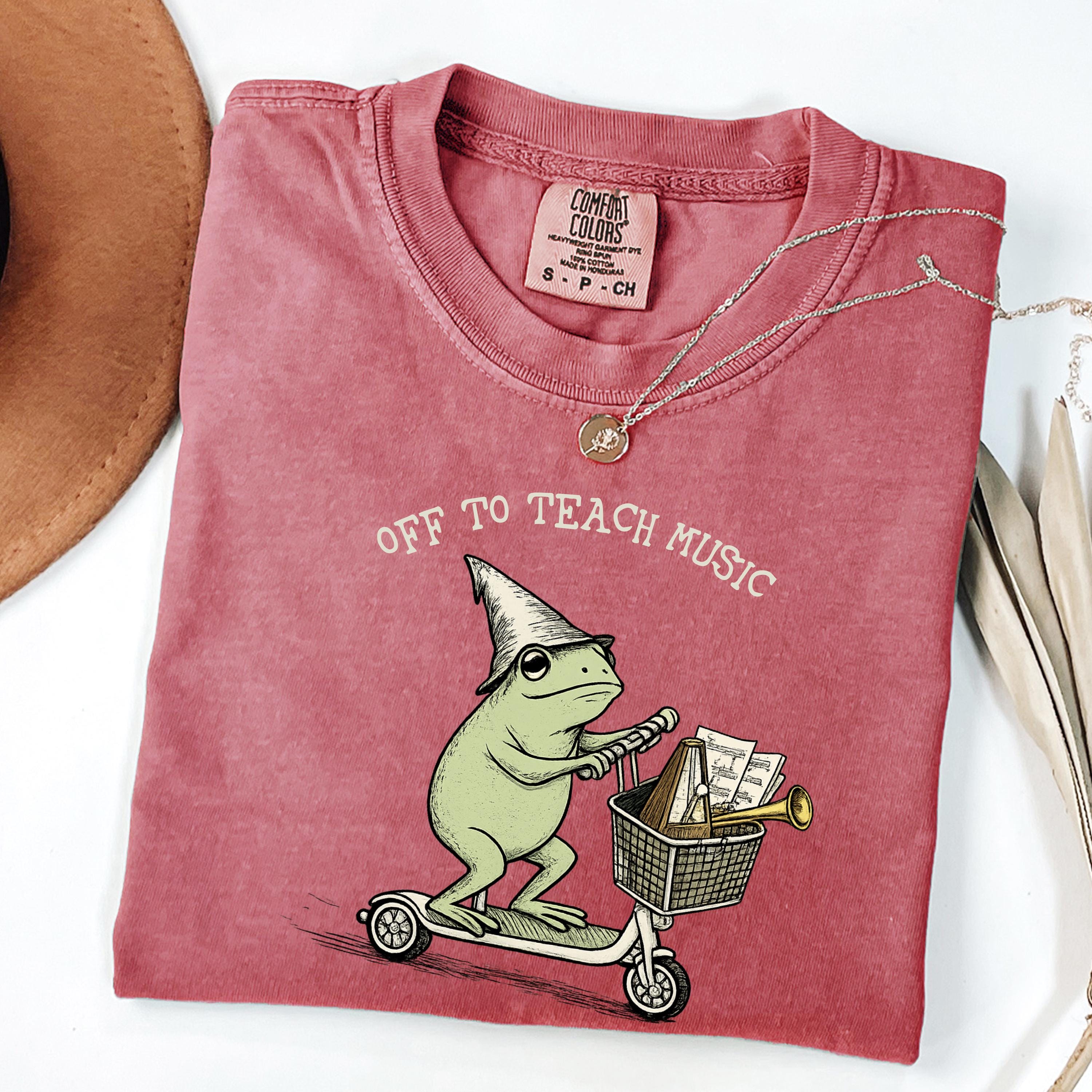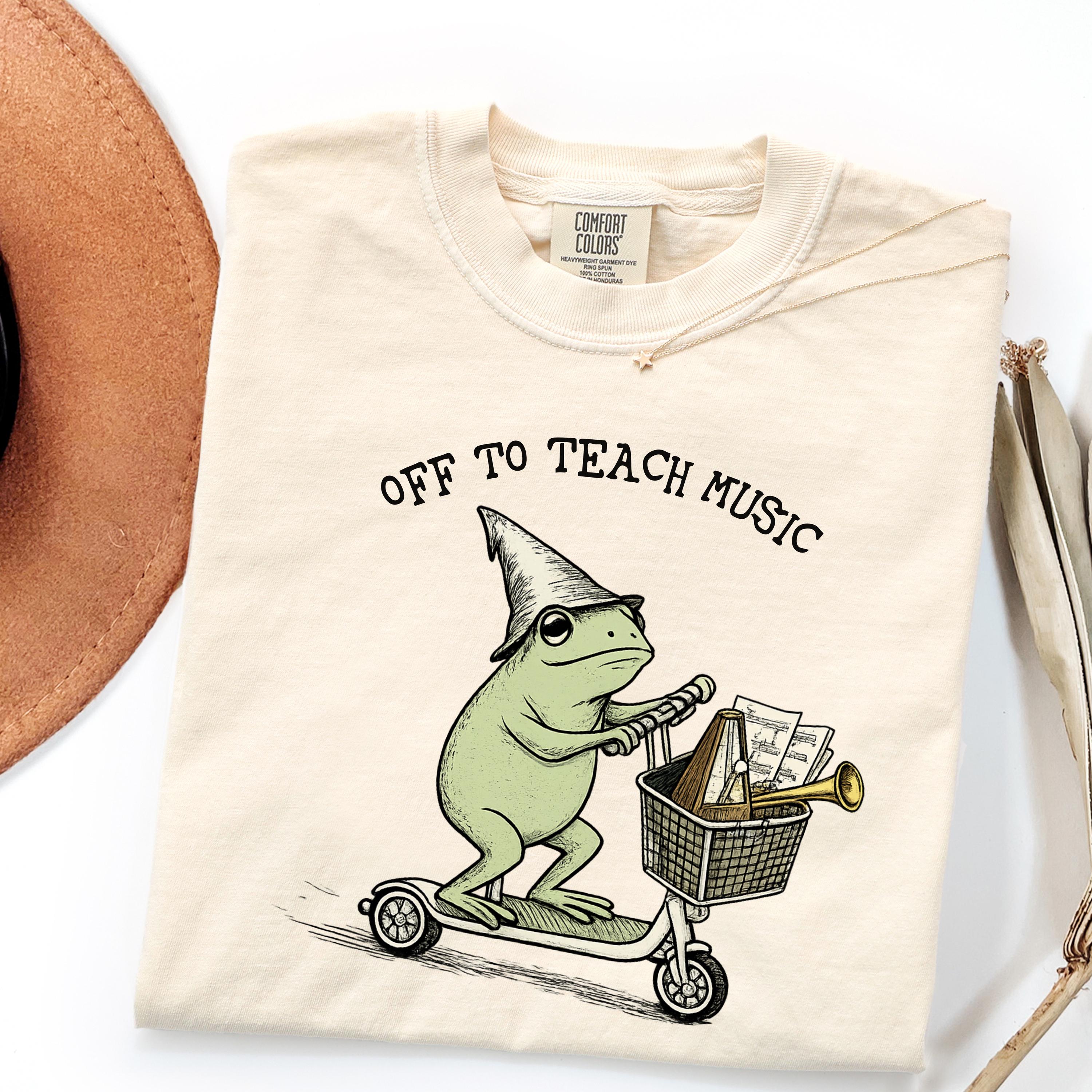 Off to Teach Music Shirt funny music teacher shirt, choir band teacher tee, frog scooter graphic, music educator gift, teacher appreciation