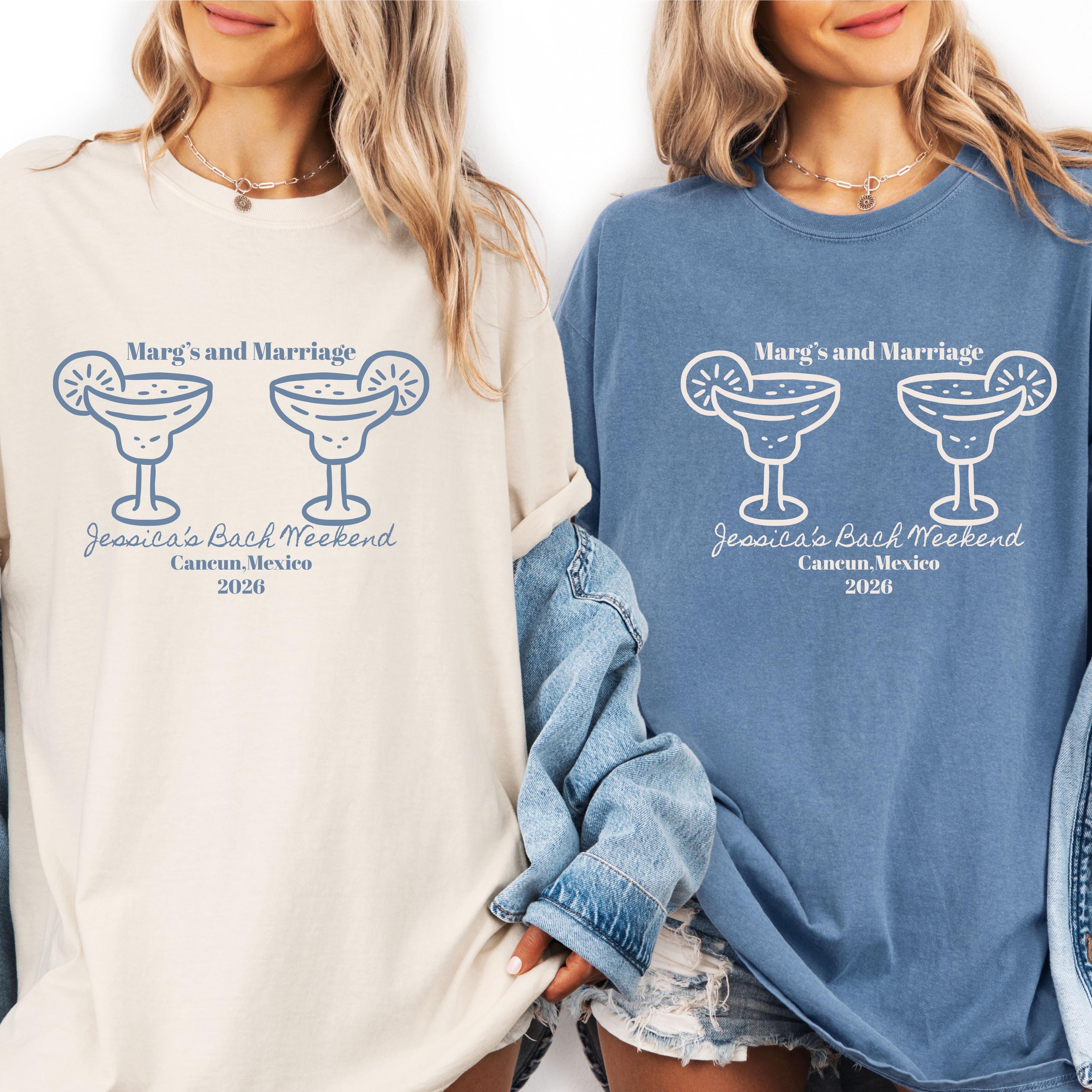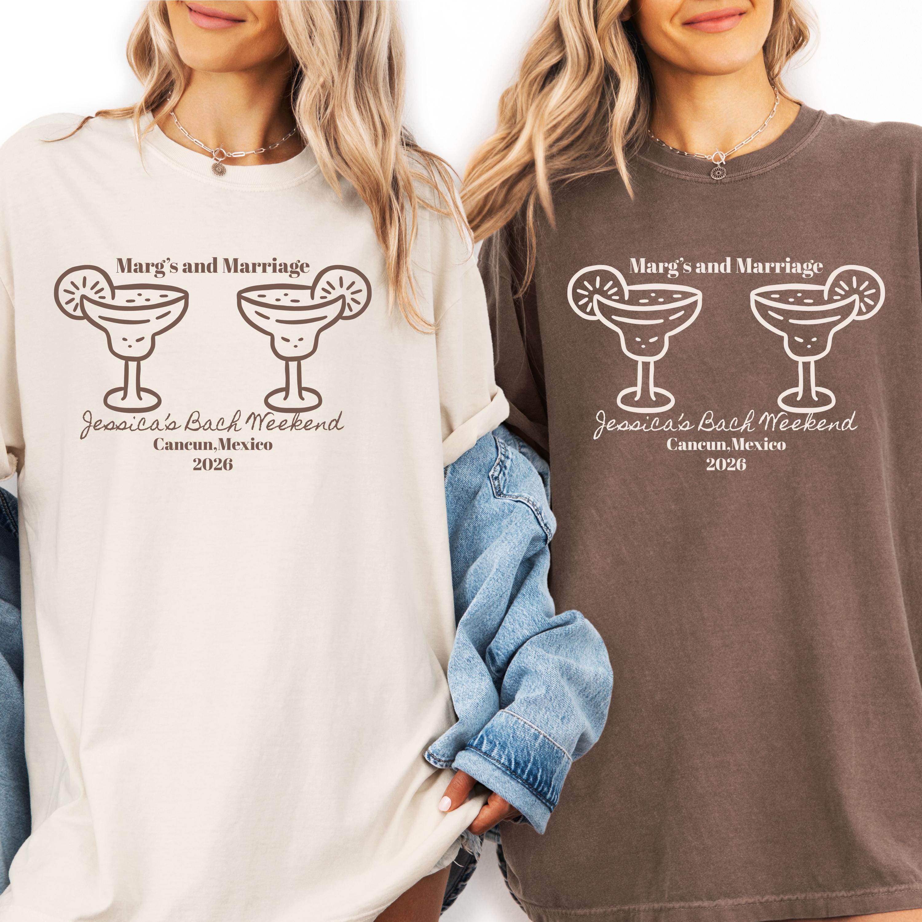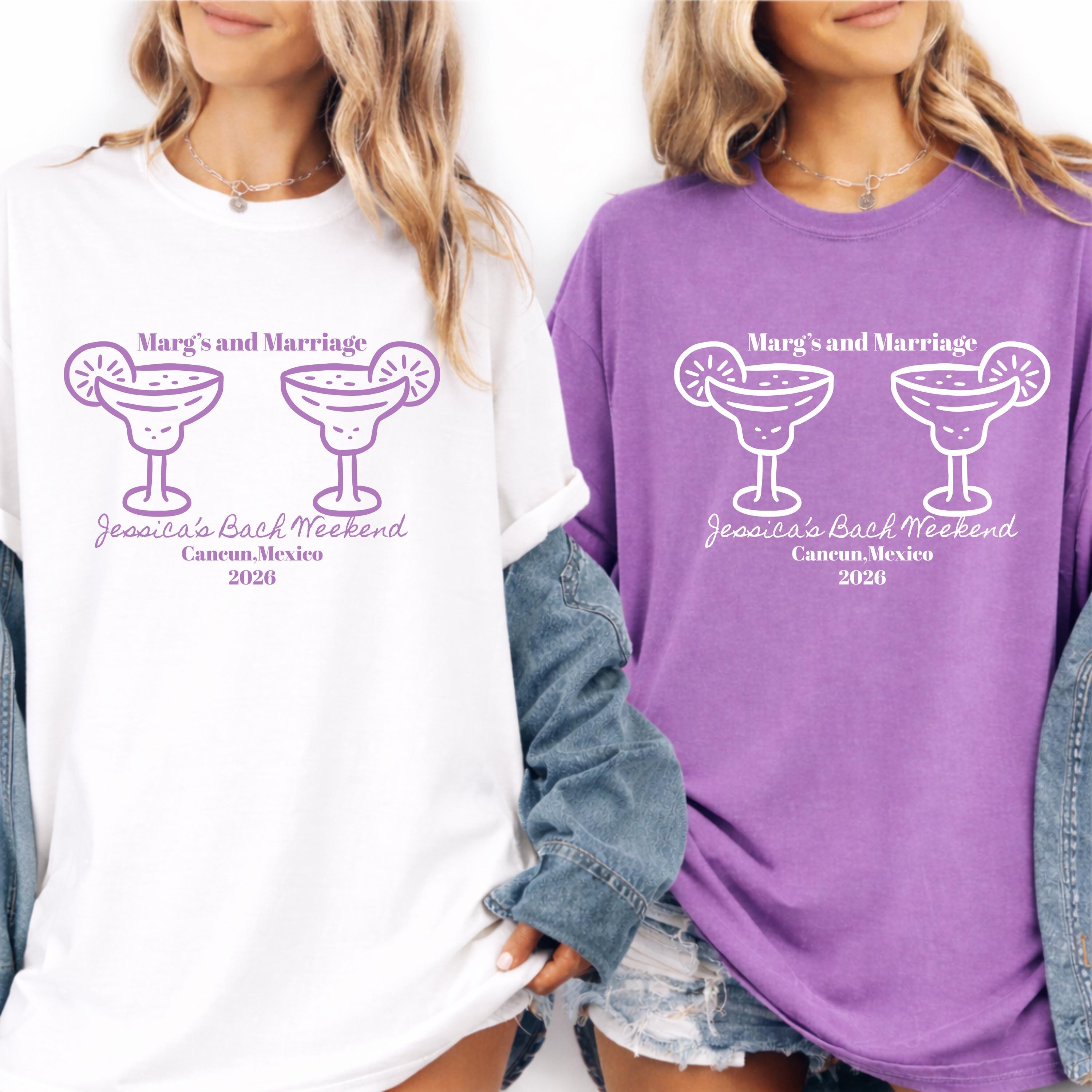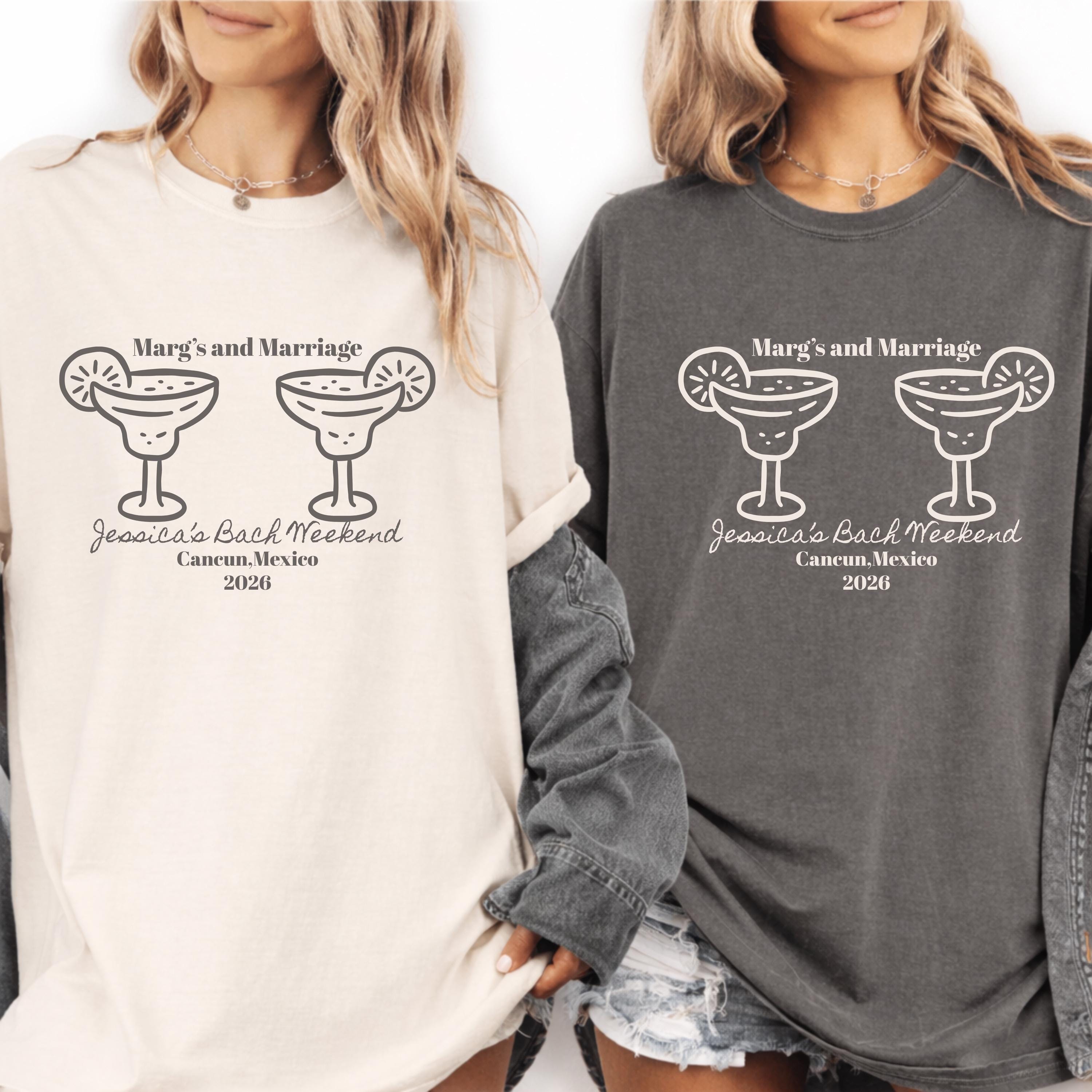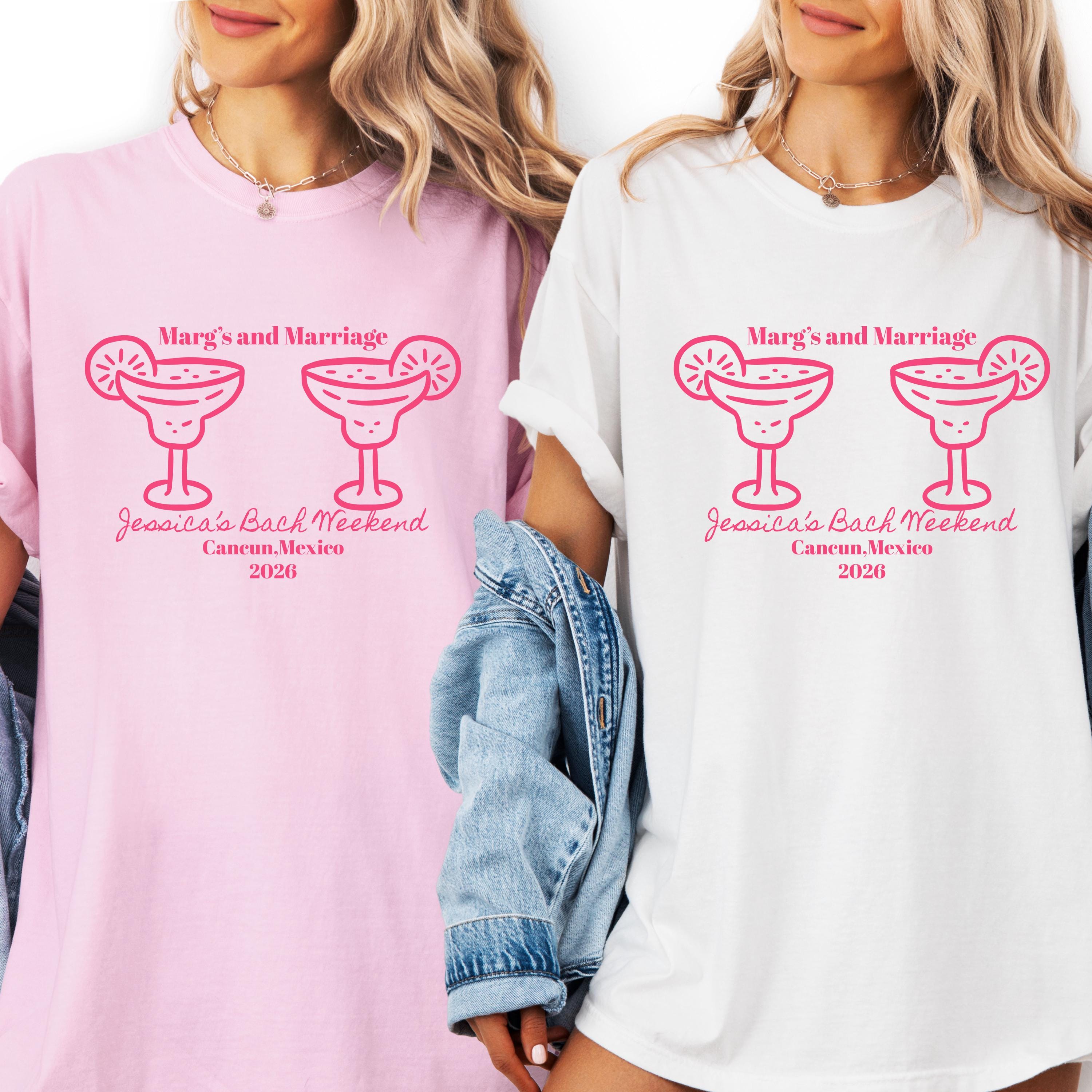 Marg’s and Marriage Bachelorette Shirts personalized margarita bach party tees, custom bride squad shirts Mexico girls trip outfits