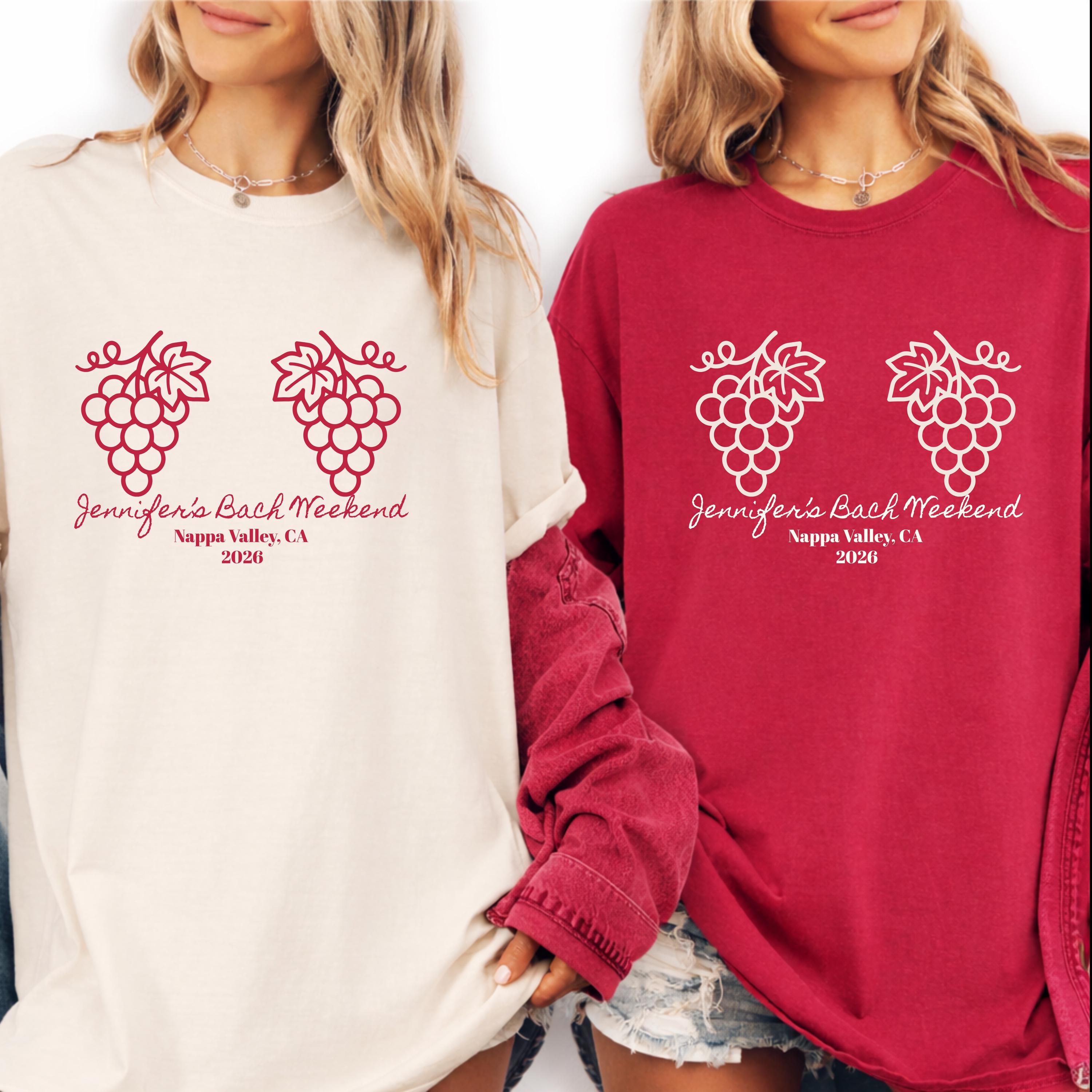 These humorous wine-inspired bachelorette shirts are perfect for a chic Napa Valley girls weekend, featuring a minimal grapevine design with fully customizable name, location, and date. Designed for brides and their crew, they’re ideal for vineyard hopping, wine tastings, and relaxed brunch moments. 🍇✨